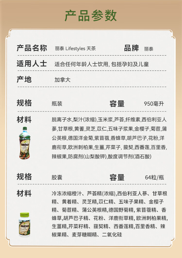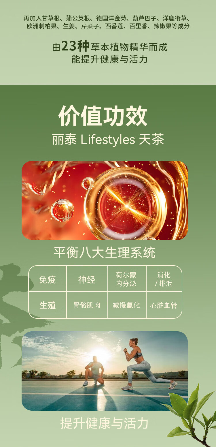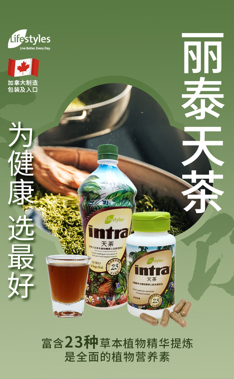 Lifestyles Live Better. Every Day丽泰 天茶 草本饮品 23种植物精华 抗氧化 支持免疫力 限拍3件 天茶950ml【限拍3件】