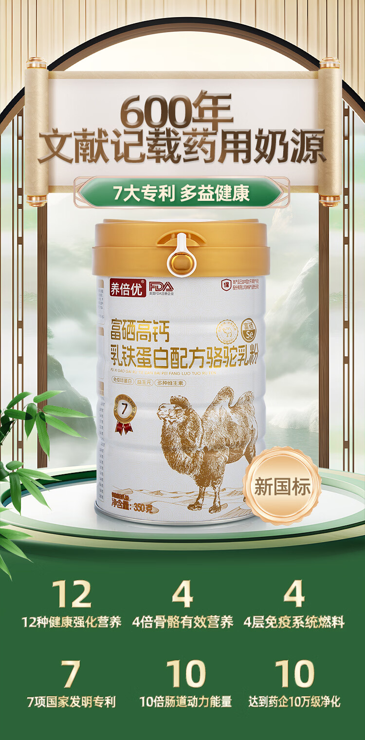 养倍优富硒高钙乳铁蛋白驼奶粉益生菌正宗骆驼奶礼盒装350克*2罐