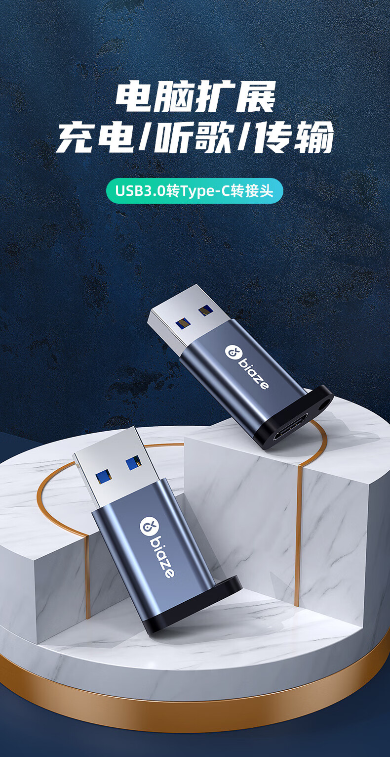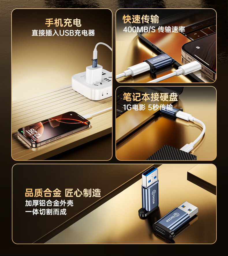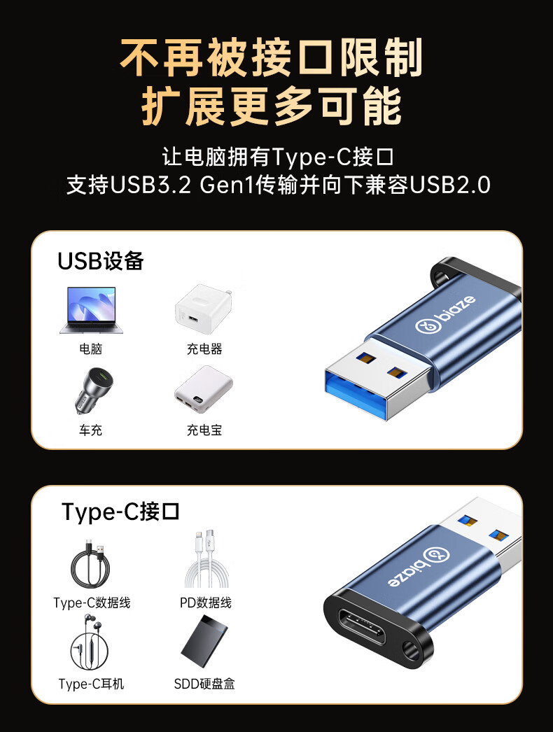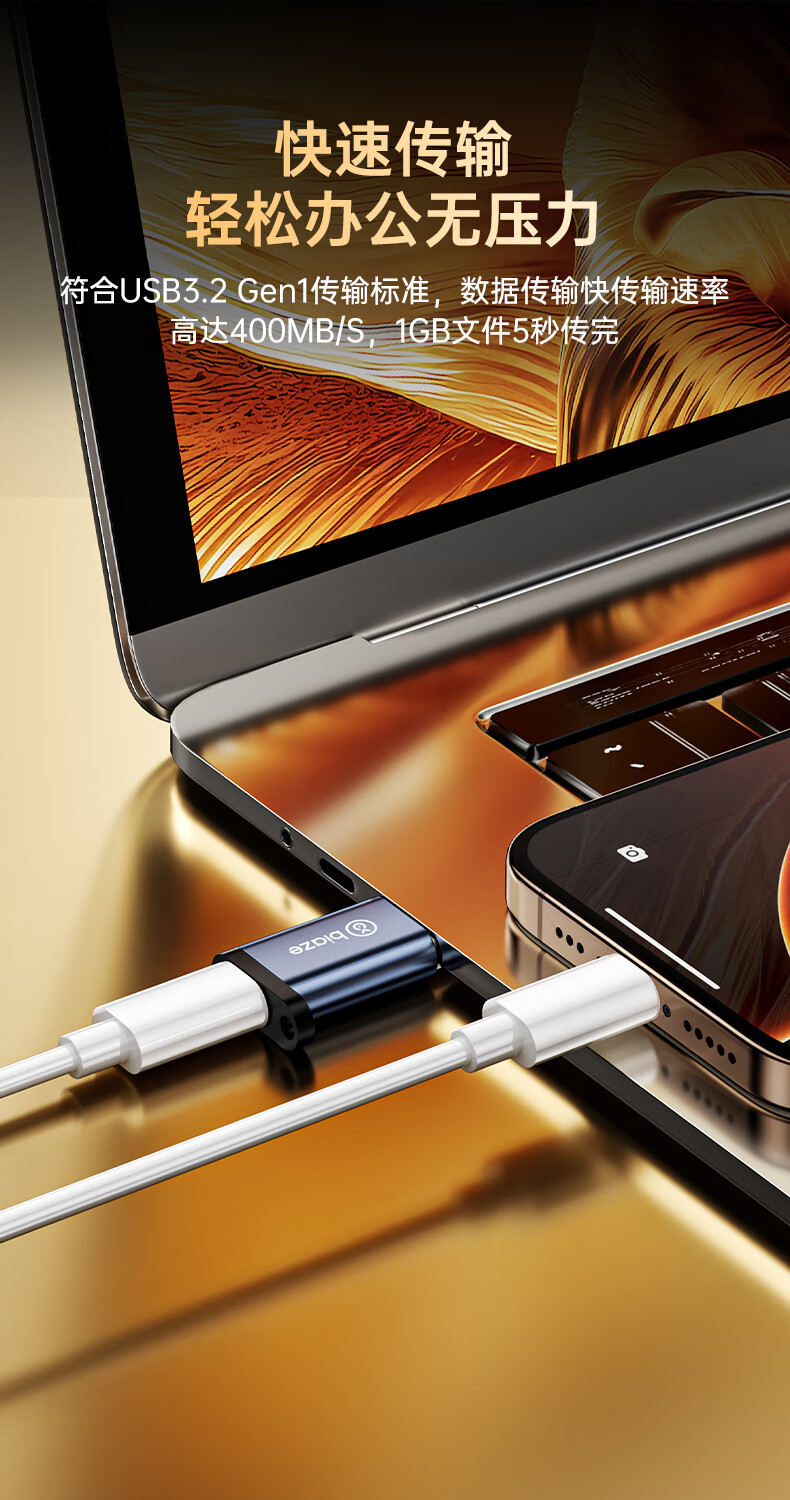毕亚兹 USB3.2转换Type-C接头苹果16/17ProMax安卓手机OTG数据转换头线接U盘ipad耳机键鼠车载充电连接器
