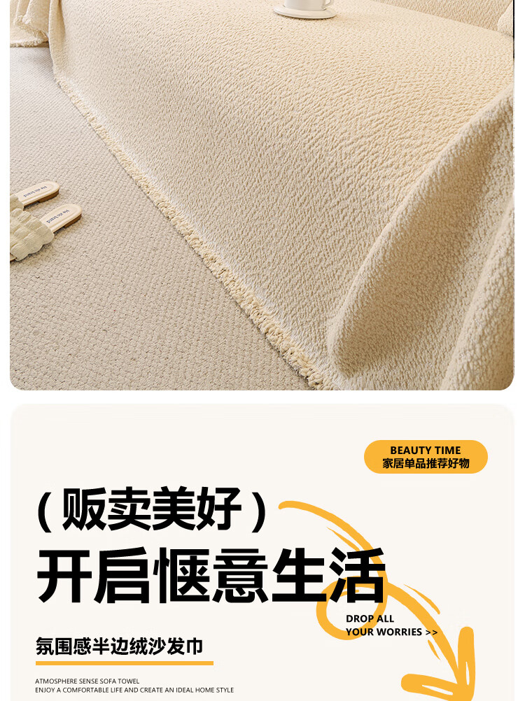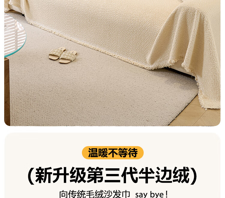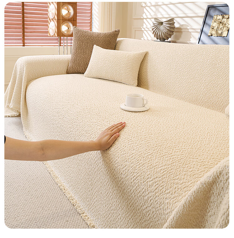 金拾美月冬季半边绒沙发盖布巾2026新款奶油风沙发垫一整张全盖防滑套罩 盖巾雅缦-米白 180cm*130cm (适用于单人位/脚踏)