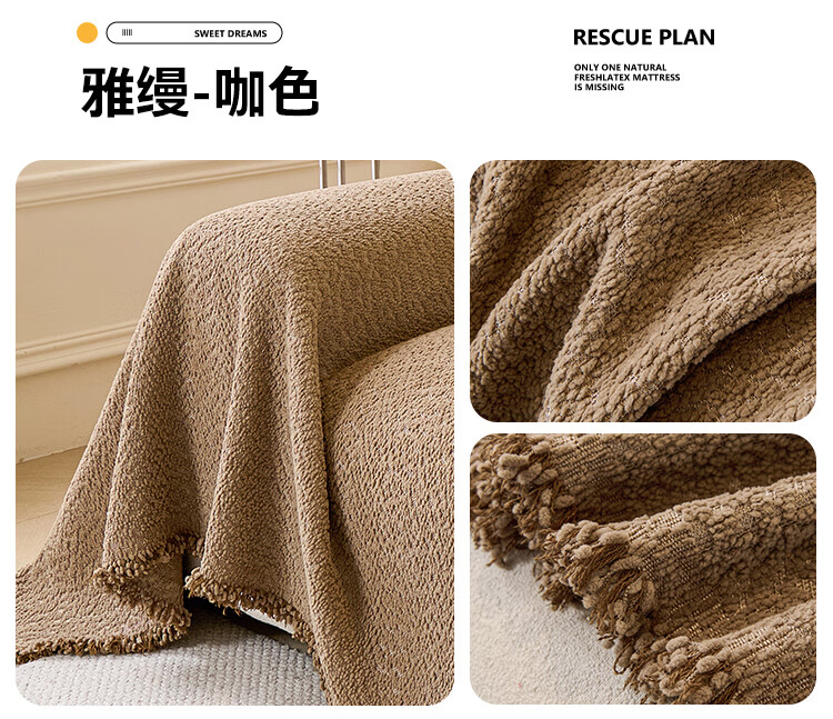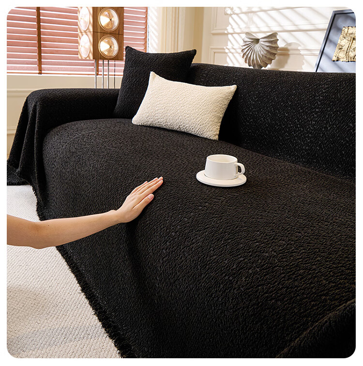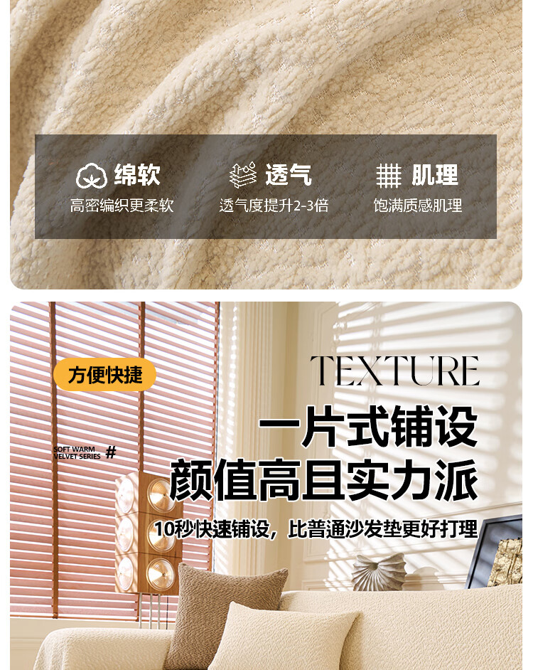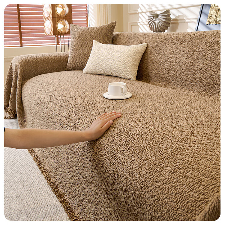 无印良品2025新款秋冬款薏米绒沙发盖布巾防滑沙发套罩加厚冬季毛绒沙发毯 山海-米咖色【加厚薏米绒软糯温暖不静电】 180*480cm【适合五人位】