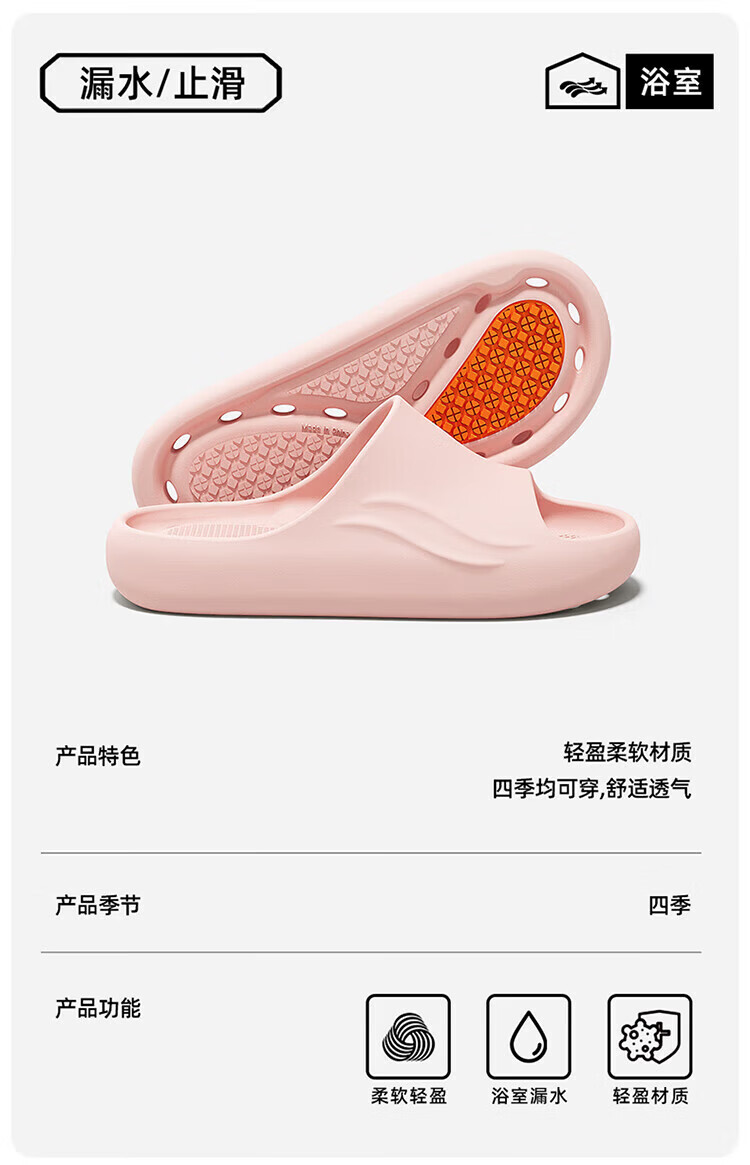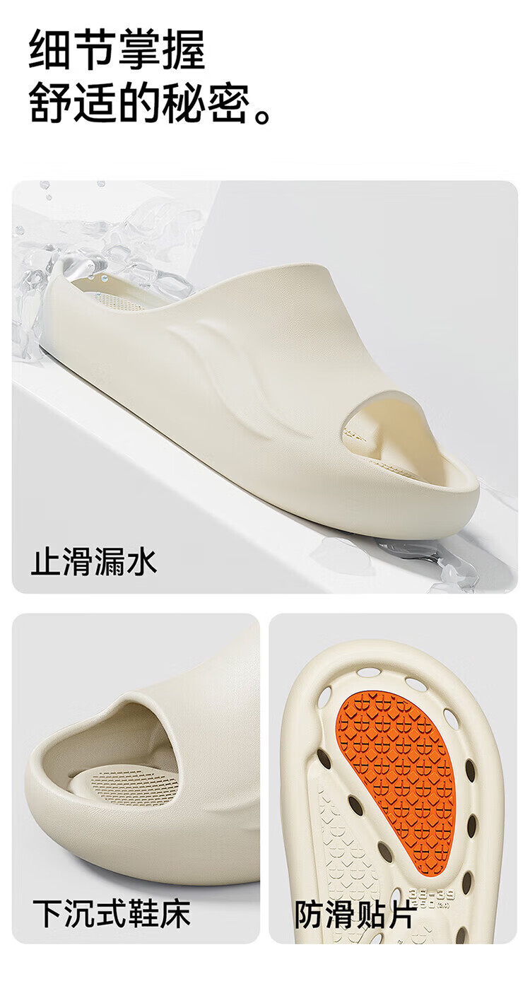 FZT凉拖鞋男士四季家居室内家用洗澡防滑浴室速干不臭脚漏水拖鞋女款 卡其 36-37 标准码