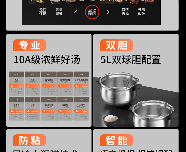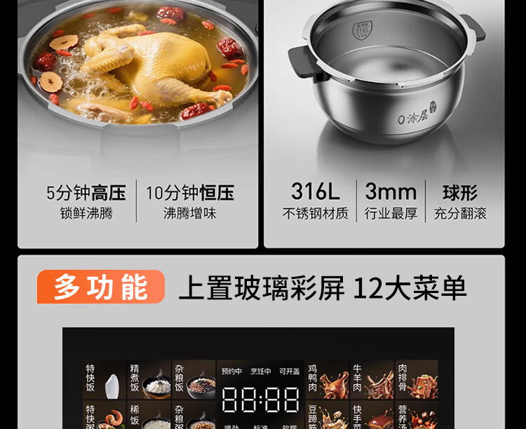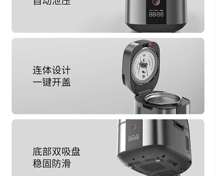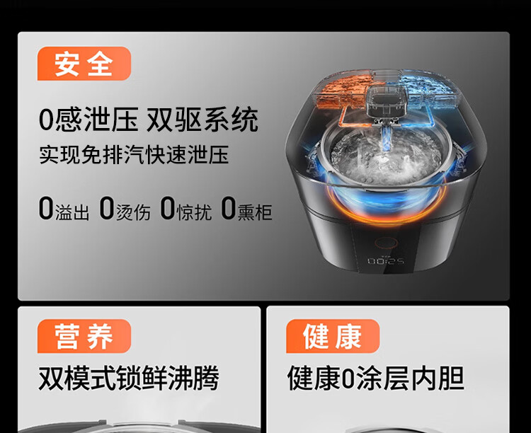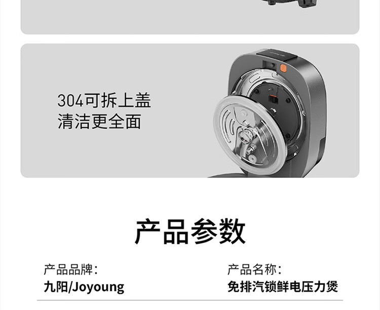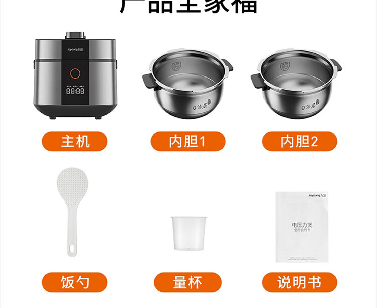 九阳电压力锅免排气 0涂层316L内胆双胆 智能预约家用多功能百千帕压力煲高压锅 远航灰 5L 【免排汽/10A沸腾好汤】