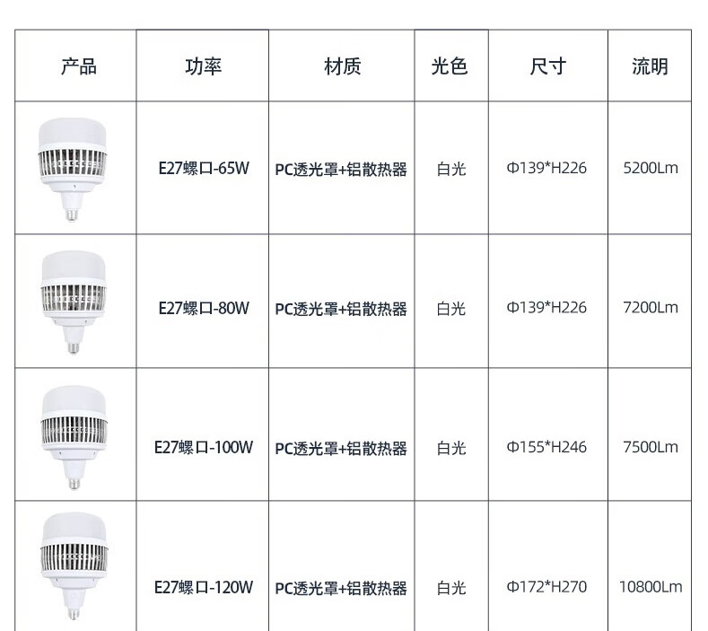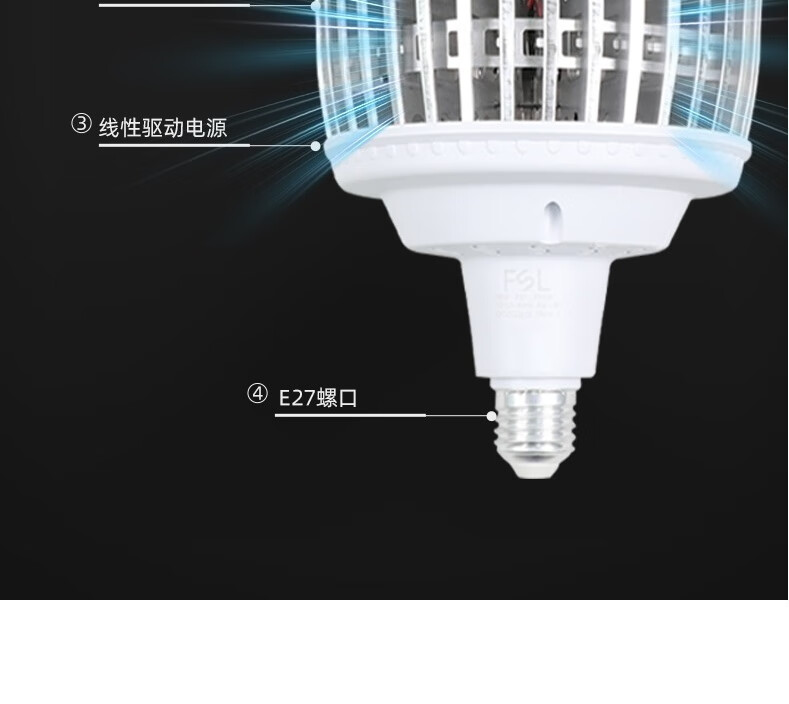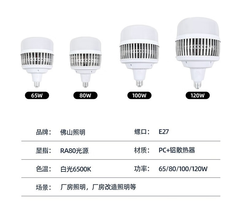 FSL佛山照明led灯泡e27螺口球泡铝鳍片柱形泡高散热高亮度高棚灯星耀二代 120W白光-E27螺口