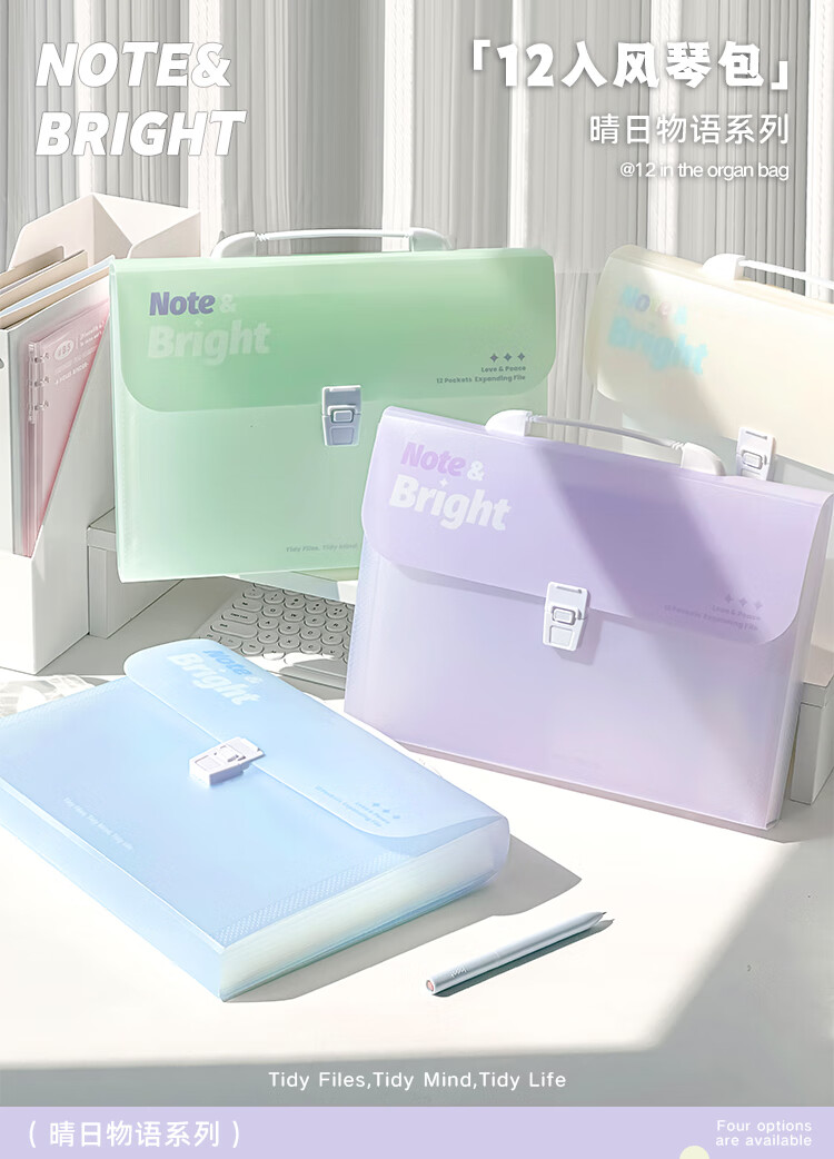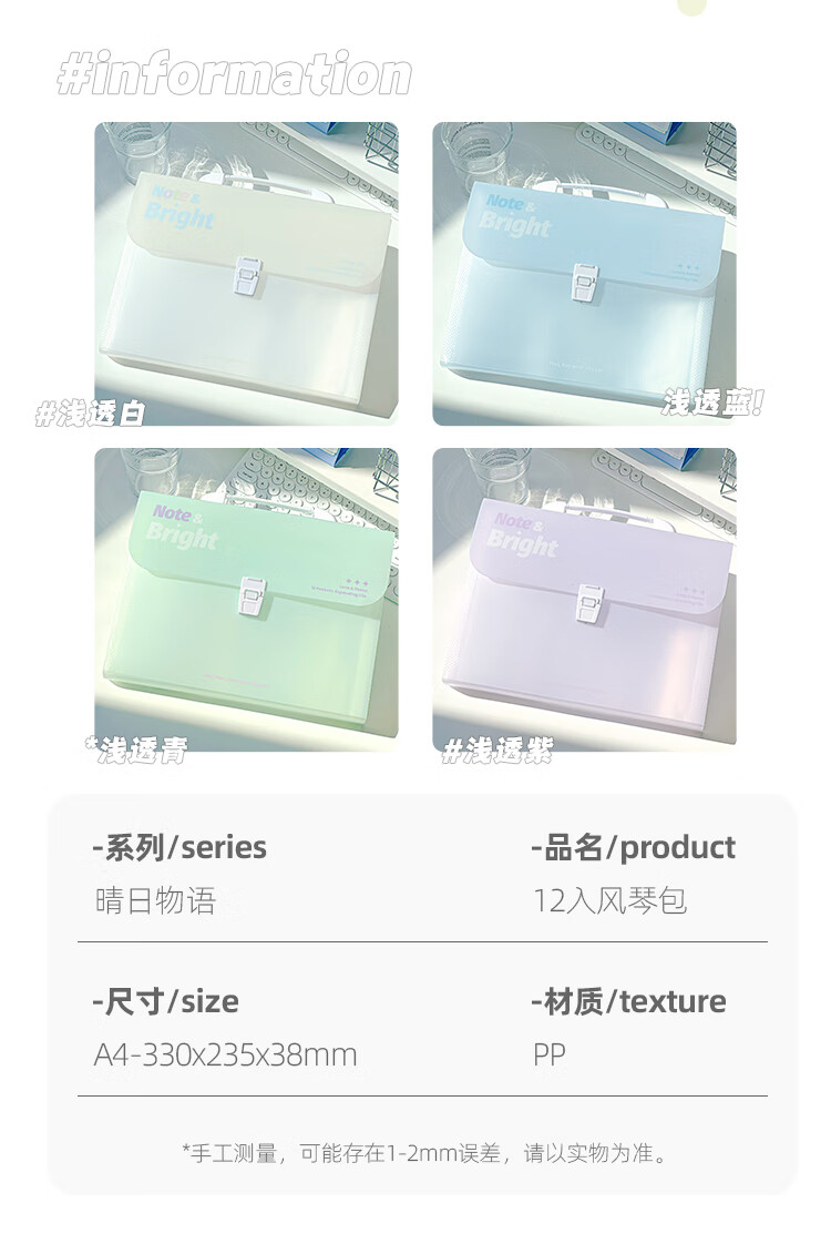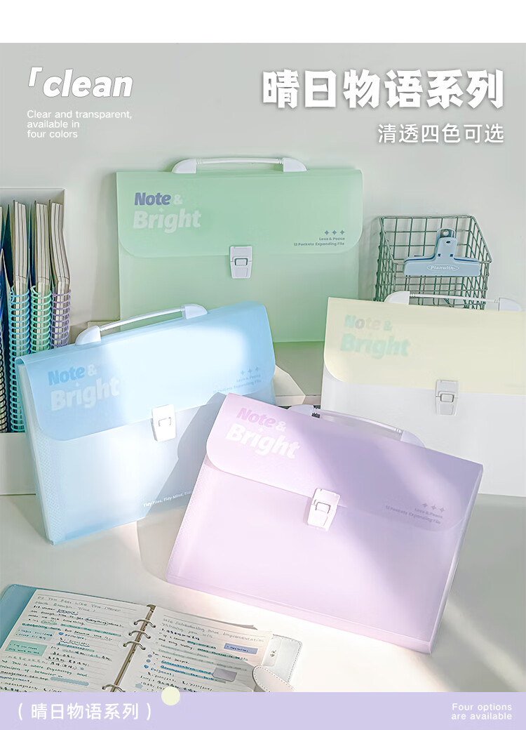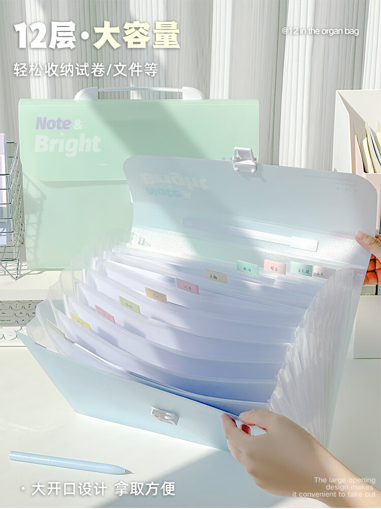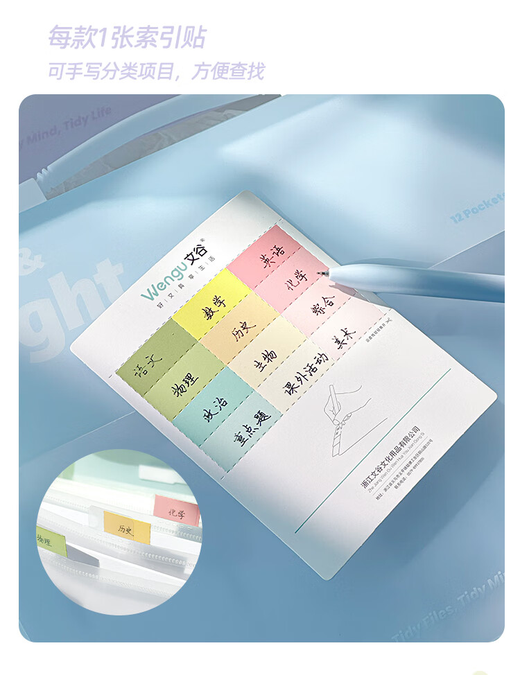 文谷(Wengu)文件资料夹风琴包8层A4学生文具办公会议试卷收纳袋小初中开学便携学科作业分类E666-A浅透白