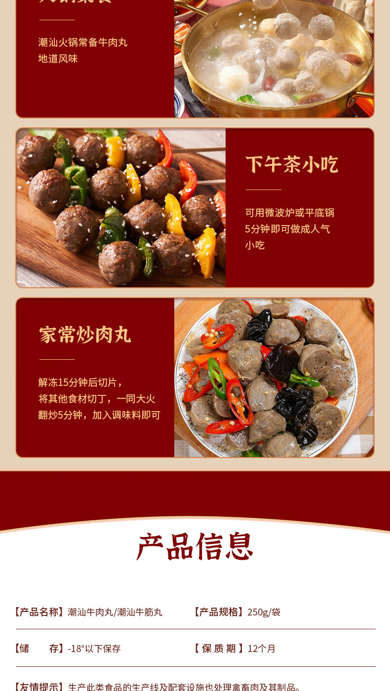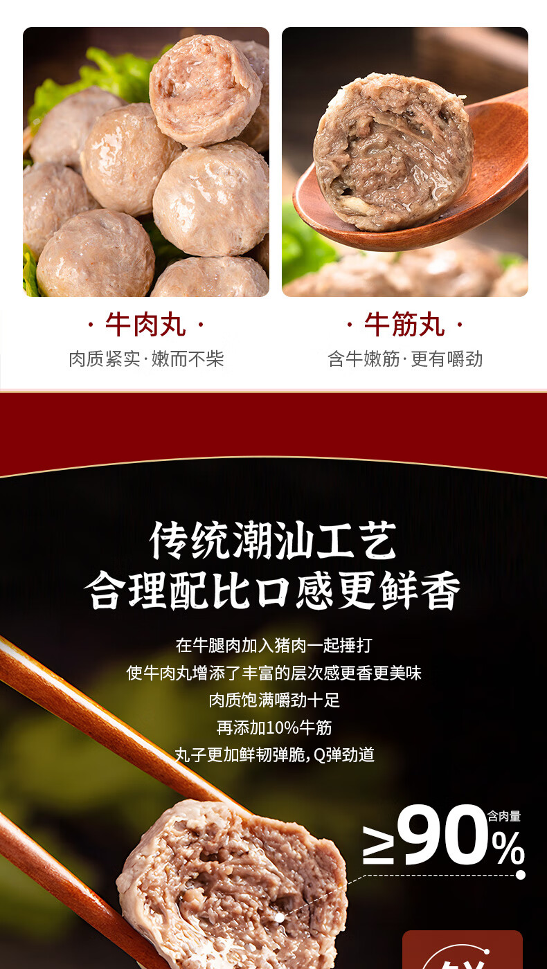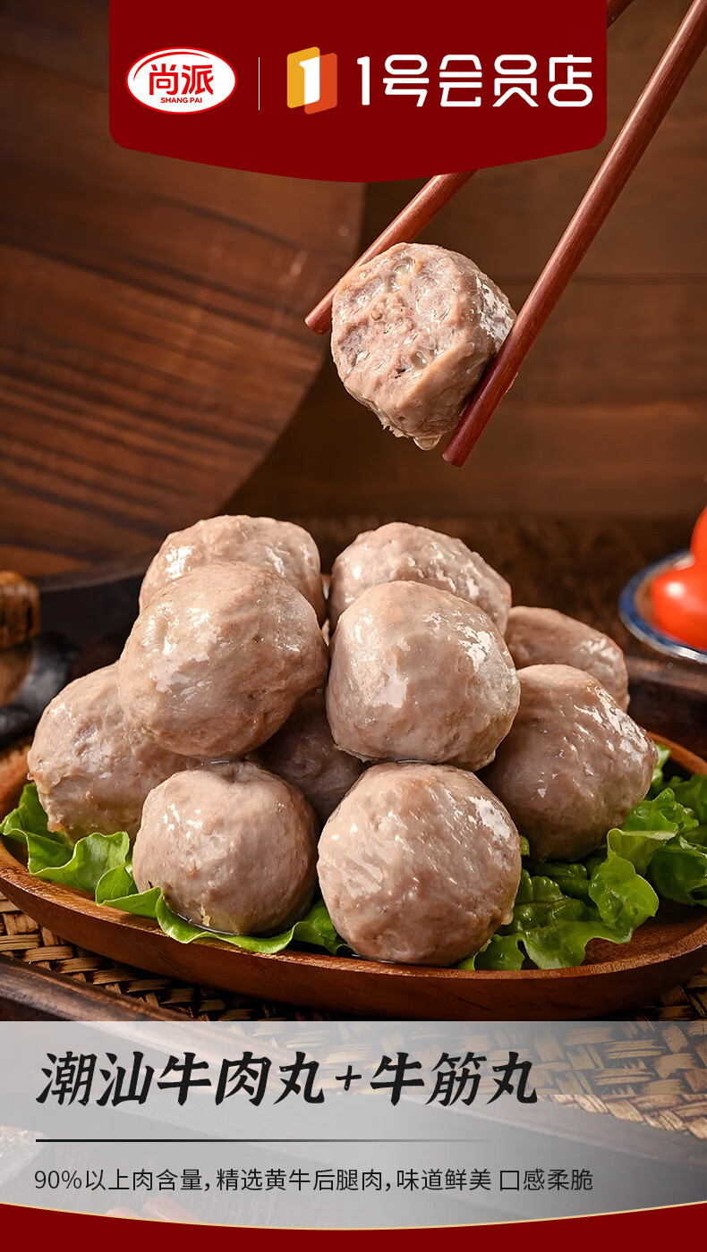 尚派潮汕手打牛肉丸250g牛筋丸250g 肉含量90% 汕头生产火锅食材夜