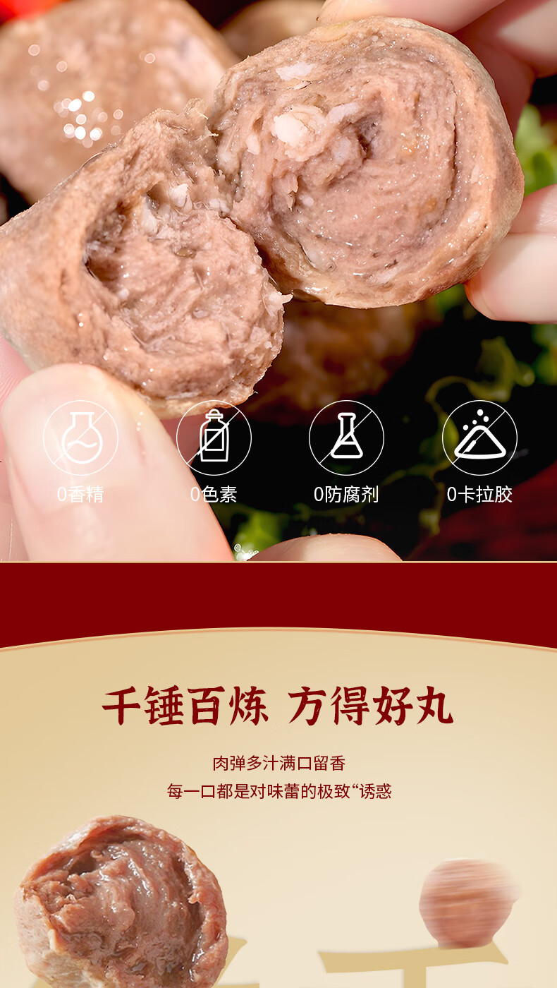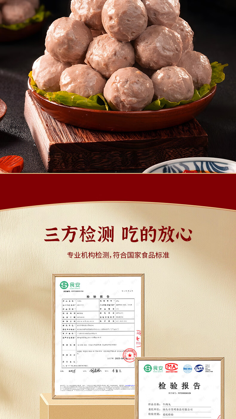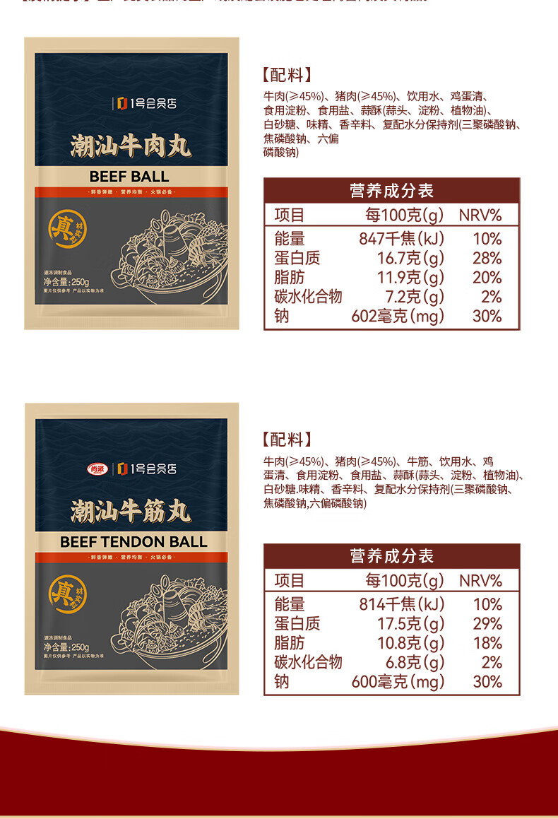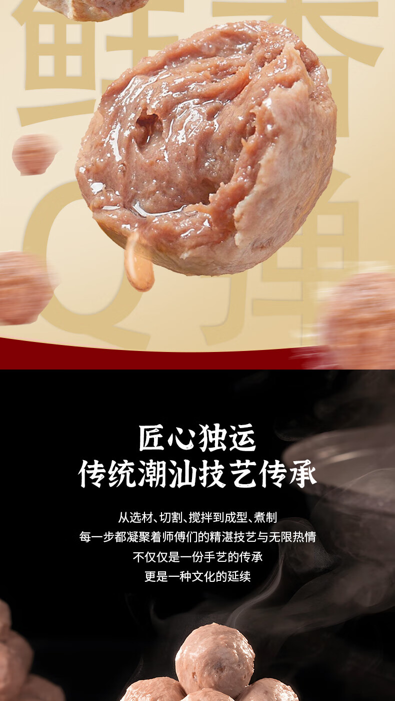 尚派潮汕手打牛肉丸250g牛筋丸250g 肉含量90% 汕头生产火锅食材夜