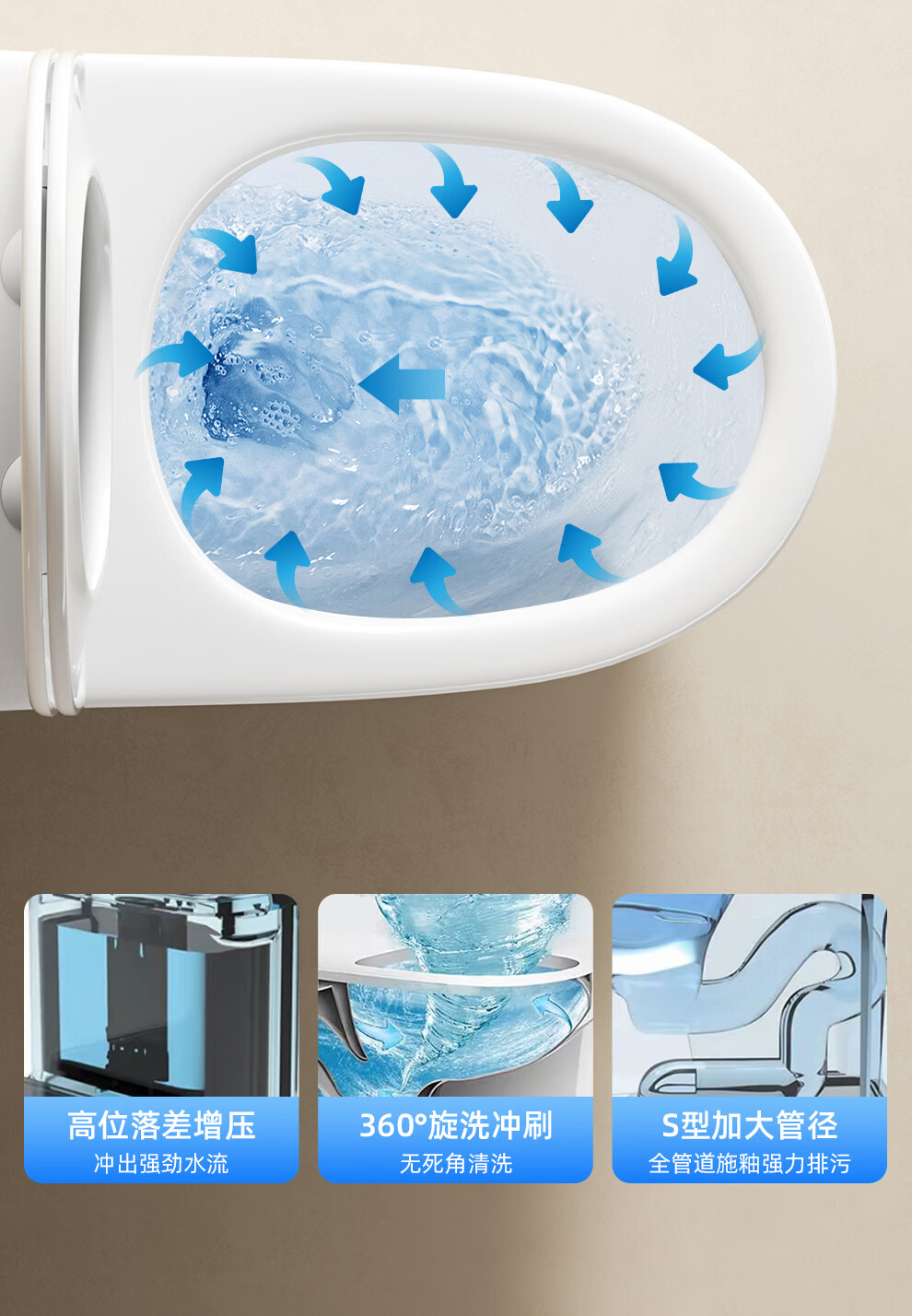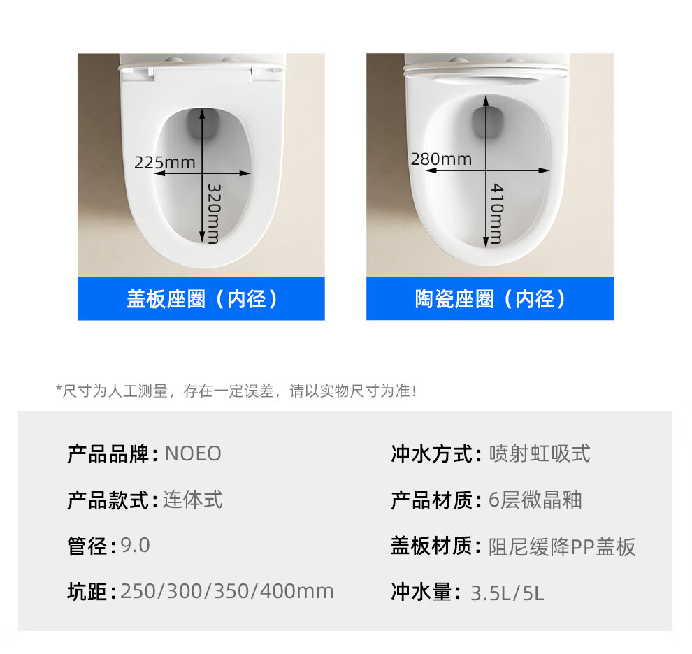 NOEO超漩虹吸式节水普通马桶家用大冲力静音大座圈防臭陶瓷抽水座便器 8965|全管道施釉+易洁釉面+强劲冲力 250/300/350/400mm 下单联系客服备注坑距