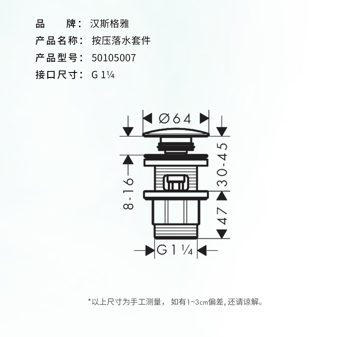 汉斯格雅(Hansgrohe)厨卫配件面盆弹跳下水器50105007