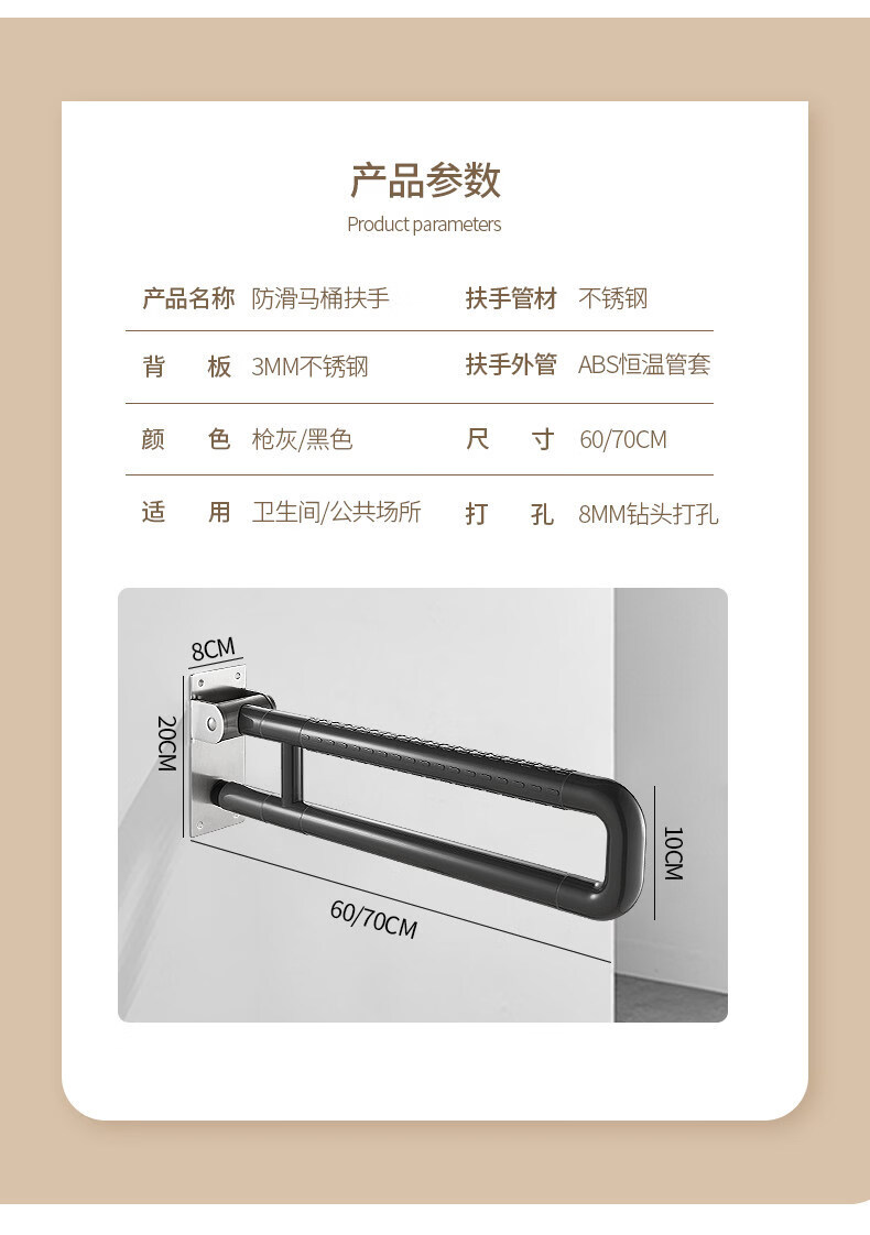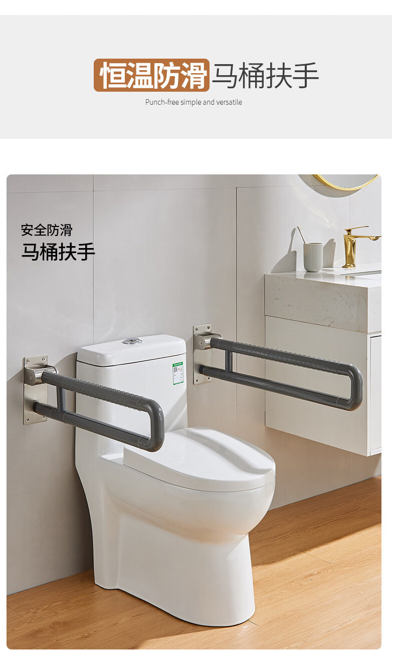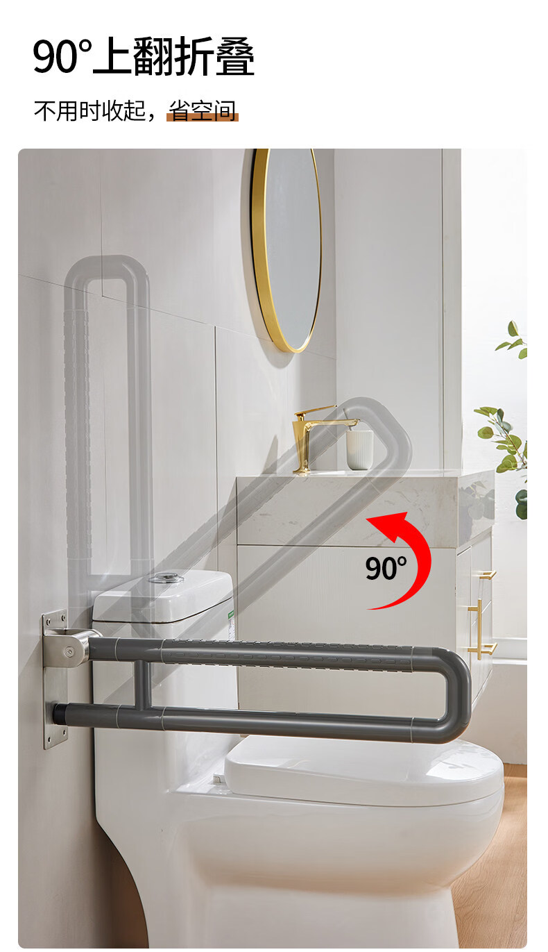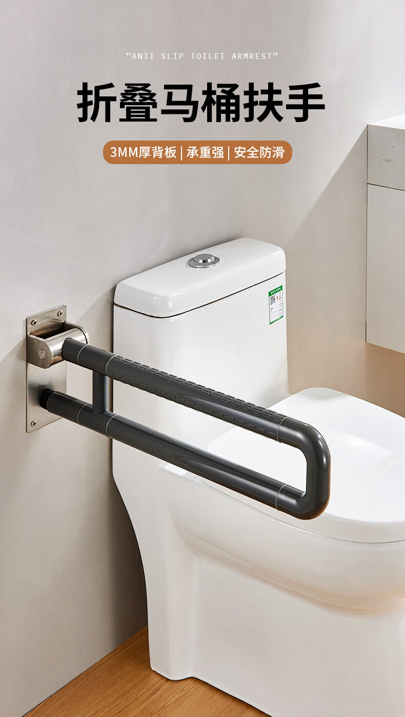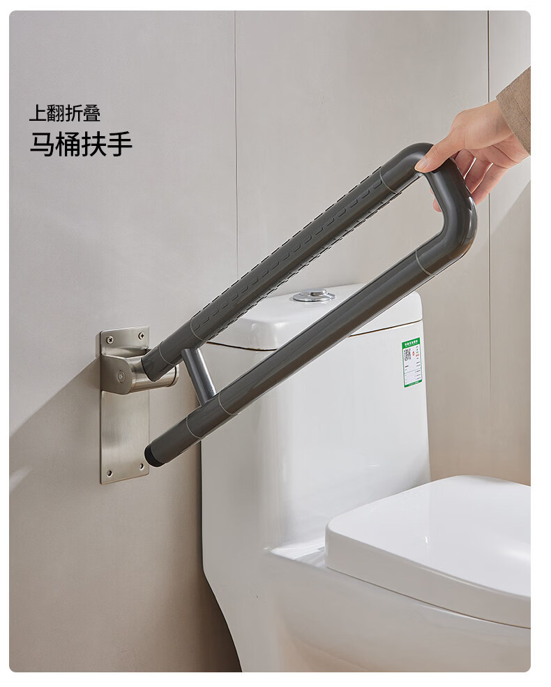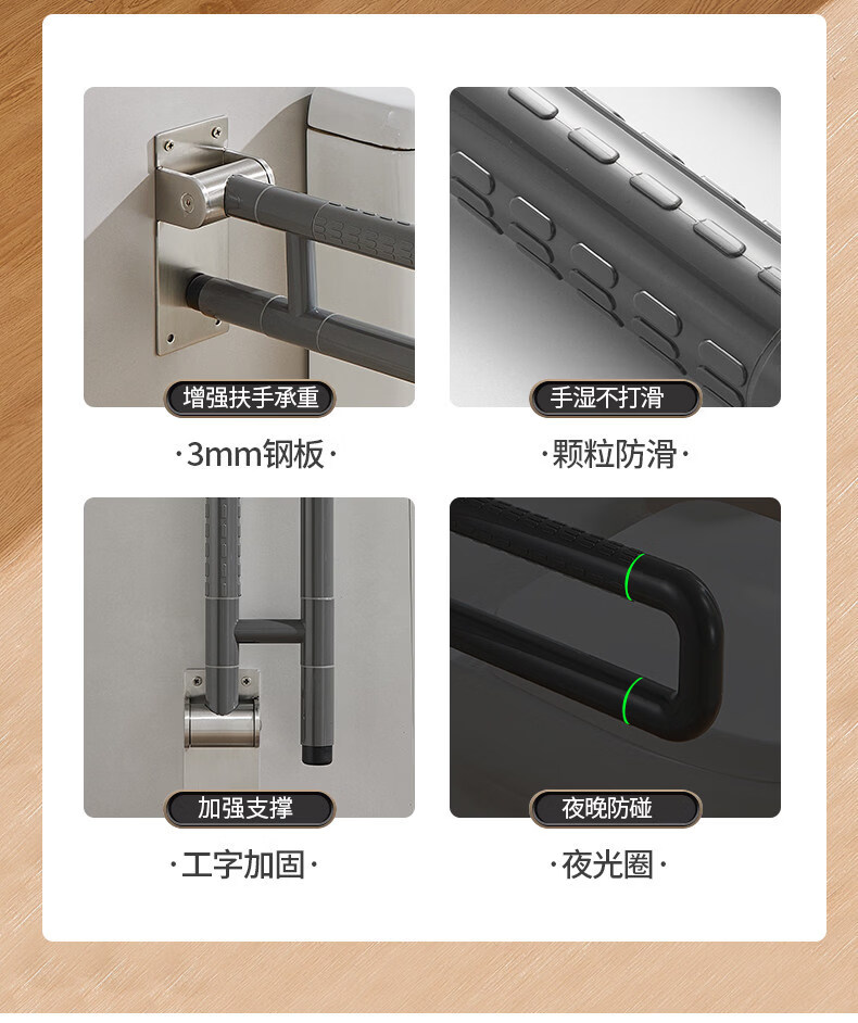 家文化(JIAWENHUA)卫生间扶手木纹老人防滑助力厕所浴室安全可折叠坐便器马桶栏杆 马桶扶手8955长度600M木纹白(不带腿)