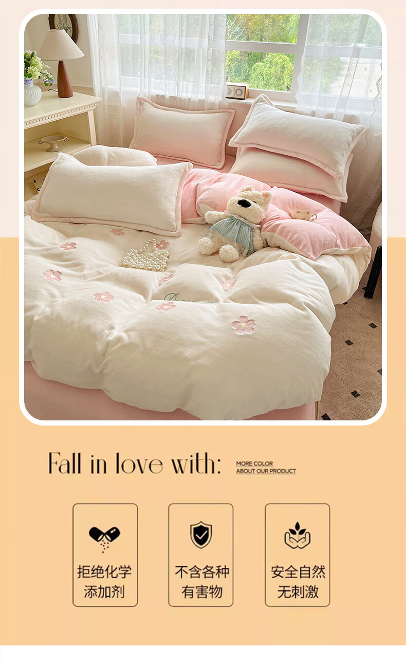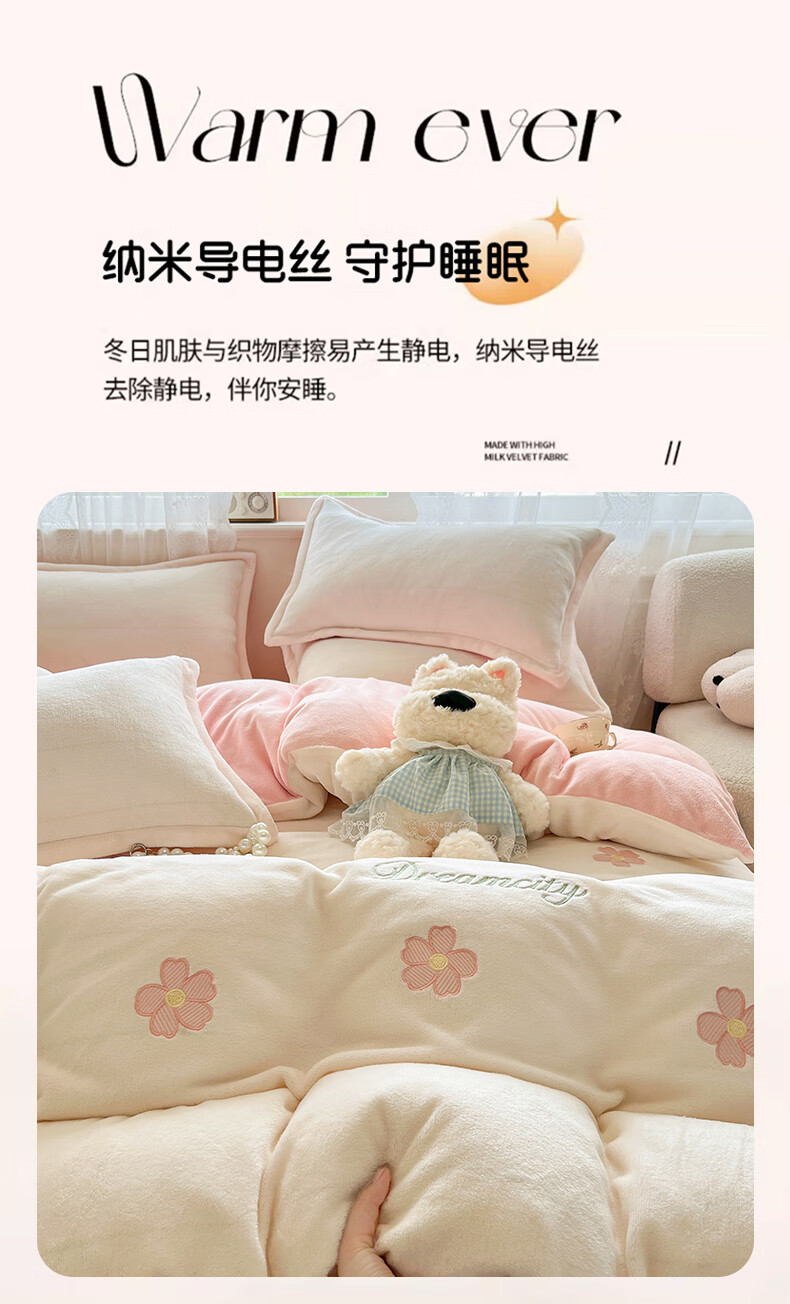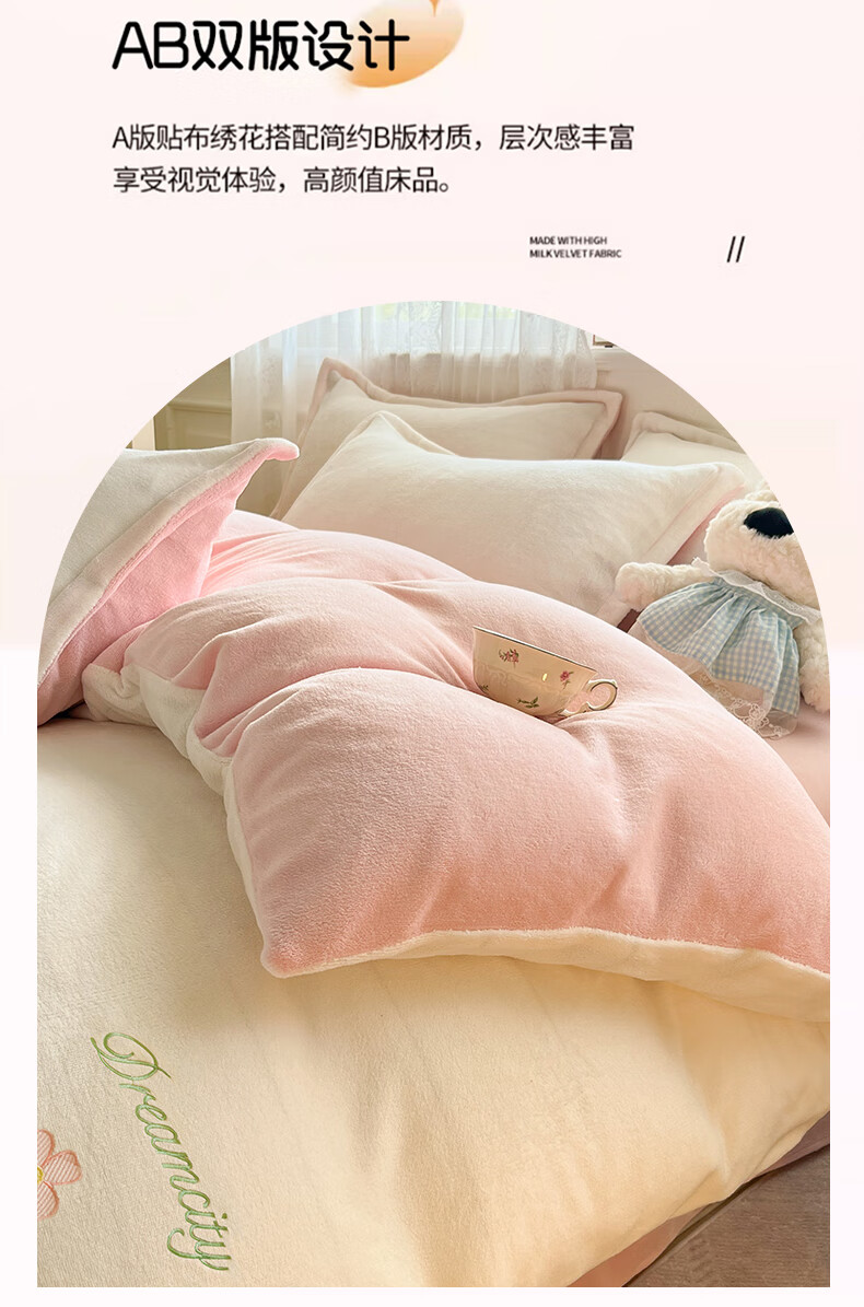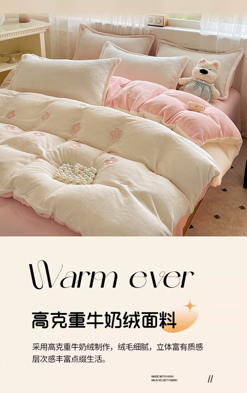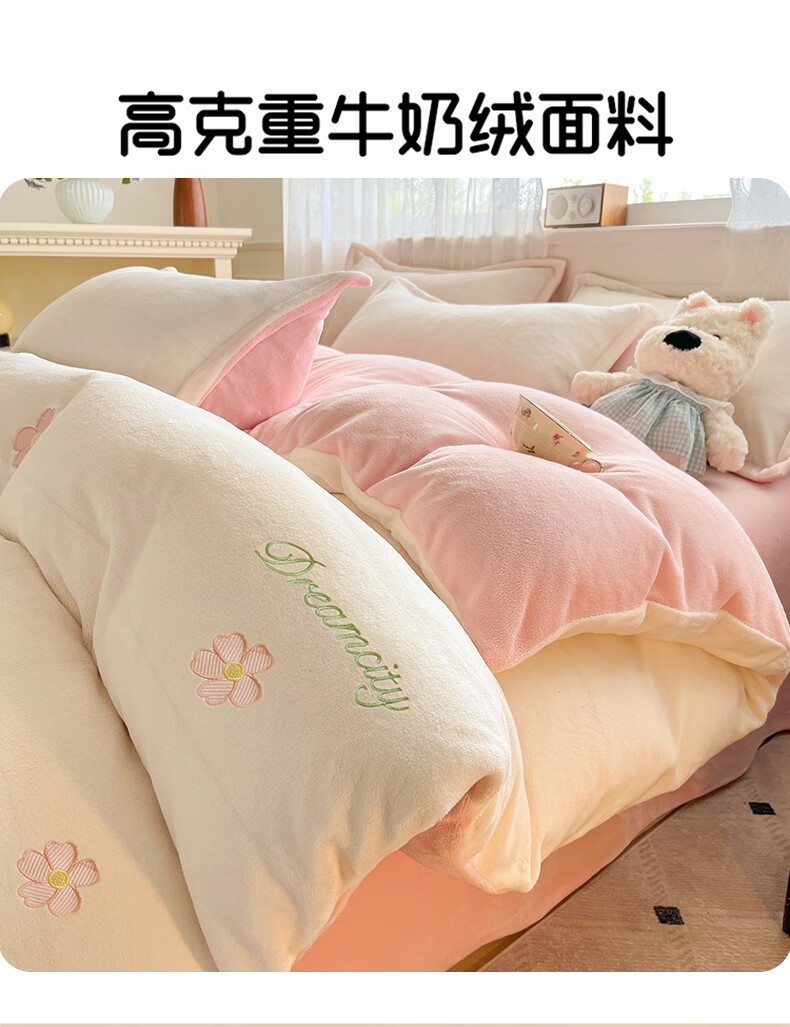 VJE毛巾绣加厚牛奶绒床上四件套冬季双面绒珊瑚绒被套床单加绒床品 熊猫抱竹-奶白绿 三件套1.2m 床单款 -被套150*200cm