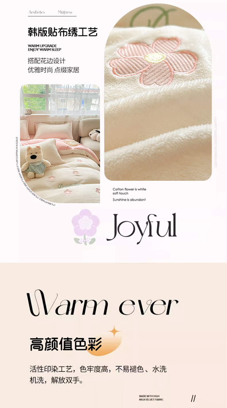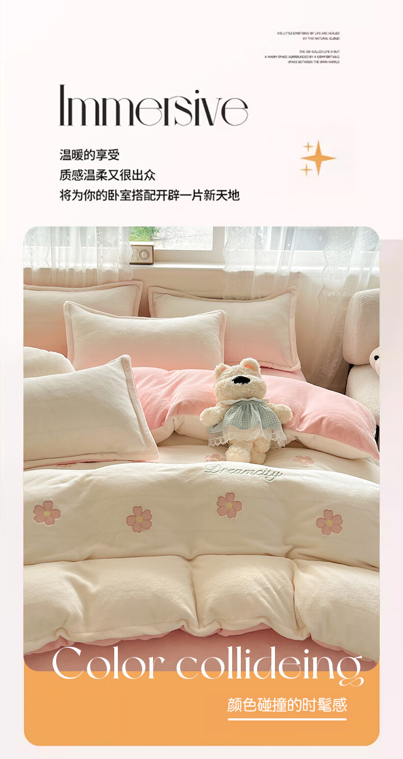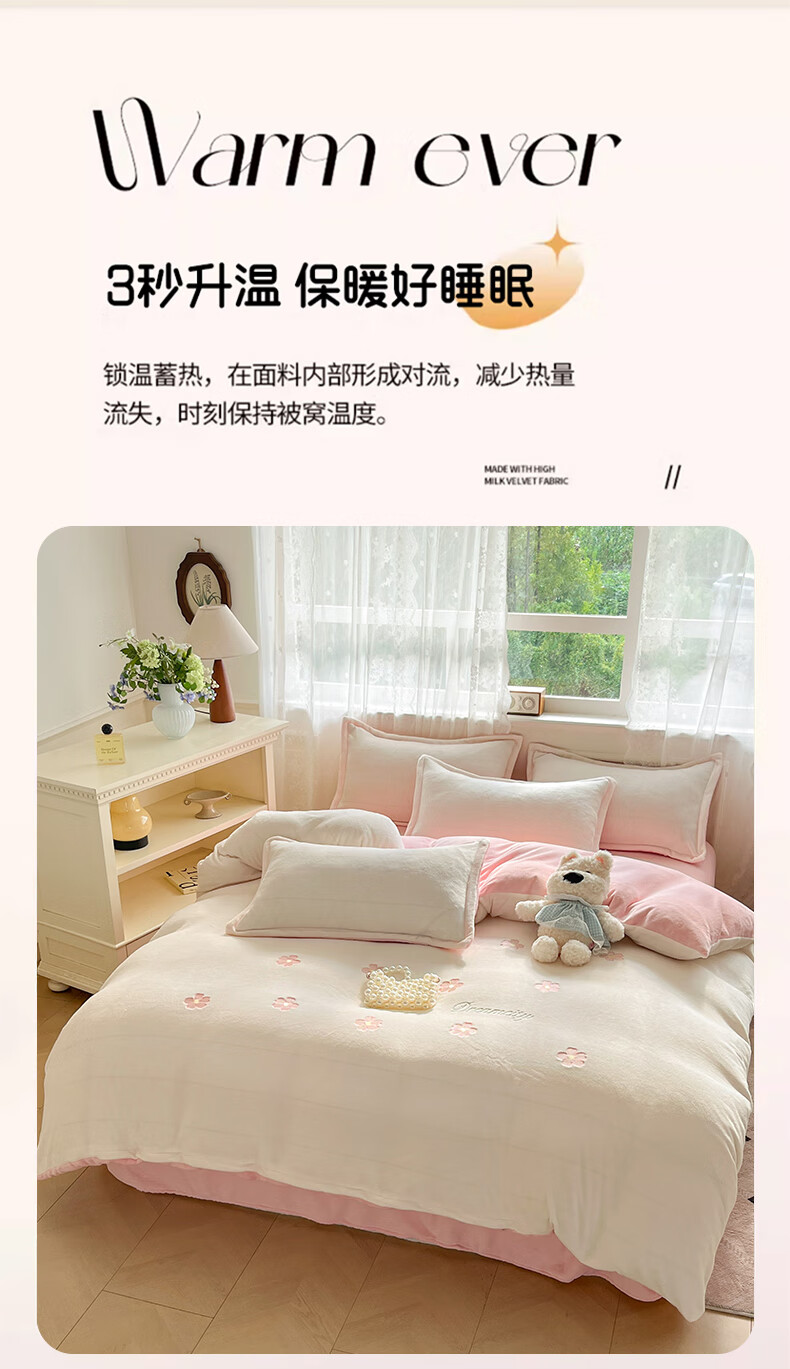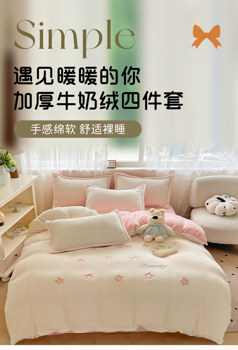 VJE毛巾绣加厚牛奶绒床上四件套冬季双面绒珊瑚绒被套床单加绒床品 熊猫抱竹-奶白绿 三件套1.2m 床单款 -被套150*200cm