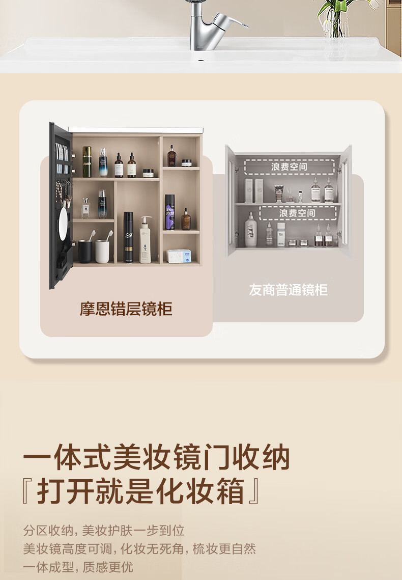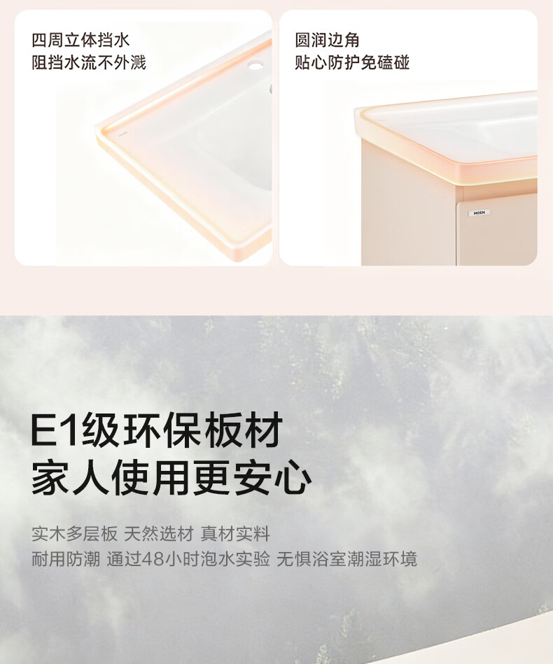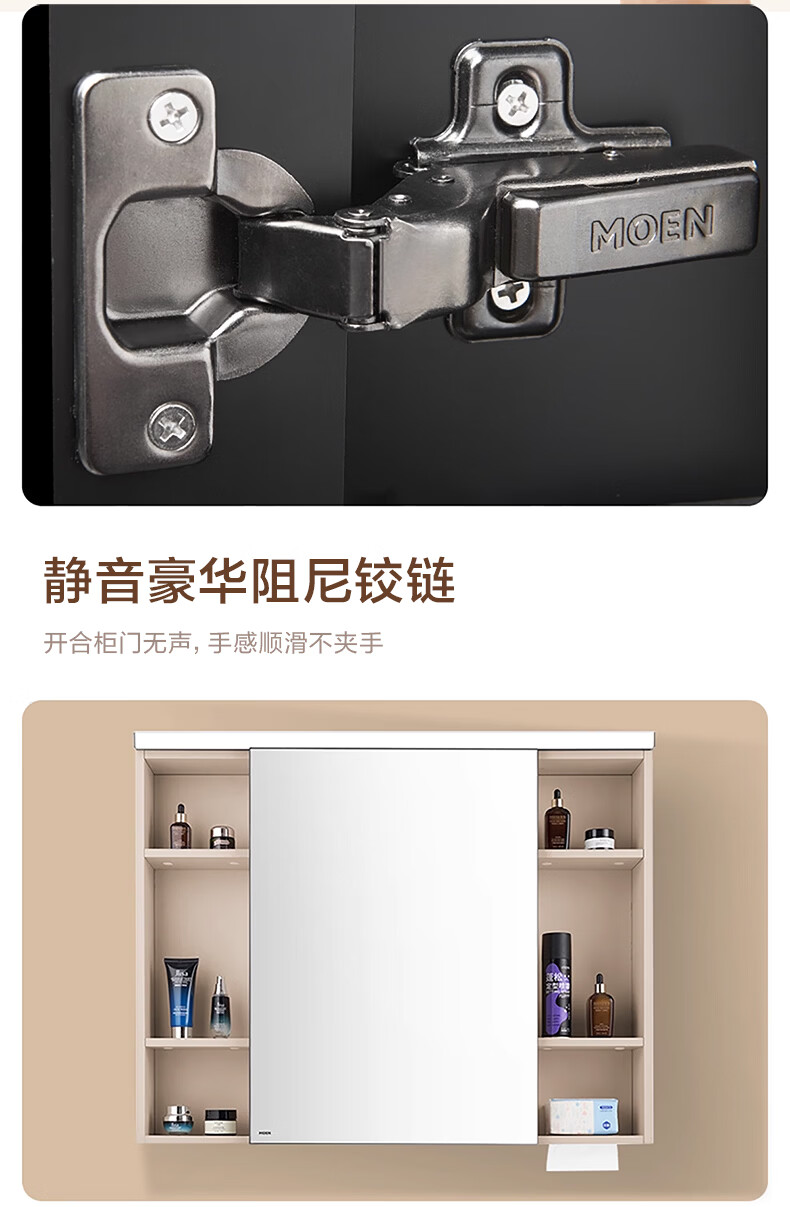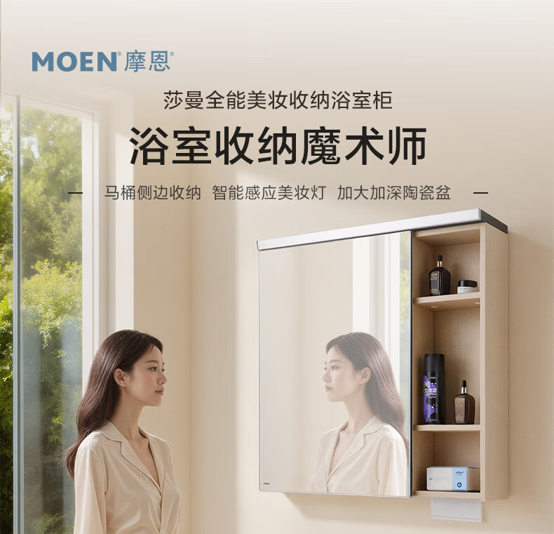 摩恩(MOEN)莎曼系列浴室柜洗手盆柜组合陶瓷一体盆洗手台卫浴柜洗漱台BC7505 1000毫米浴室柜+900毫米镜柜|智能版