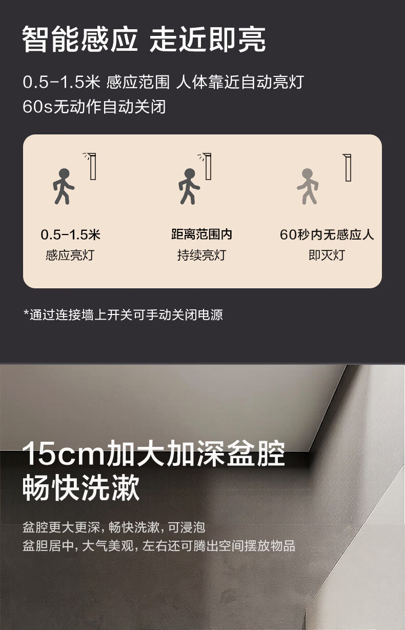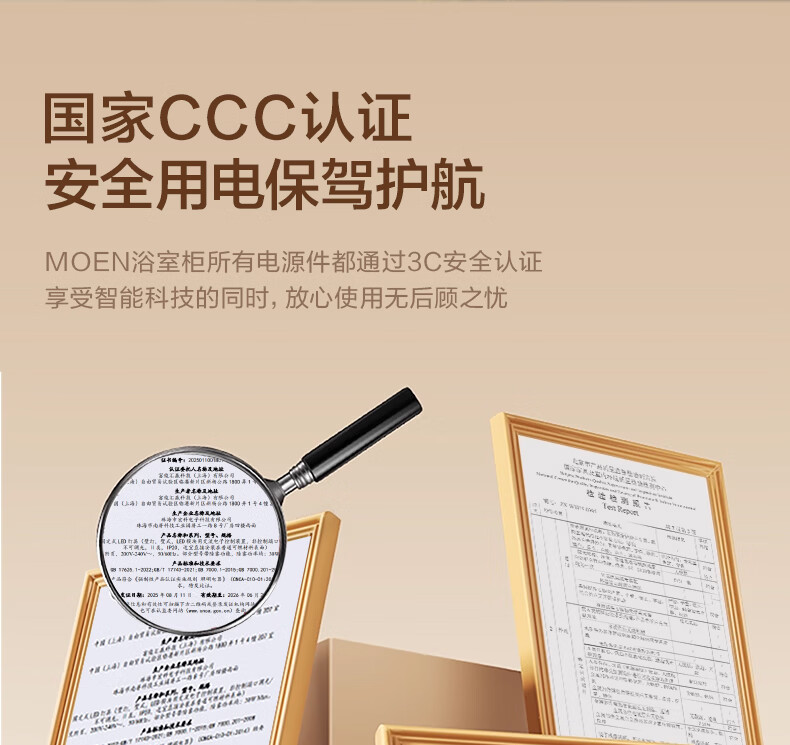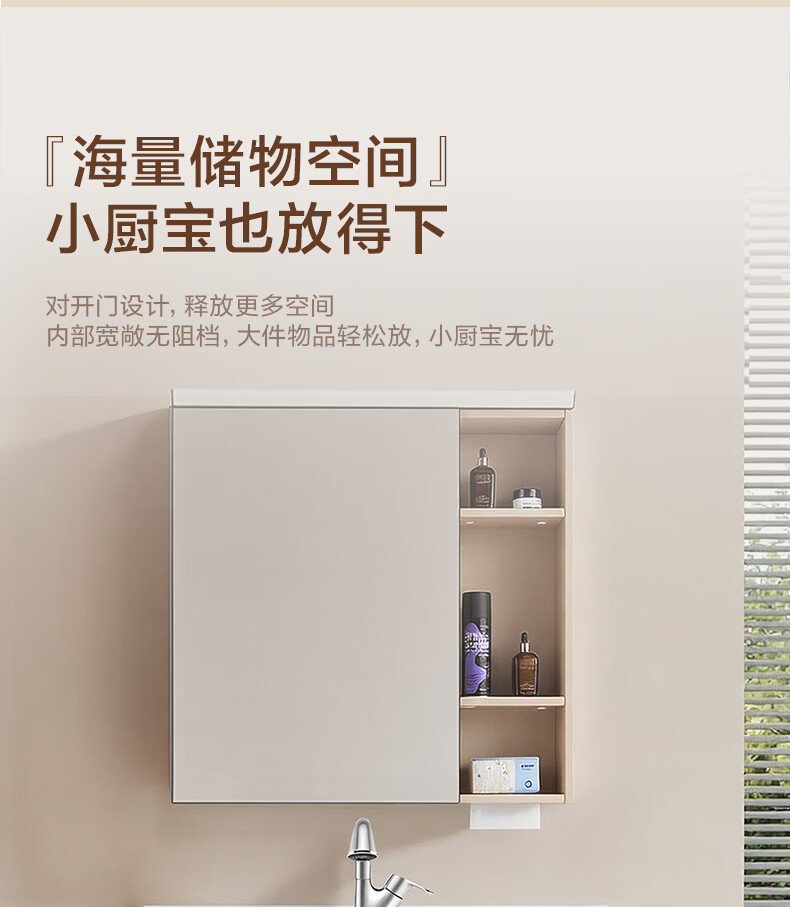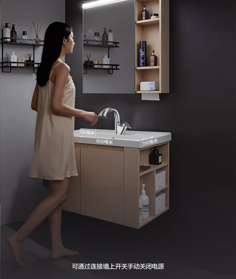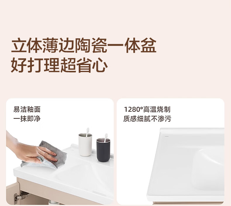 摩恩(MOEN)莎曼系列浴室柜洗手盆柜组合陶瓷一体盆洗手台卫浴柜洗漱台BC7505 1000毫米浴室柜+900毫米镜柜|智能版