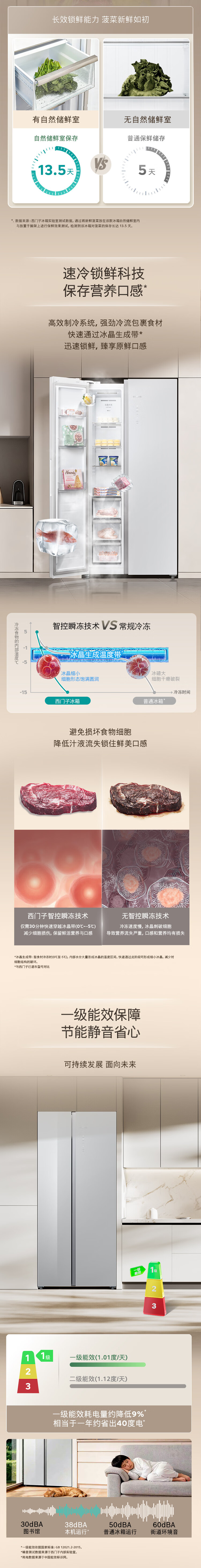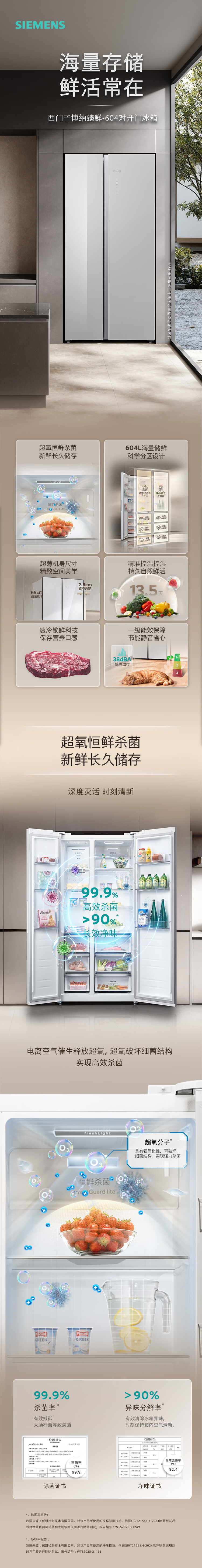 西门子(SIEMENS)博纳臻鲜604L对开门冰箱 超氧恒鲜杀菌 超大容量 科学分区 一级能效晶耀KA98CEA63C国家补贴