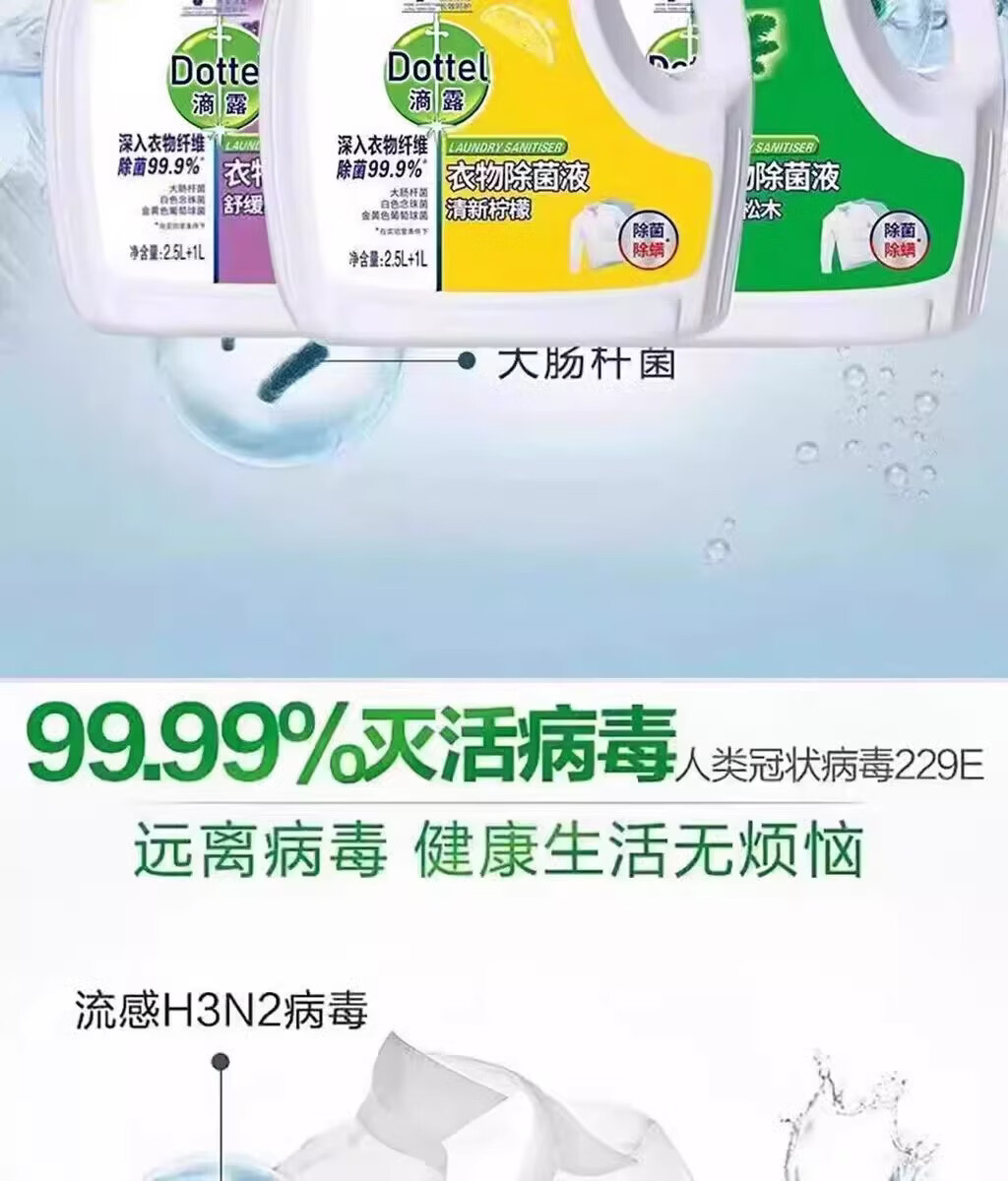 滴露(Dettol)滴露衣物除菌液3.5L杀菌除螨清新柠檬消毒液洗衣服专用持久留香 柠檬香3.5L