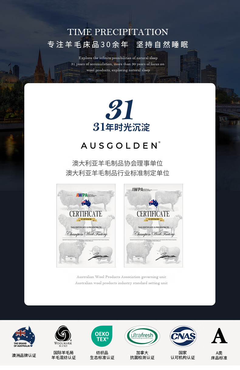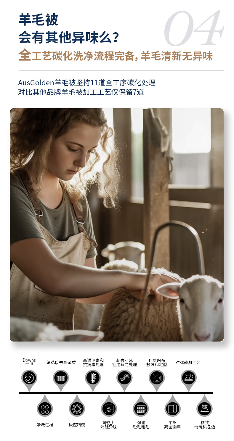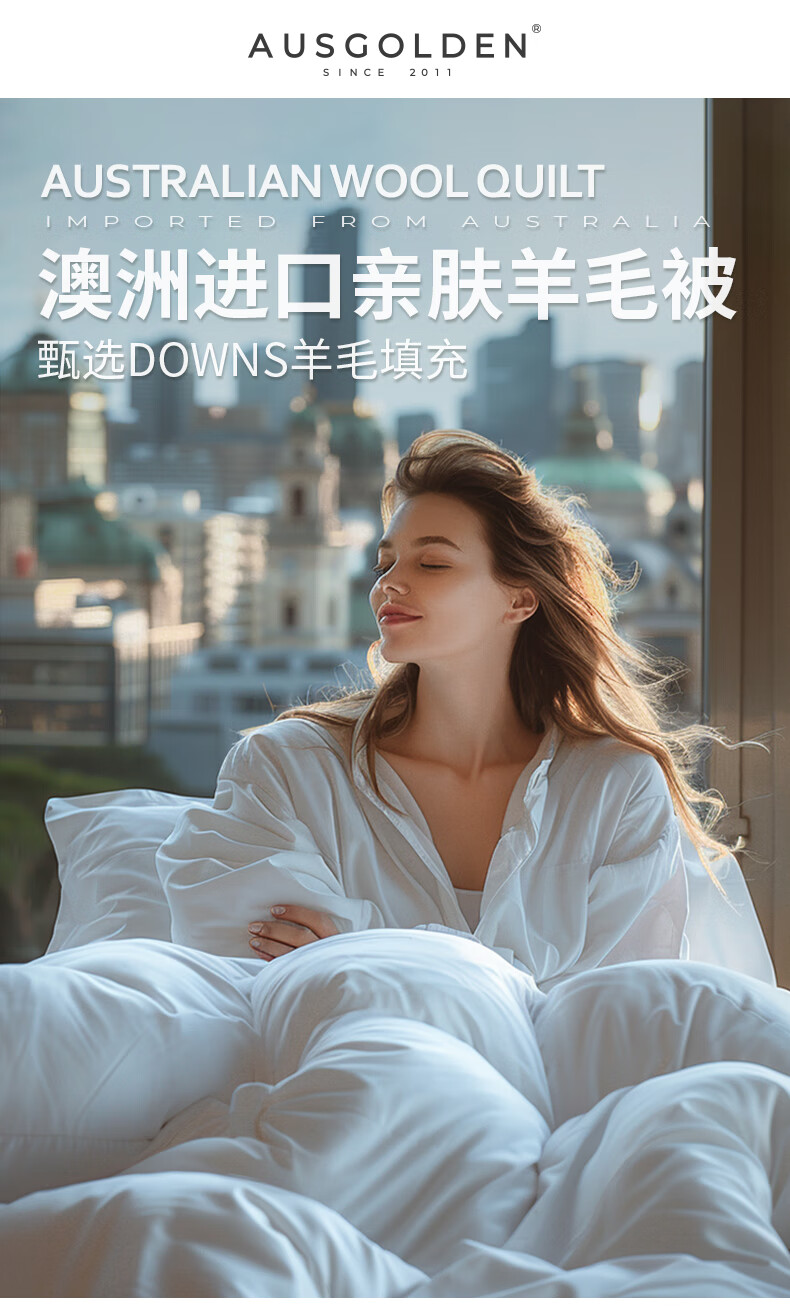 AusGolden澳洲进口亲肤羊毛被芯被褥 A类防螨抗菌夏被空调被透气双人春秋被 【51%澳洲羊毛】冬加厚被 被芯150*210cm(适1.2/1.5米床)