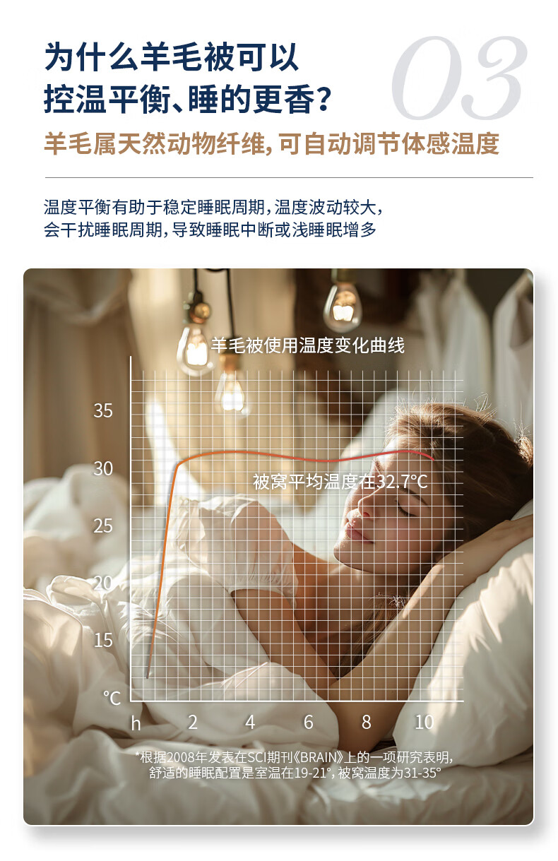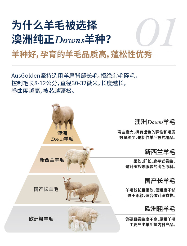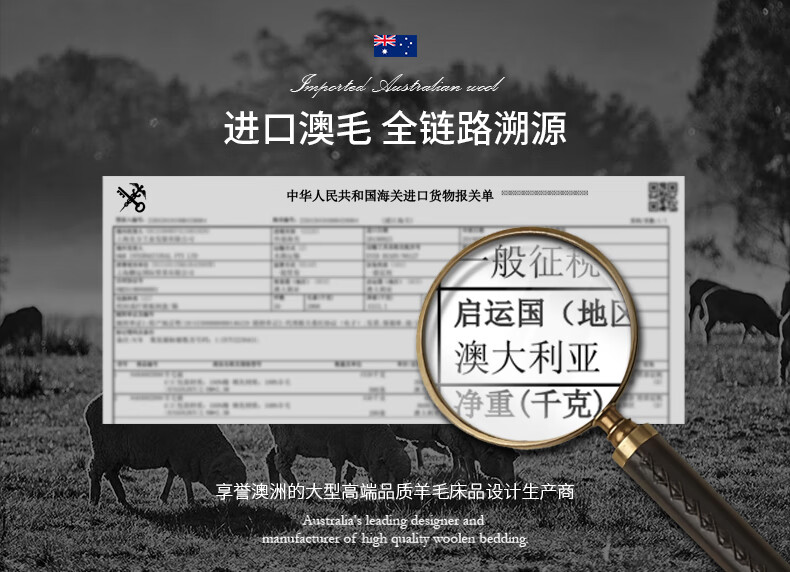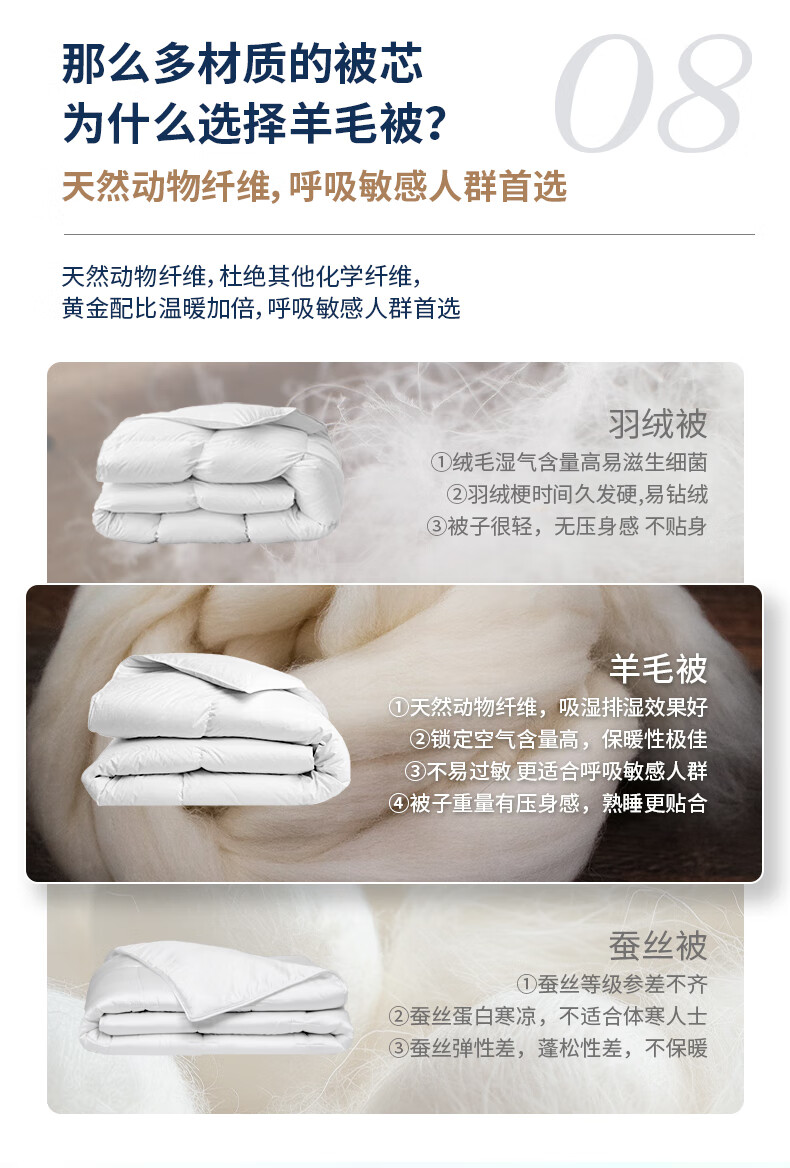 AusGolden澳洲进口亲肤羊毛被芯被褥 A类防螨抗菌夏被空调被透气双人春秋被 【51%澳洲羊毛】冬加厚被 被芯150*210cm(适1.2/1.5米床)