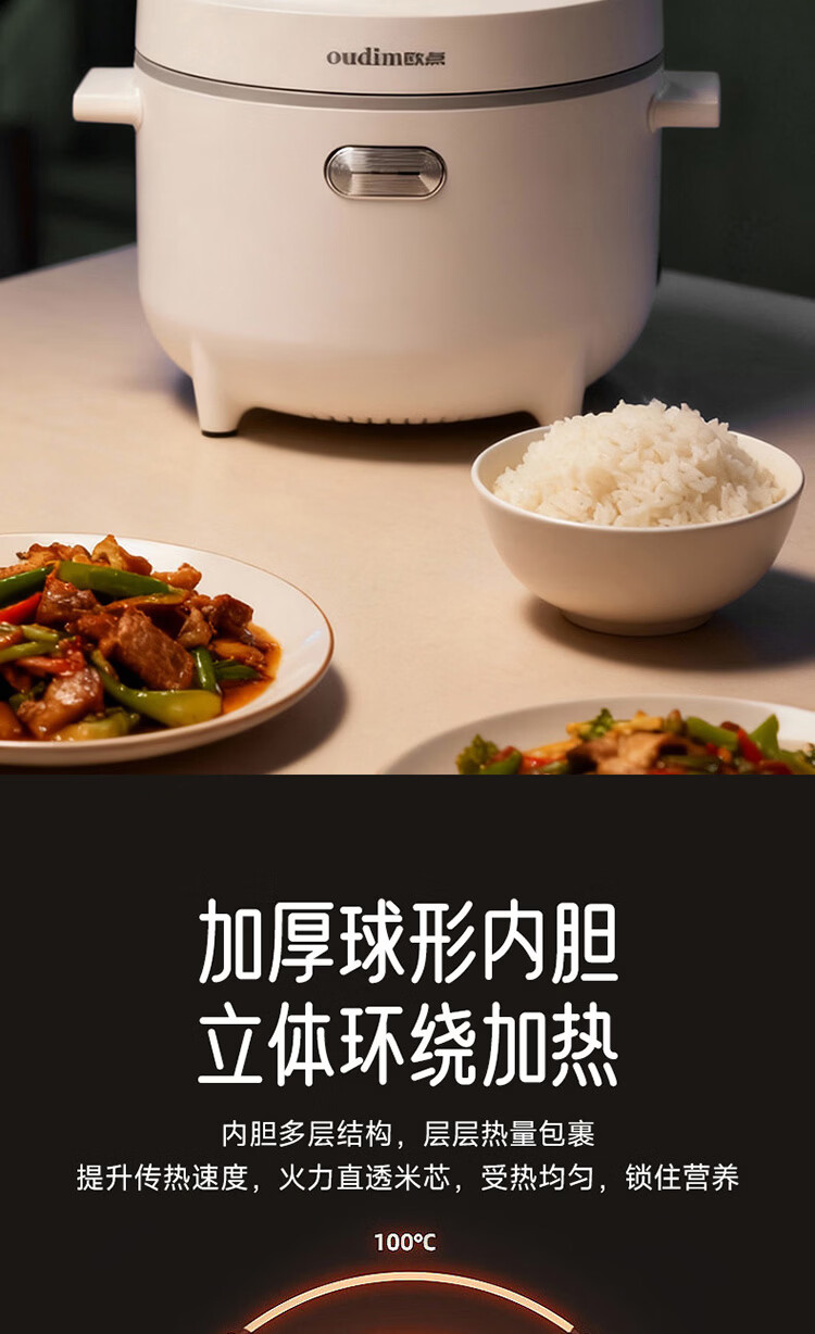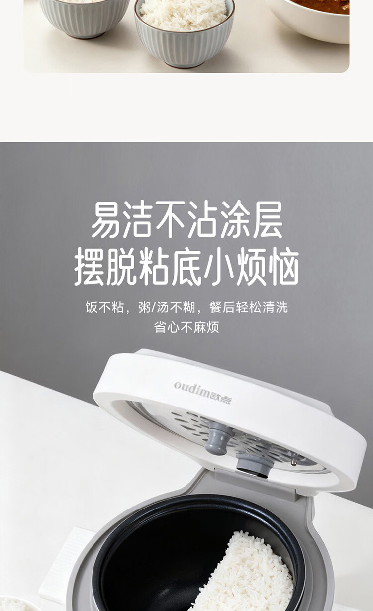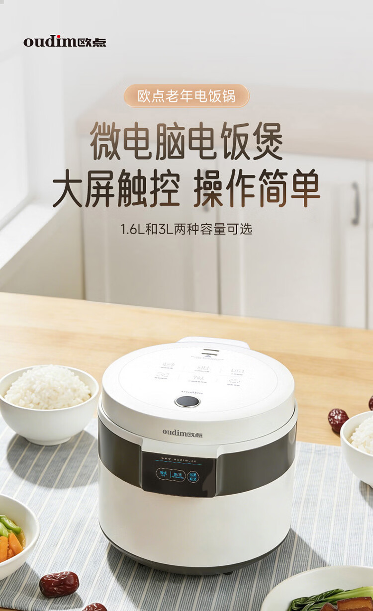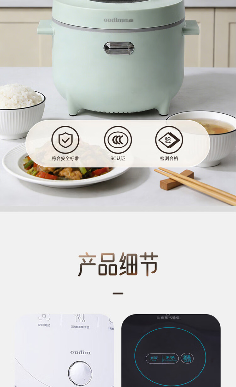 欧点智能电饭煲家用电饭锅不粘涂层内胆微压力电炖锅一键操作电蒸锅煮粥蒸煮饭锅3-4-5-6人 送老人 翡翠绿 1.6L 【饭煲|350W】