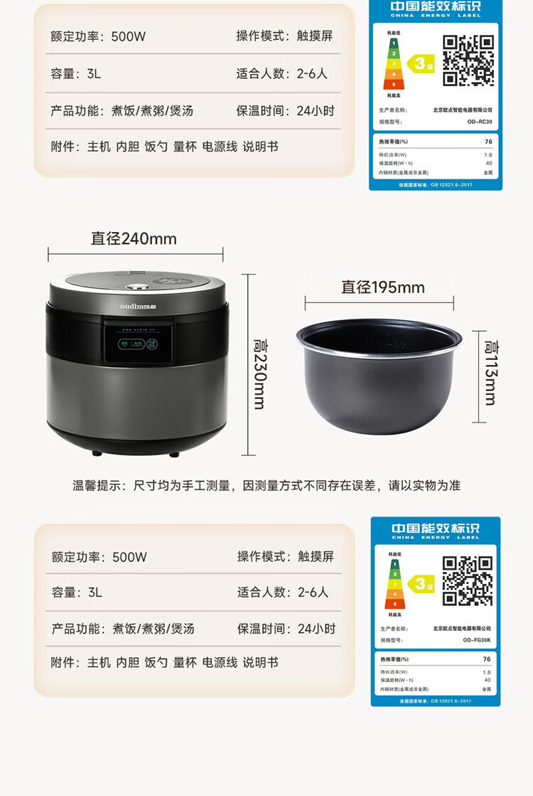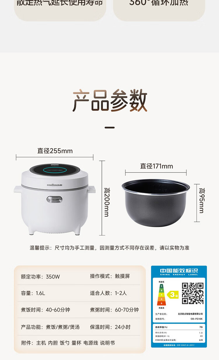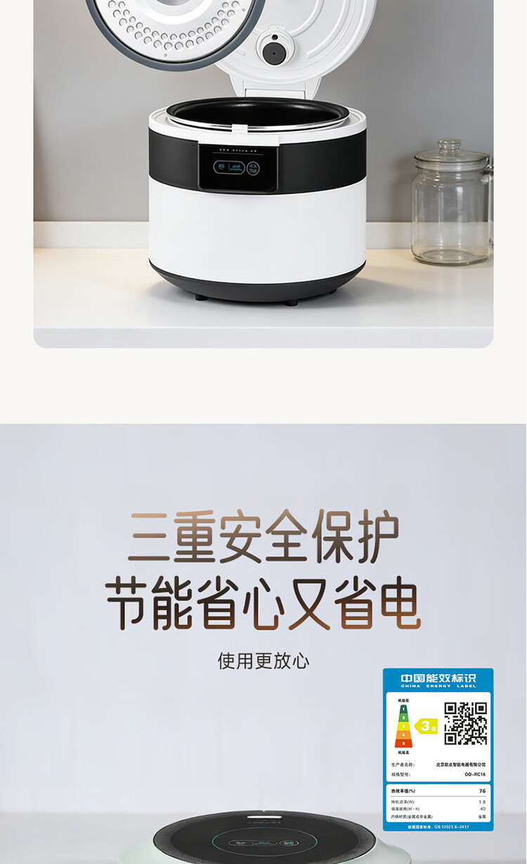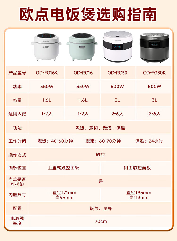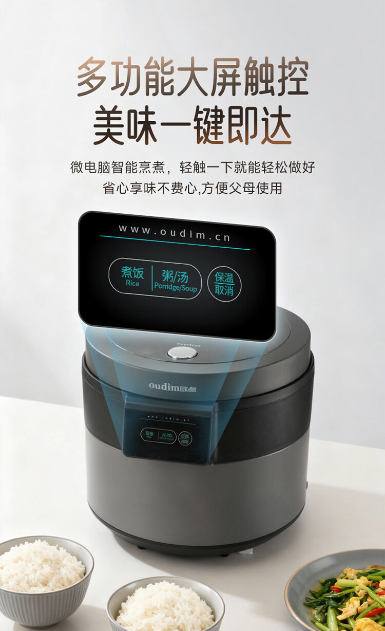 欧点智能电饭煲家用电饭锅不粘涂层内胆微压力电炖锅一键操作电蒸锅煮粥蒸煮饭锅3-4-5-6人 送老人 翡翠绿 1.6L 【饭煲|350W】
