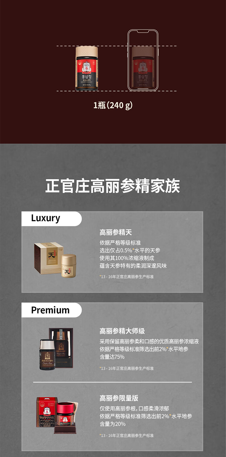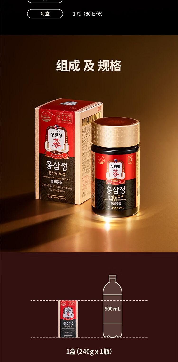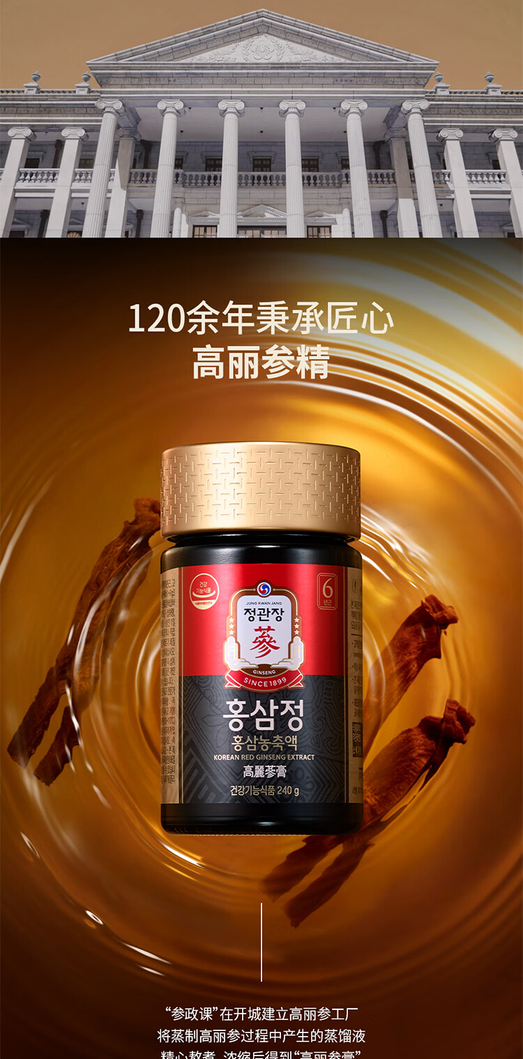 正官庄PLUS240g6年根高浓缩高丽参红参人参膏补气血营养品送礼韩国进口