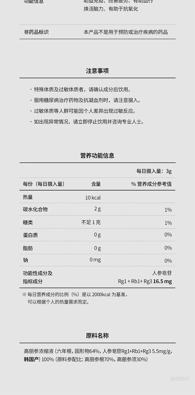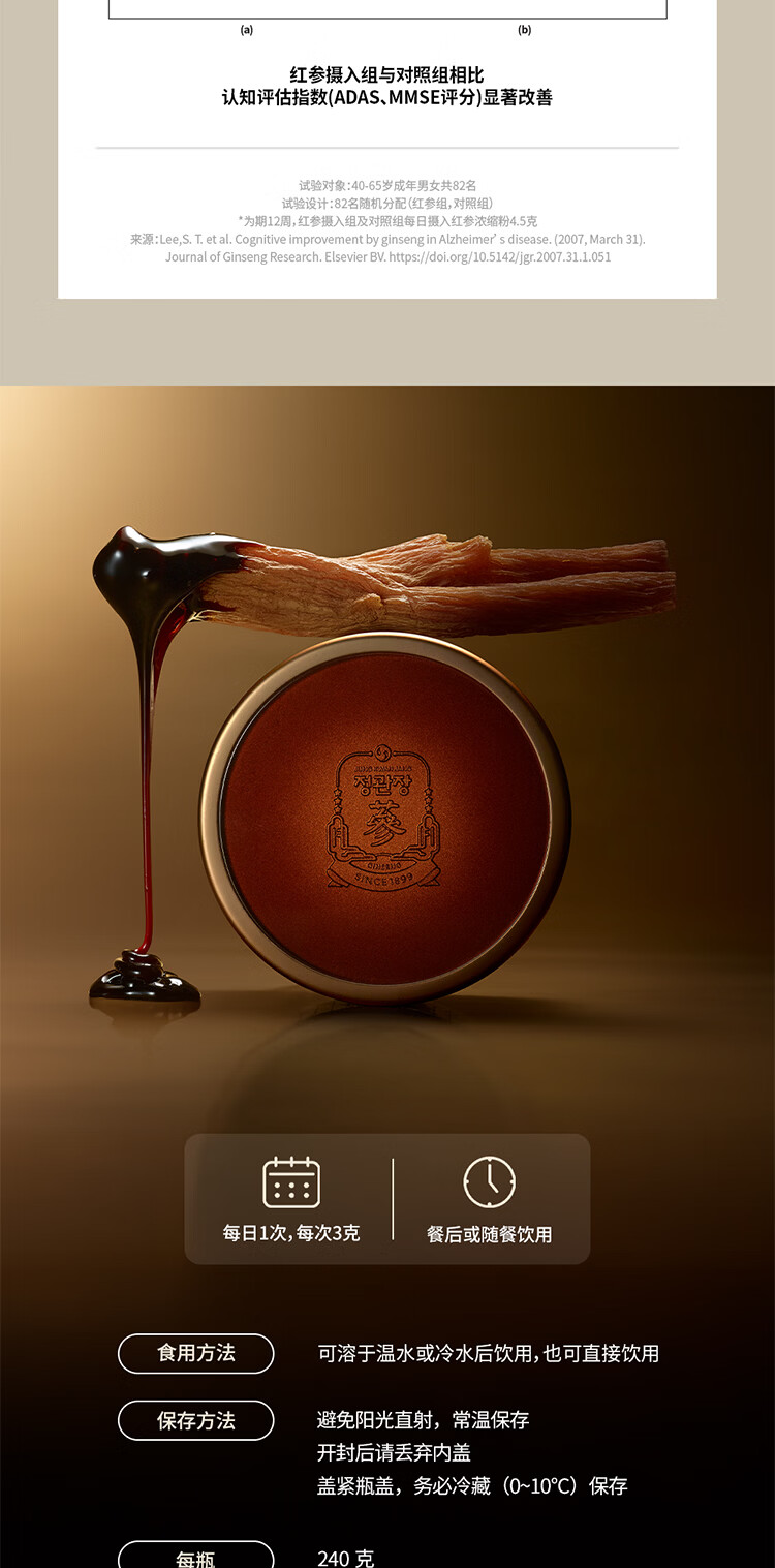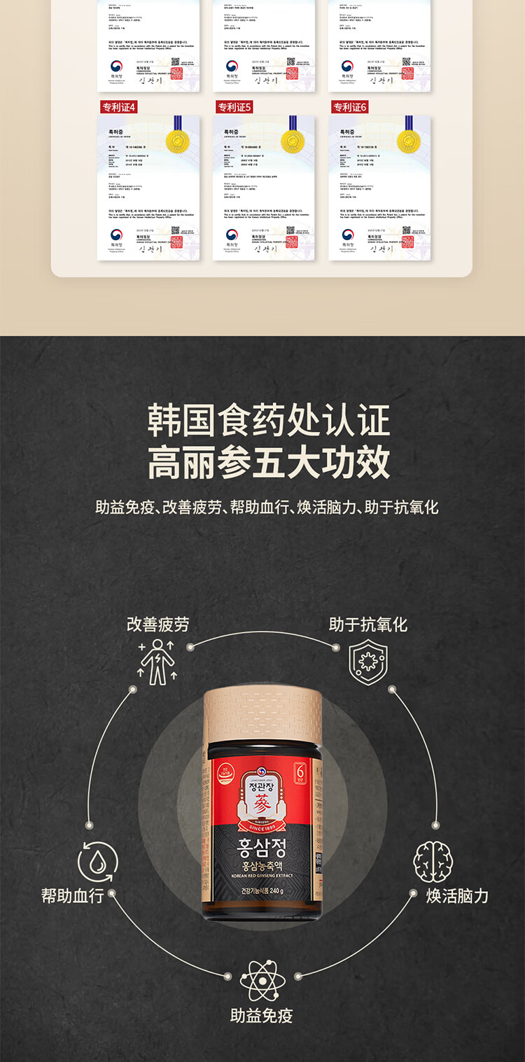 正官庄PLUS240g6年根高浓缩高丽参红参人参膏补气血营养品送礼韩国进口
