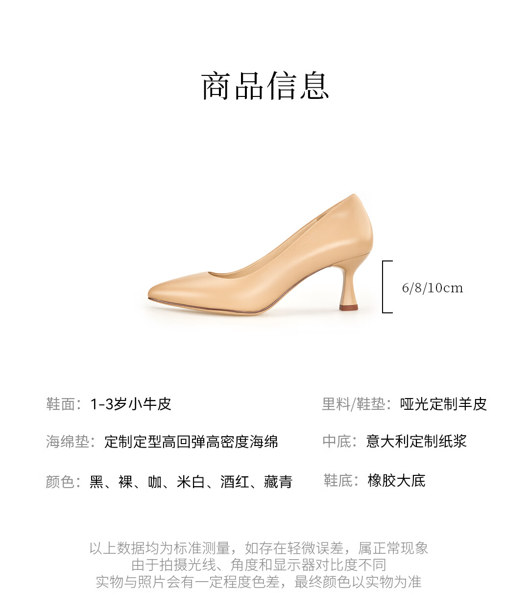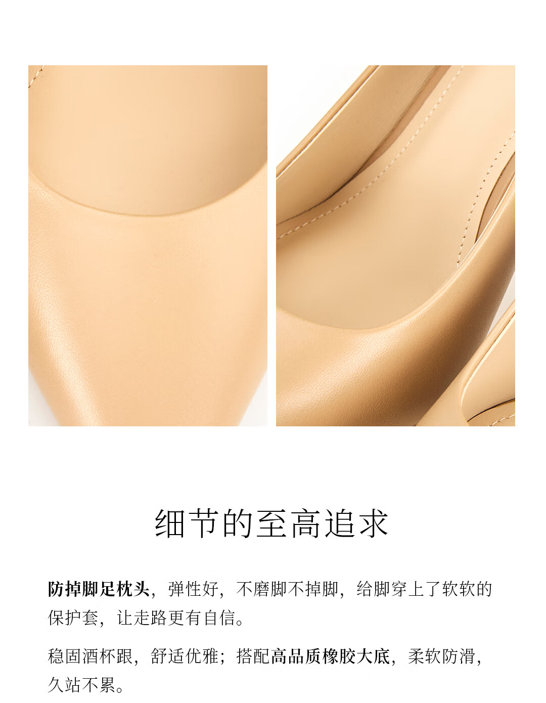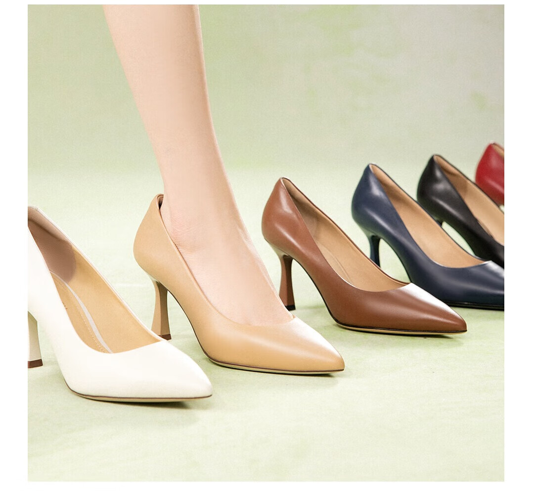 LING MEI CHEN软底高跟鞋真皮不累脚女鞋上班皮鞋新款百搭尖头裸色单鞋 蓝色 8cm 35