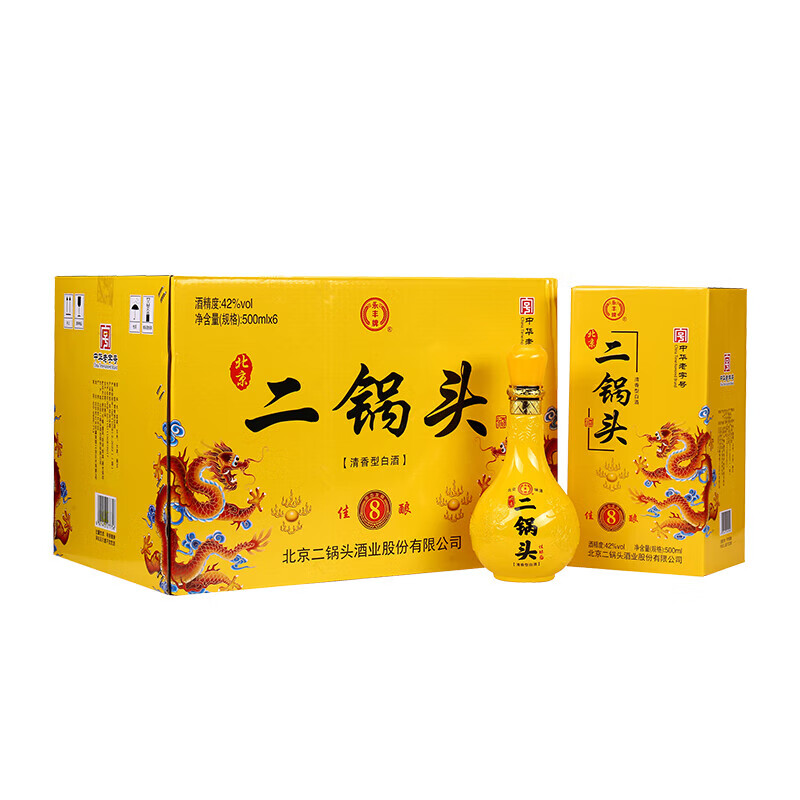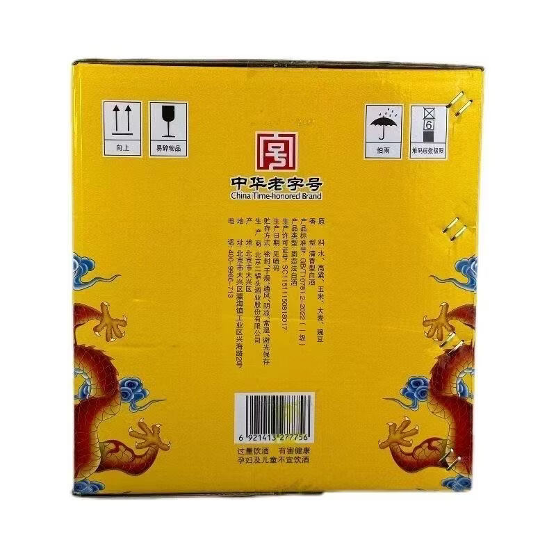 永丰牌北京二锅头黄龙佳酿纯粮酿造白酒清香型年货节礼盒送礼整箱 42度 500mL 6瓶 永丰黄龙礼盒送礼