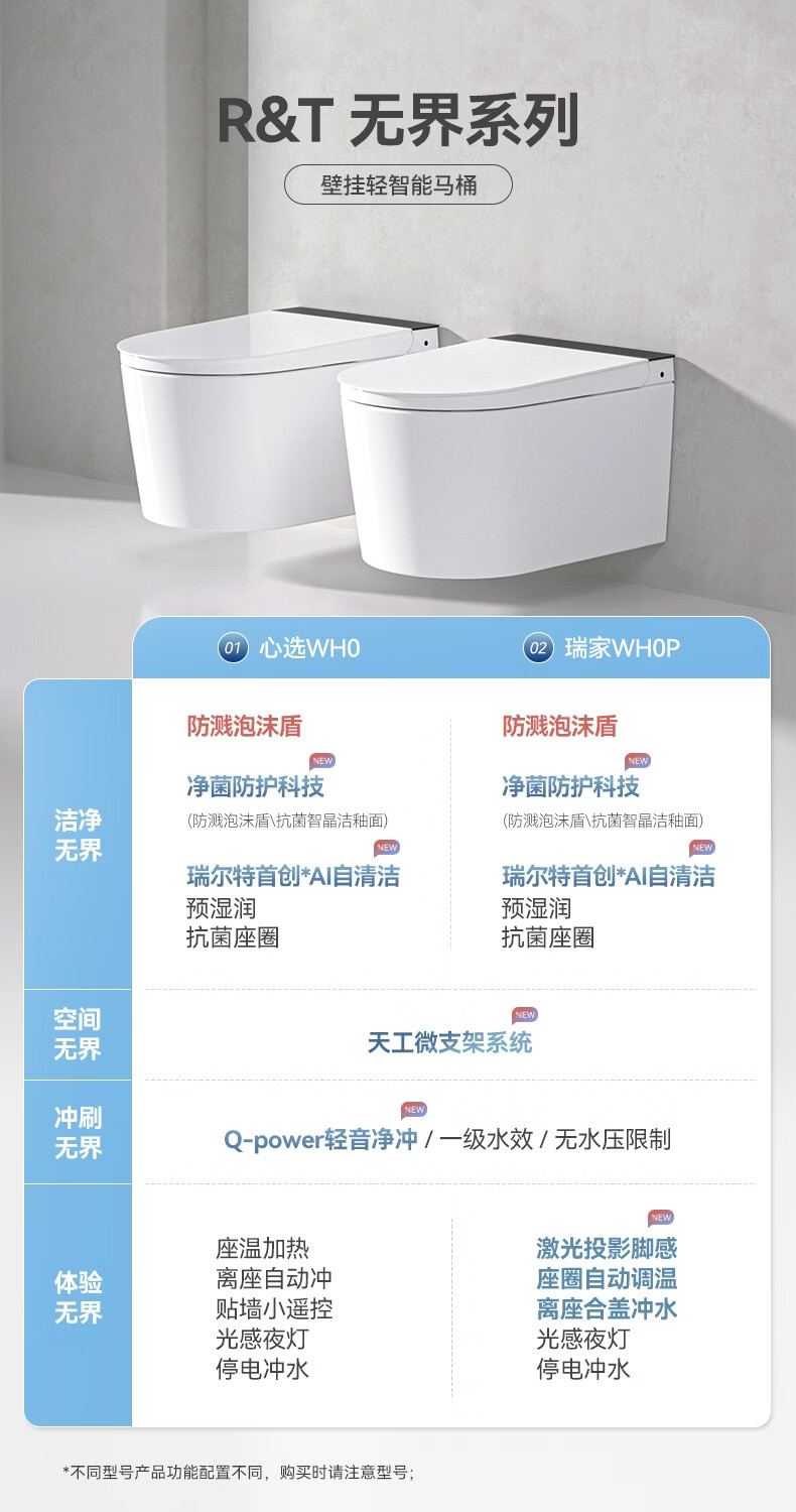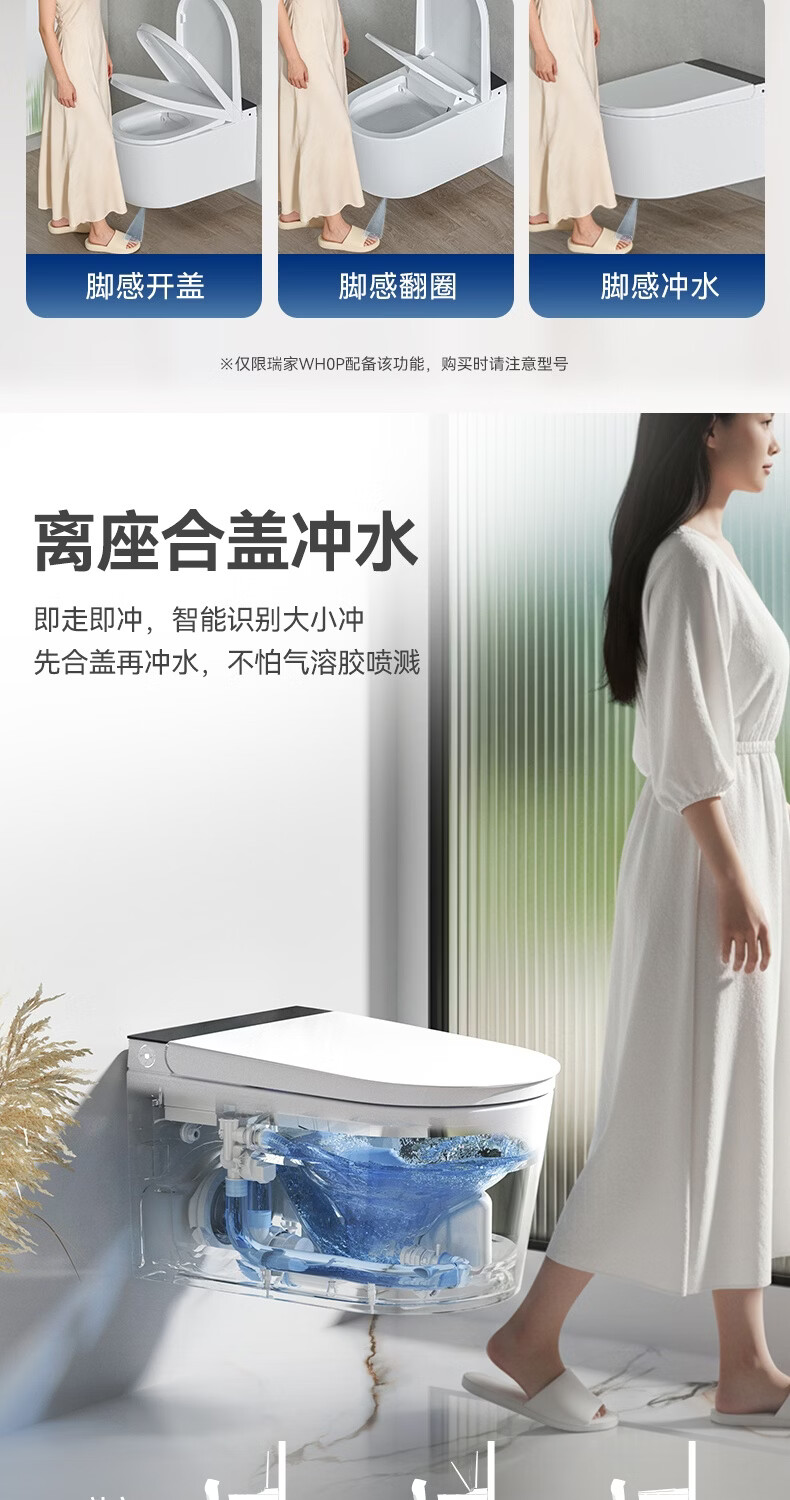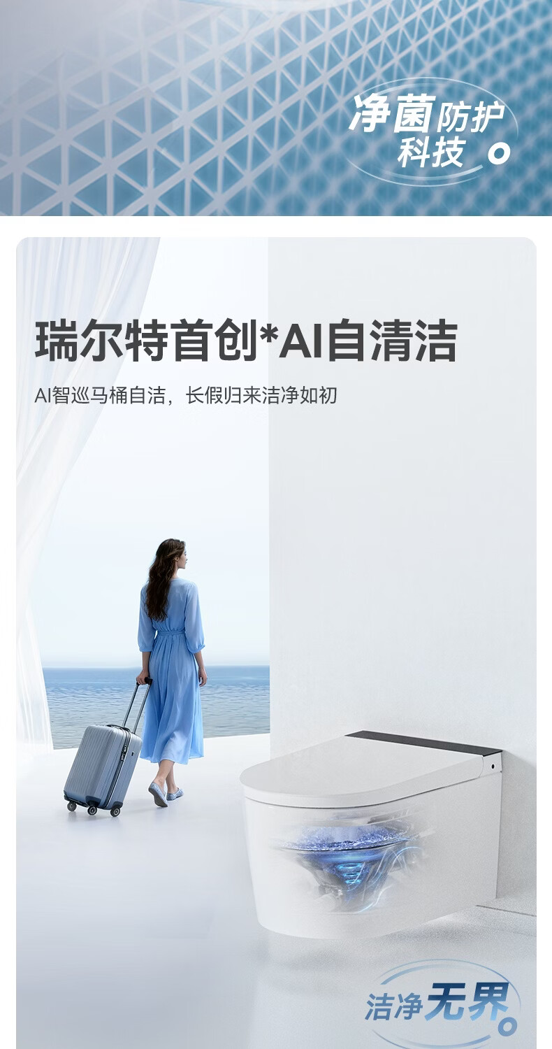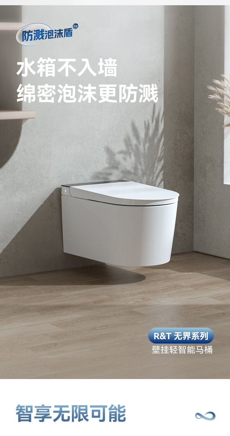 瑞尔特(R&T)瑞尔特无界系列壁挂式轻智能马桶家用自动翻盖一体悬浮电动坐便器 WH0 305/300mm