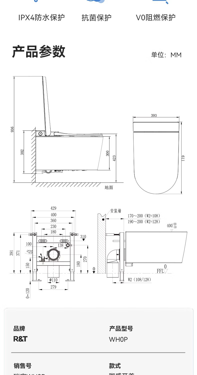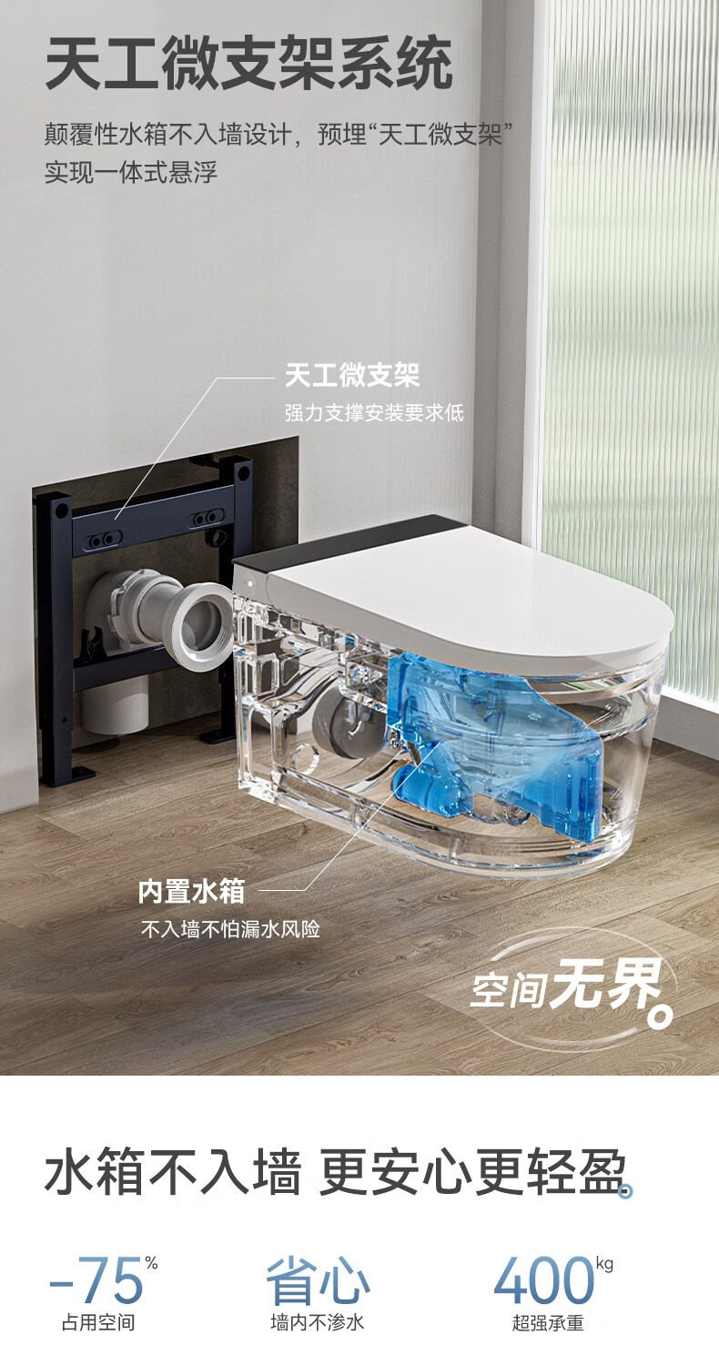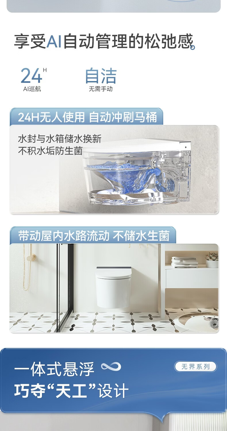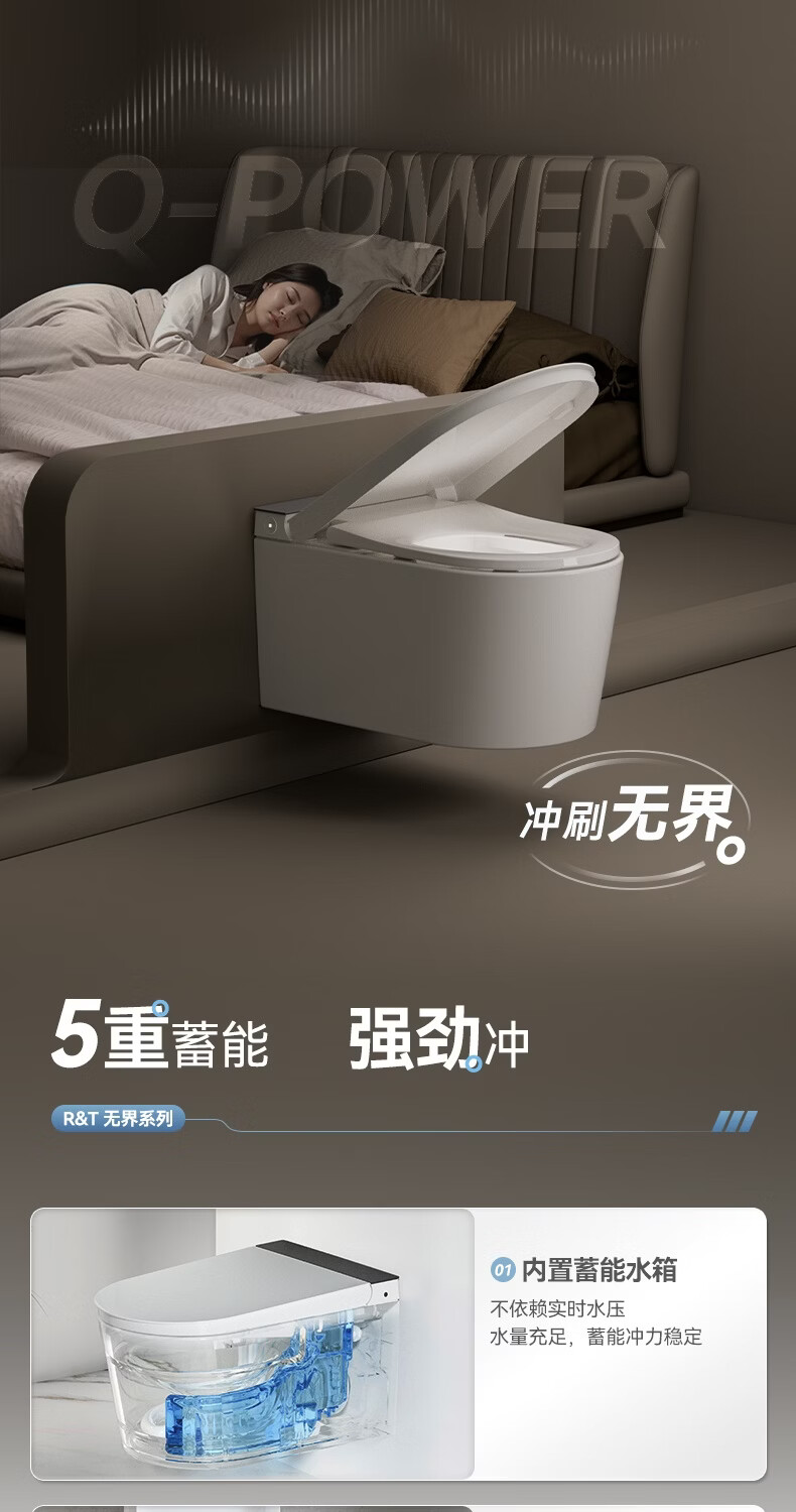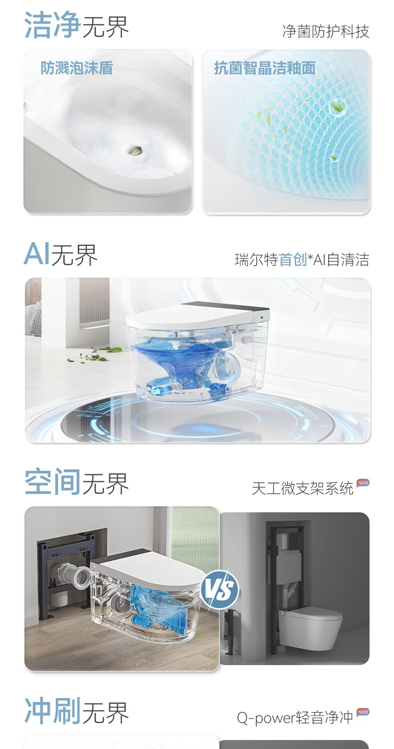 瑞尔特(R&T)瑞尔特无界系列壁挂式轻智能马桶家用自动翻盖一体悬浮电动坐便器 WH0 305/300mm
