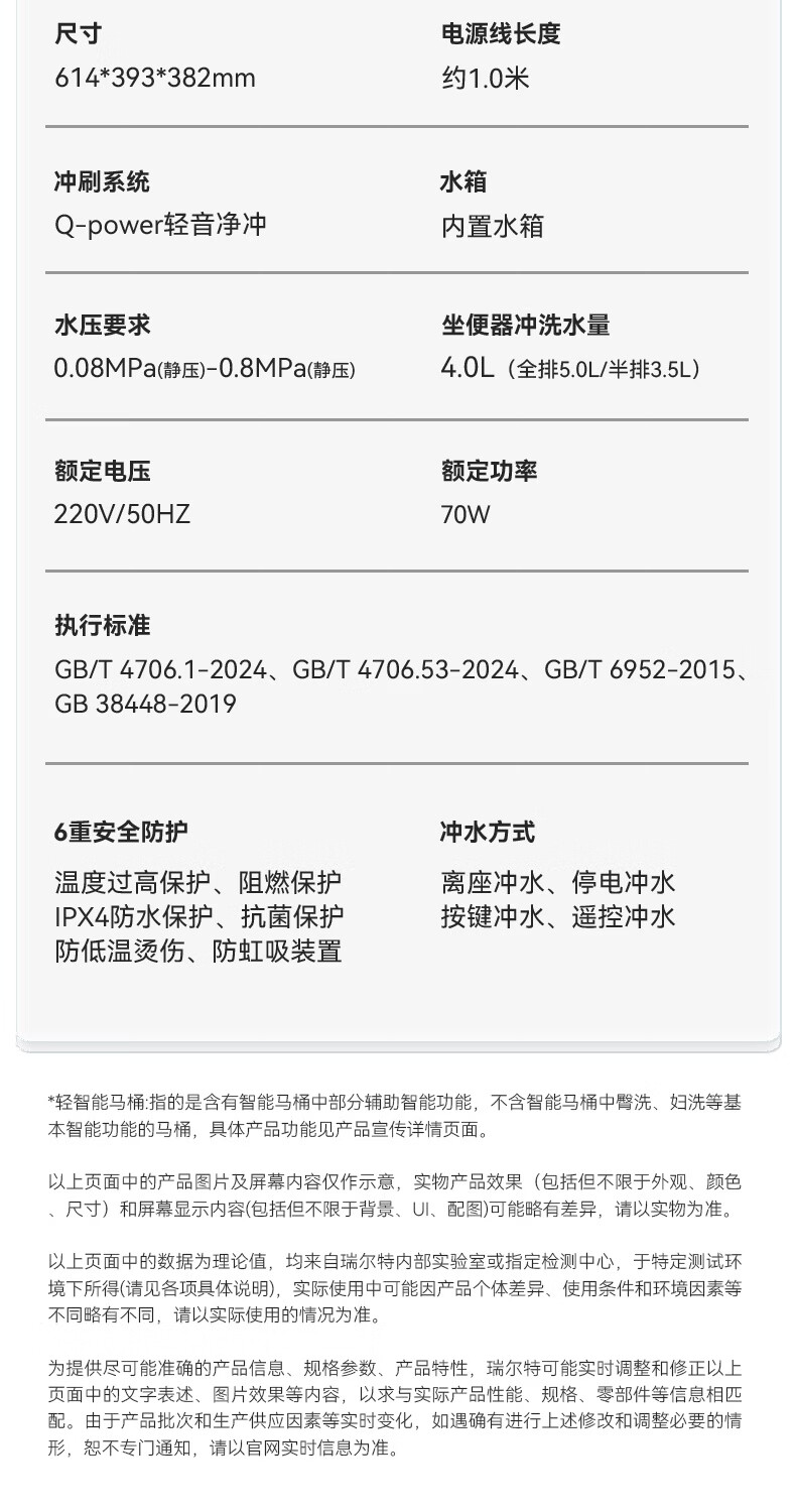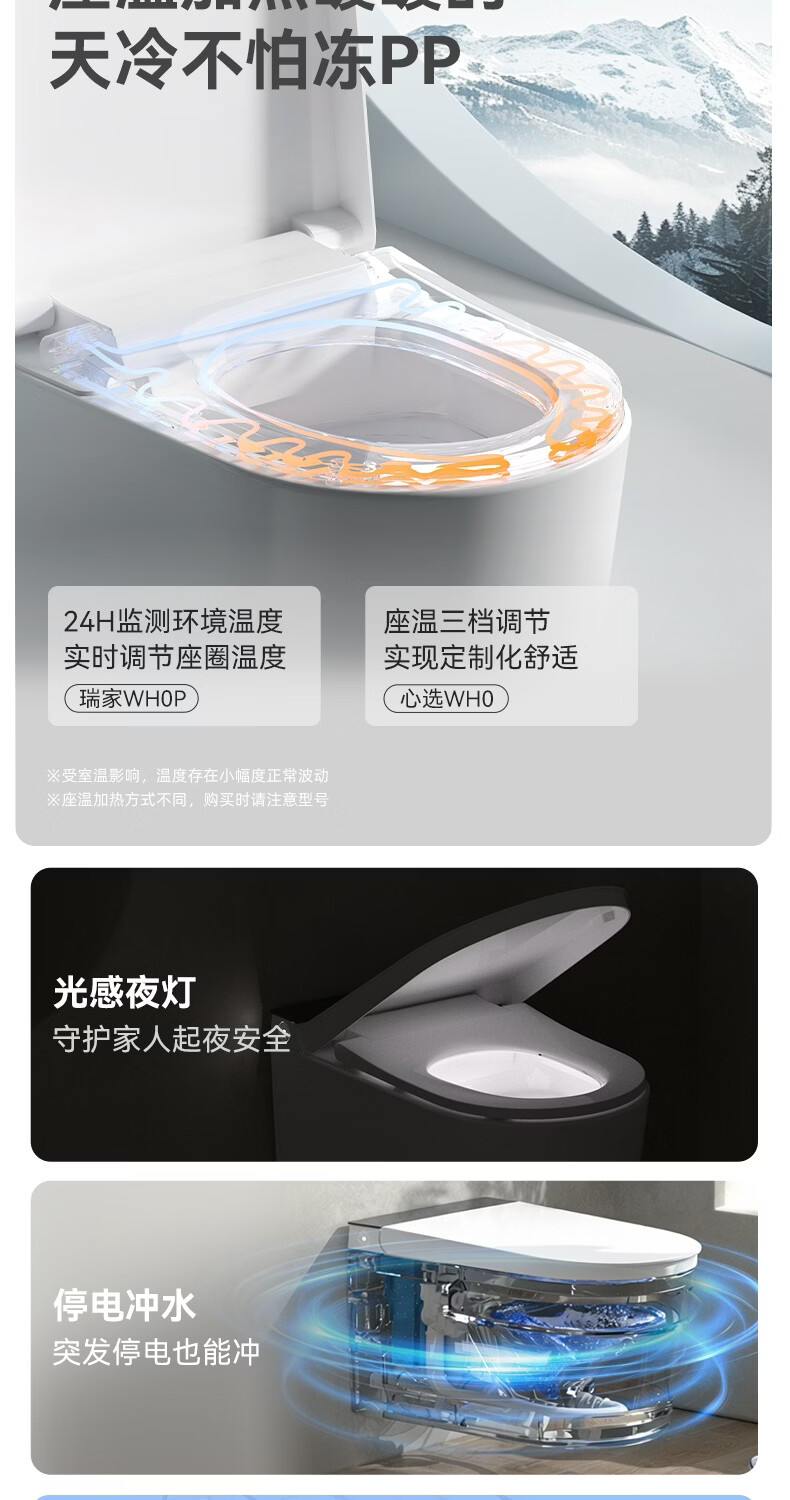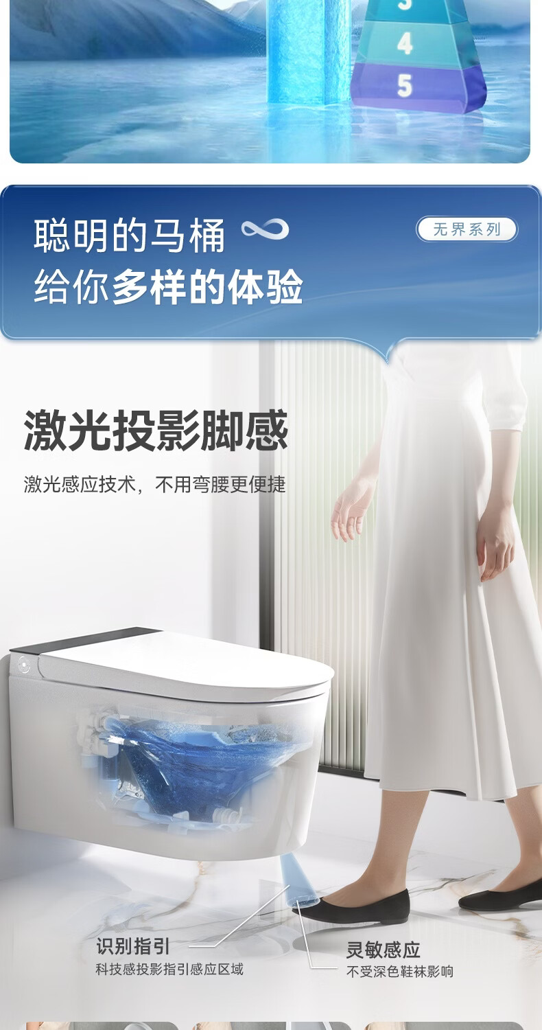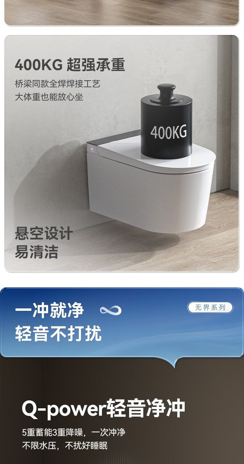 瑞尔特(R&T)瑞尔特无界系列壁挂式轻智能马桶家用自动翻盖一体悬浮电动坐便器 WH0 305/300mm