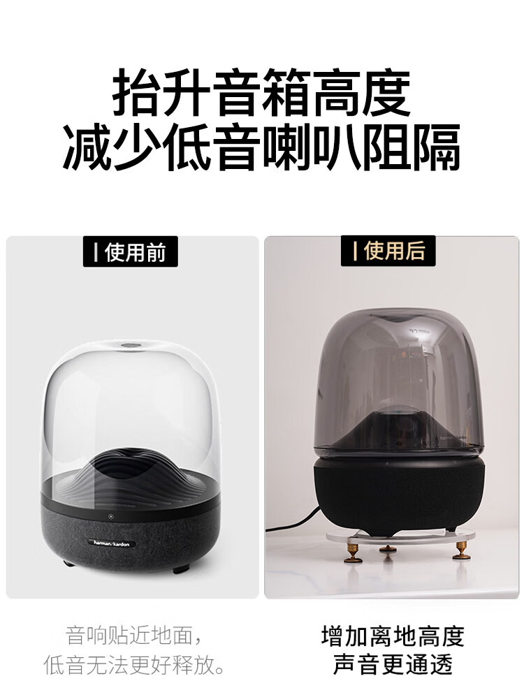 圆佑堂哈曼卡顿Harmankardon琉璃2/3/4代水晶4代金属桌面款防滑悬浮支架 哈曼卡顿支架【透明+银色脚】