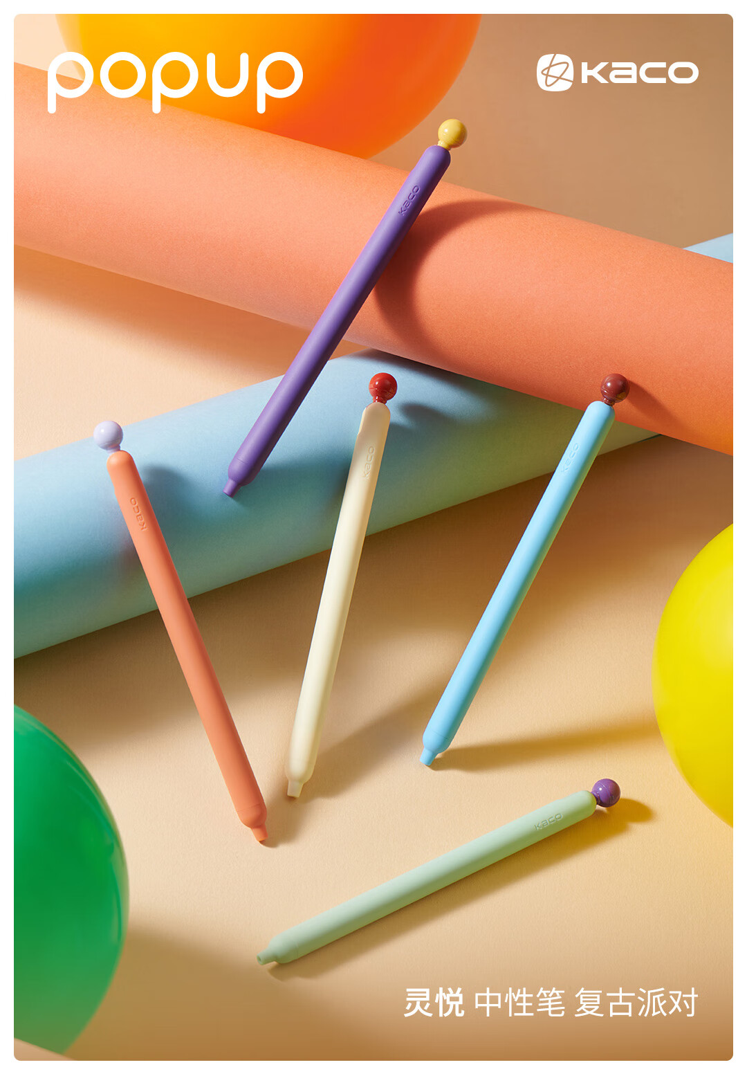 KACO POPUP灵悦复古派对中性笔套装创意高颜值ins风解压按动 0.5黑学生书写刷题创意办公 复古派对