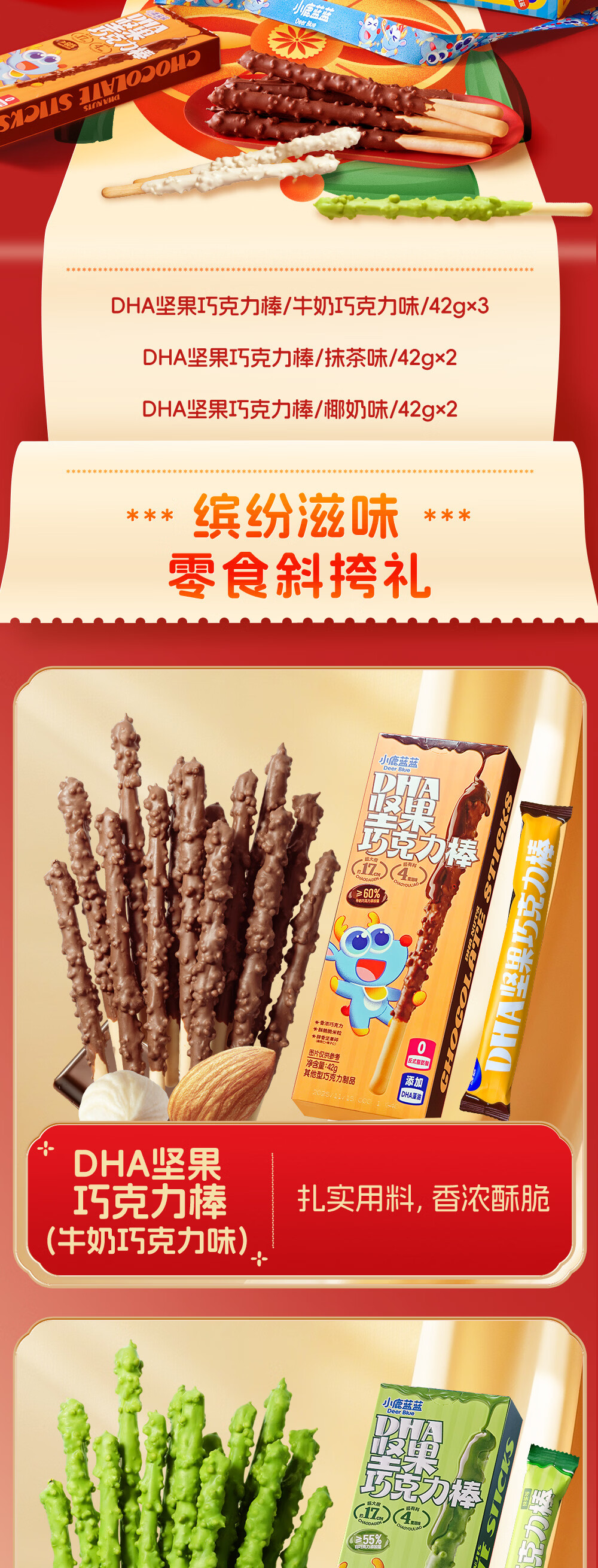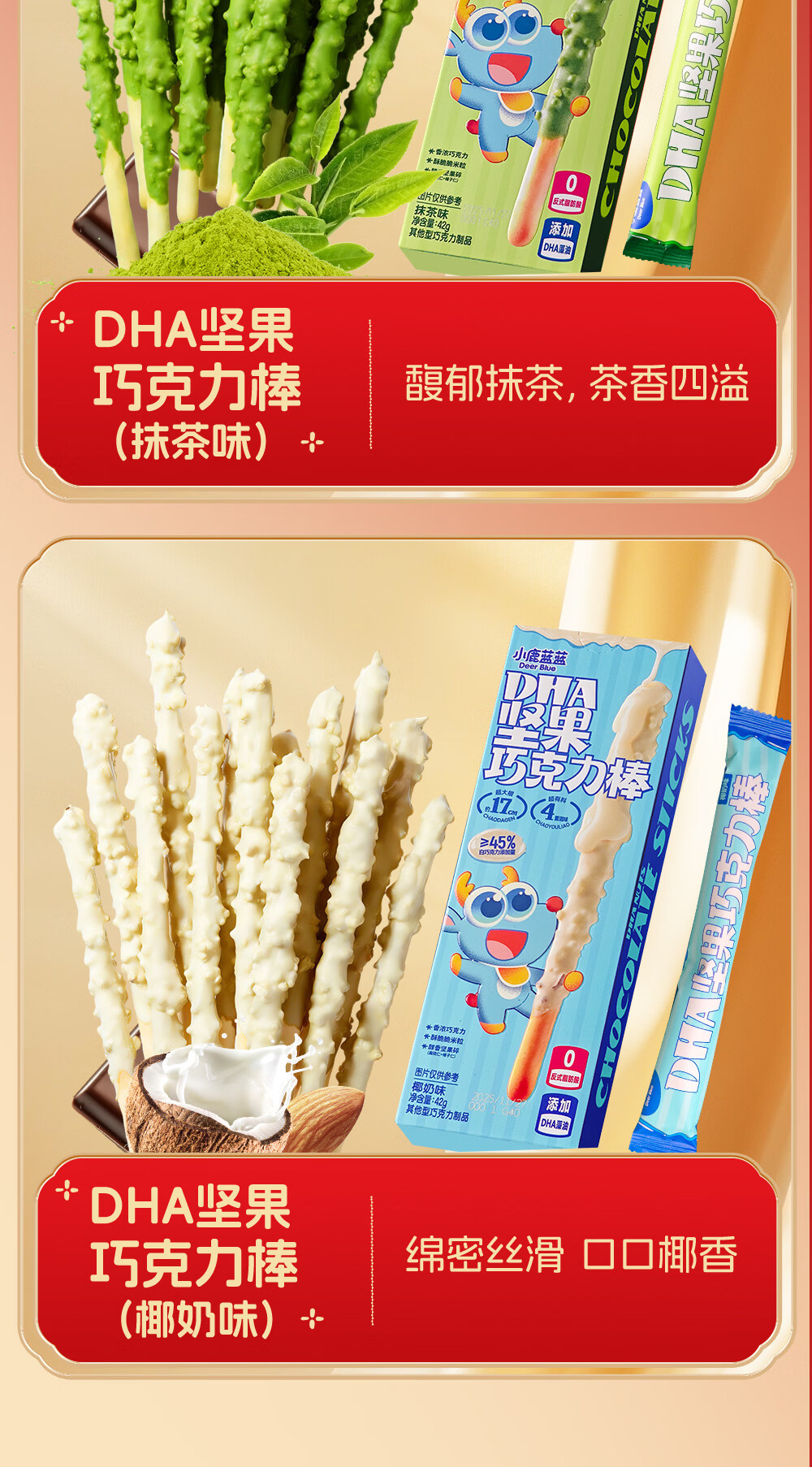 小鹿蓝蓝DHA坚果巧克力棒儿童零食宝宝磨牙炭烧棒无蔗糖棒棒 【1盒|爆款原味】坚果巧克力棒/42g