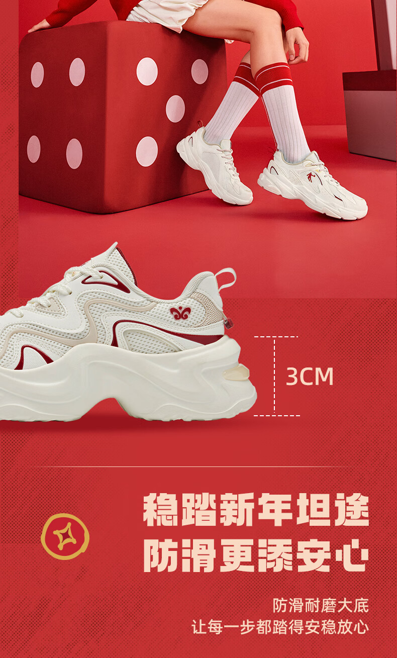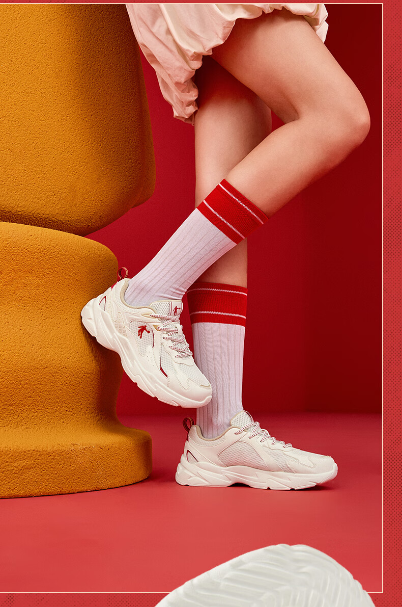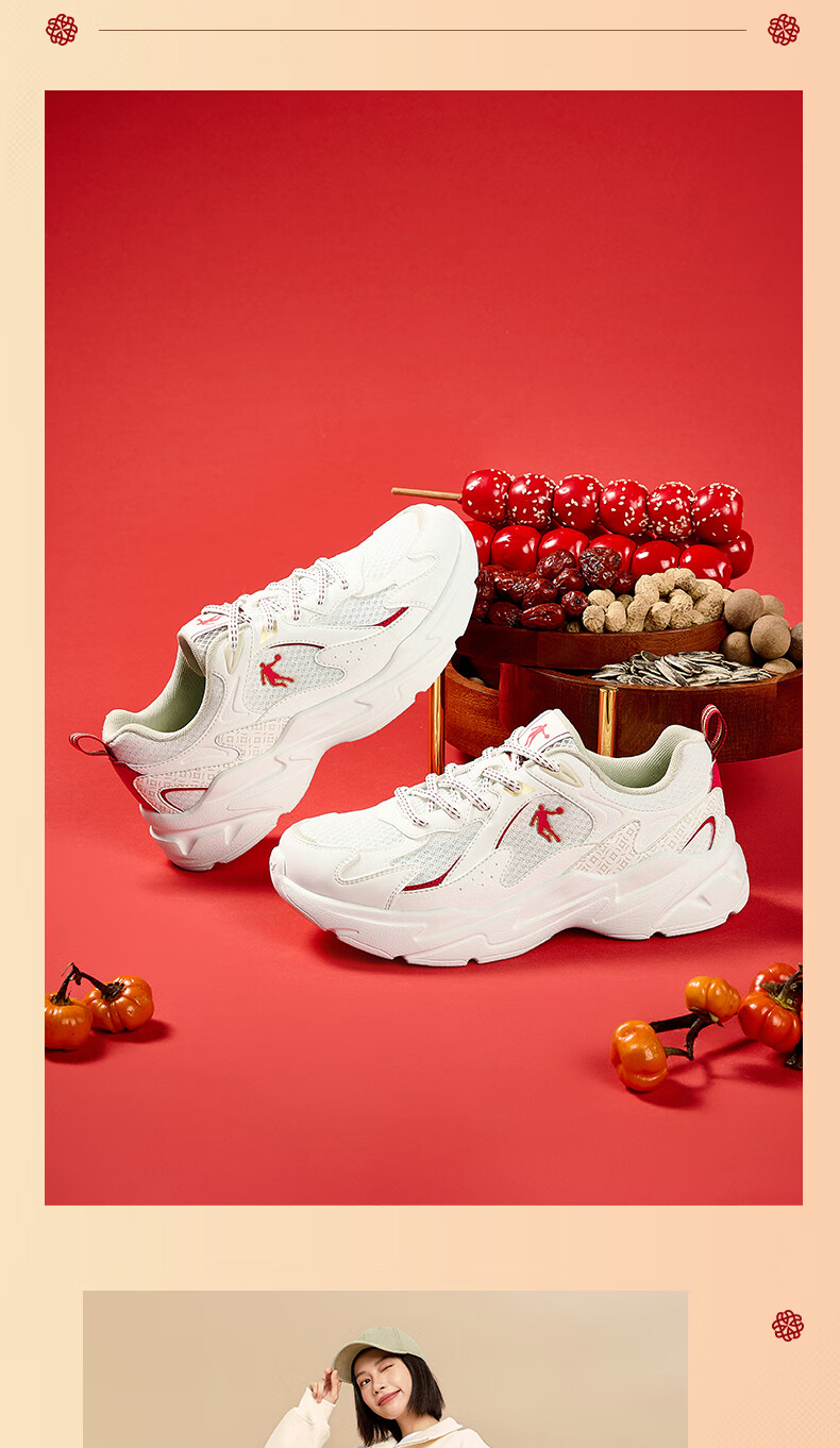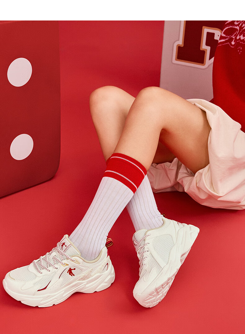 乔丹女休闲鞋骐骥红本命年红色新年密网跑步鞋轻便老爹鞋运动鞋