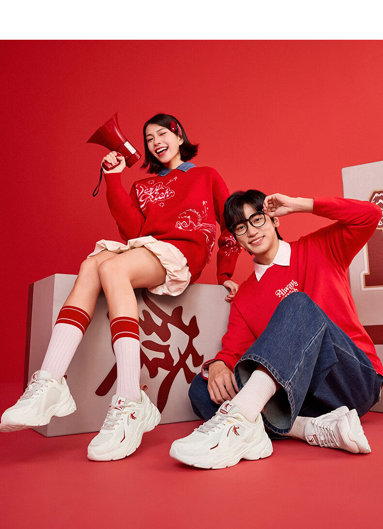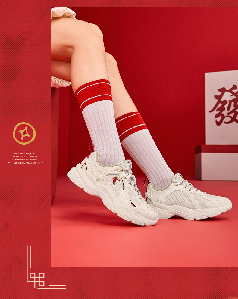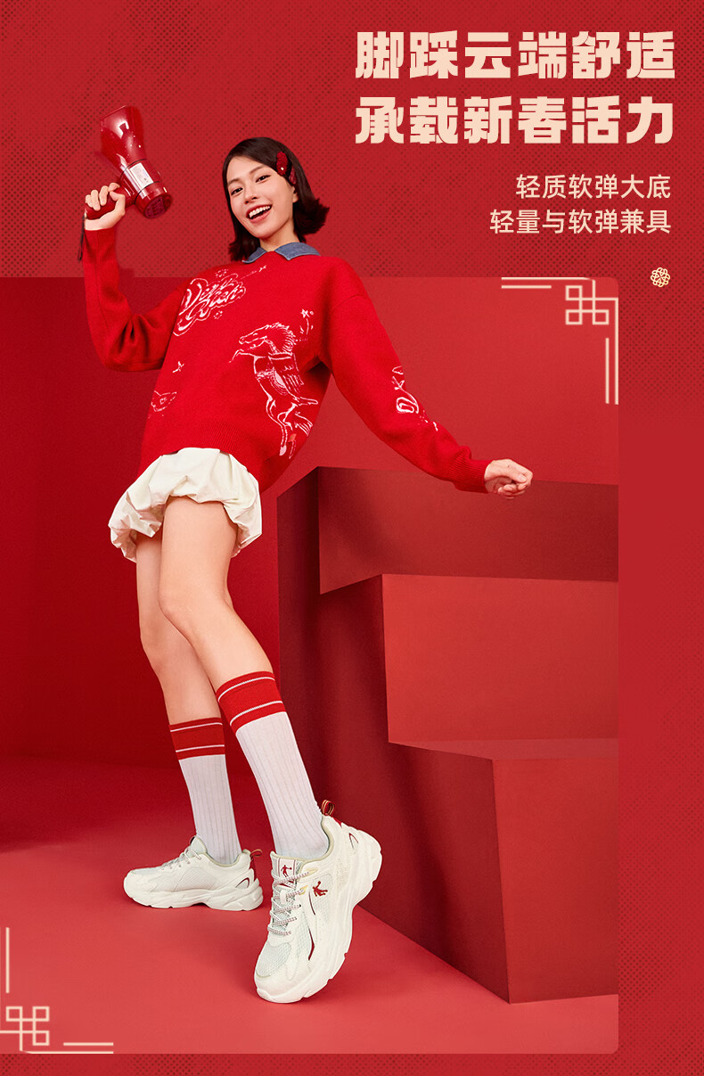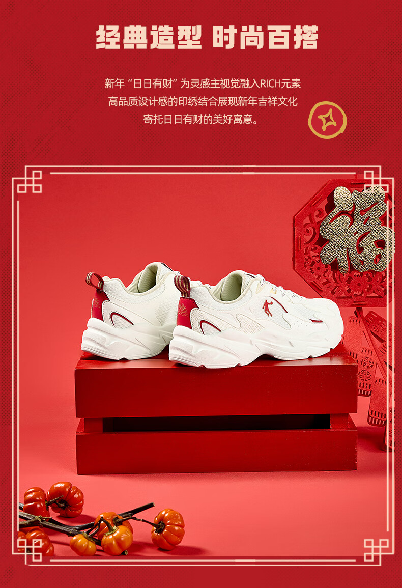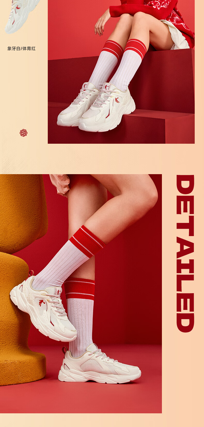 乔丹女休闲鞋骐骥红本命年红色新年密网跑步鞋轻便老爹鞋运动鞋
