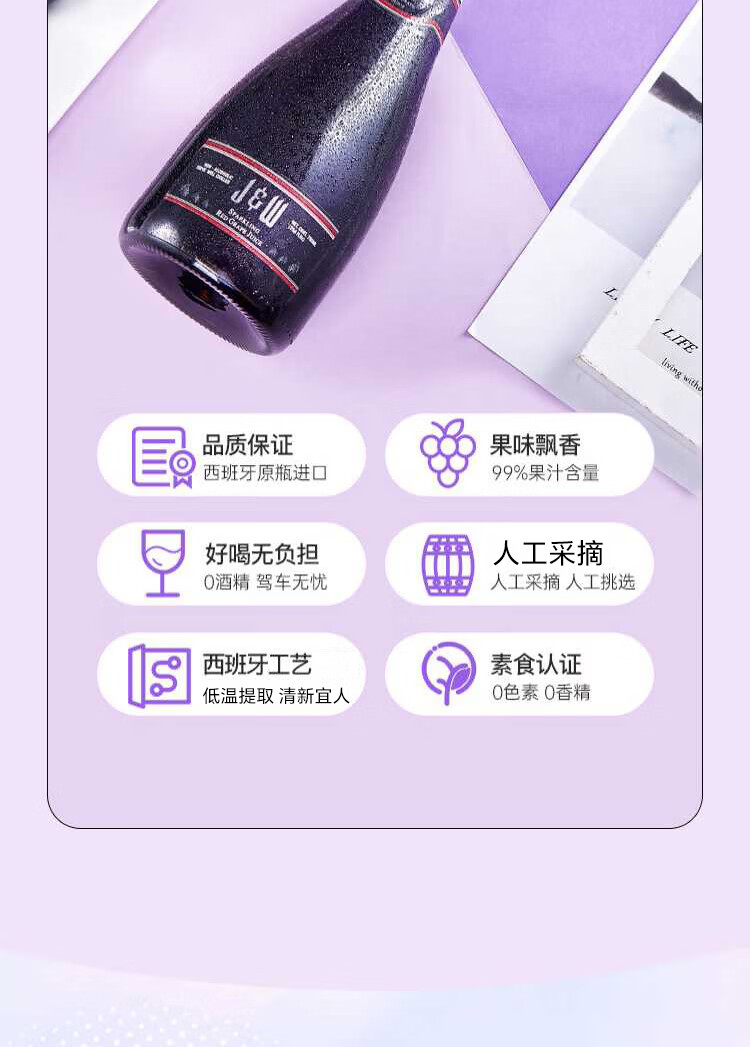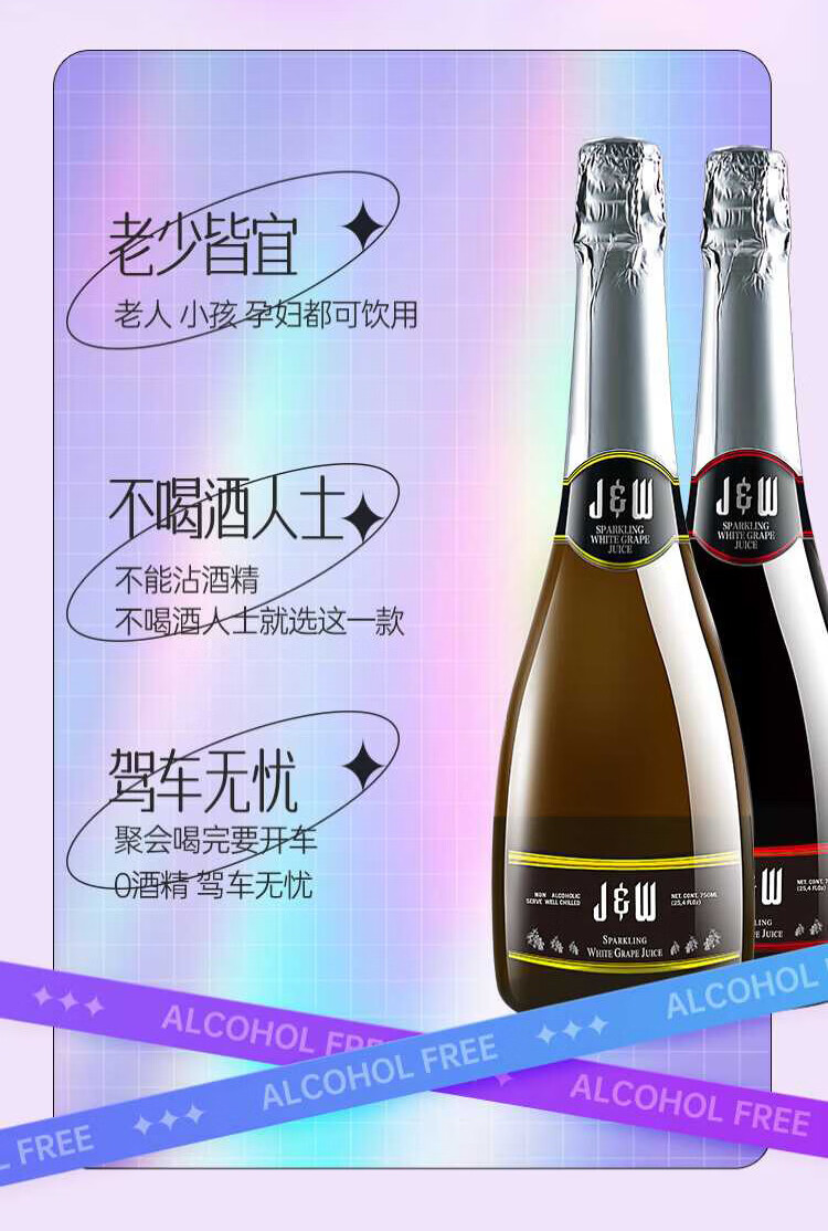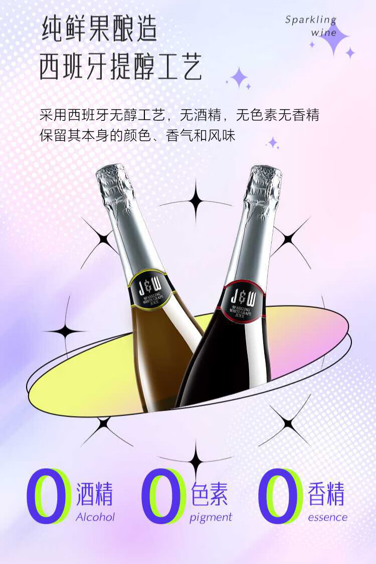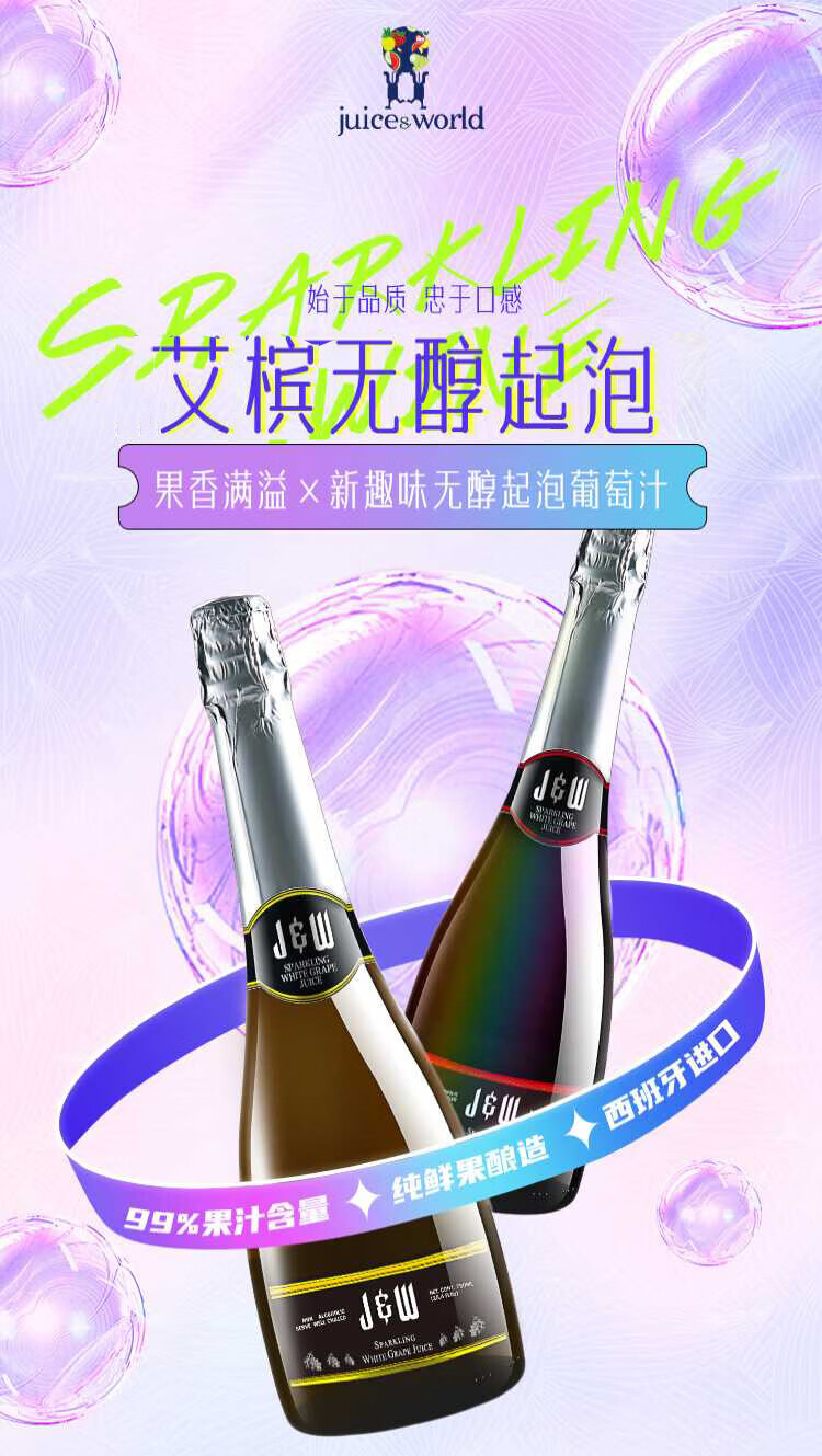 艾加(JW)无醇起泡葡萄汁无酒精西班牙原瓶进口0度气泡年货送礼热门商品 99%果汁含量艾槟无醇红6*750ml