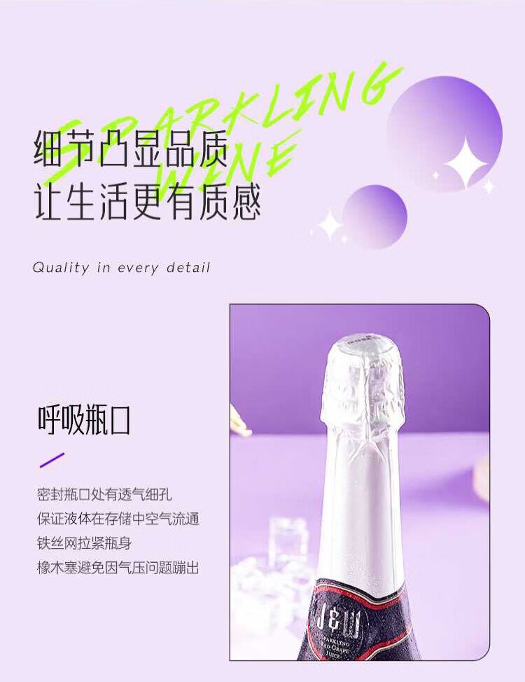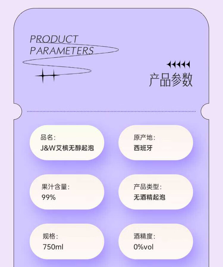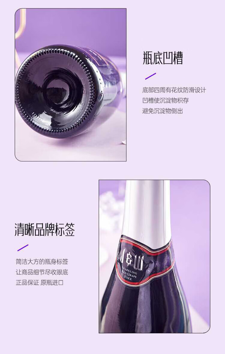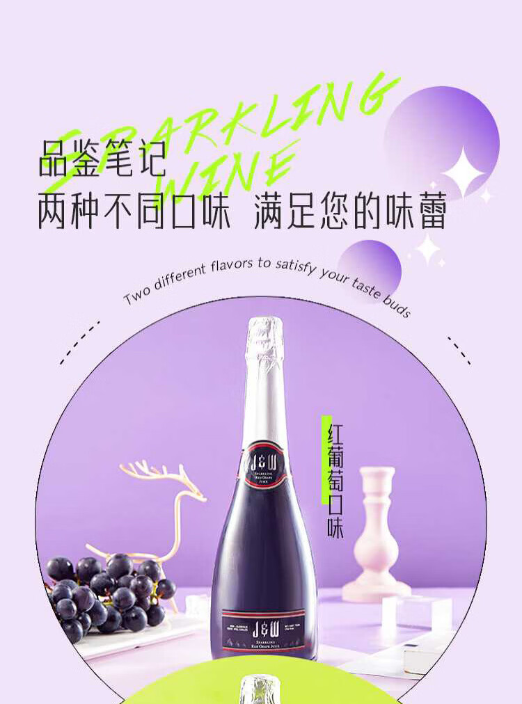 艾加(JW)无醇起泡葡萄汁无酒精西班牙原瓶进口0度气泡年货送礼热门商品 99%果汁含量艾槟无醇红6*750ml