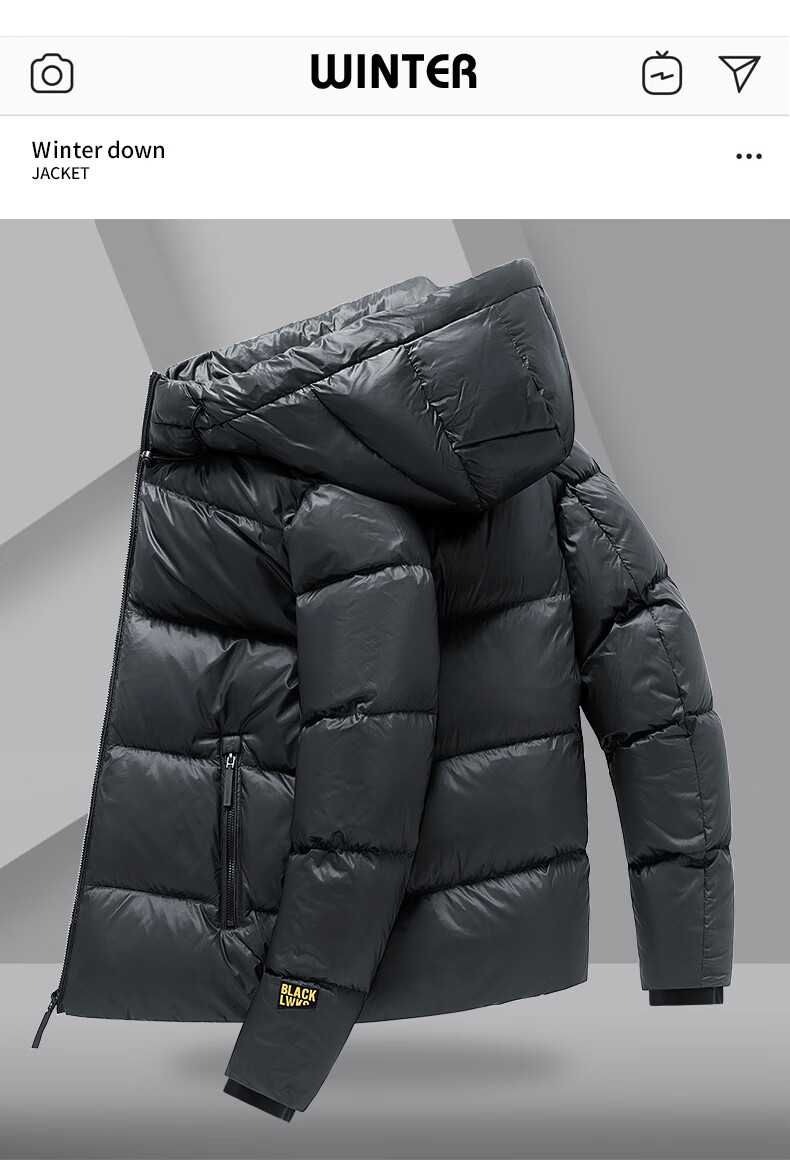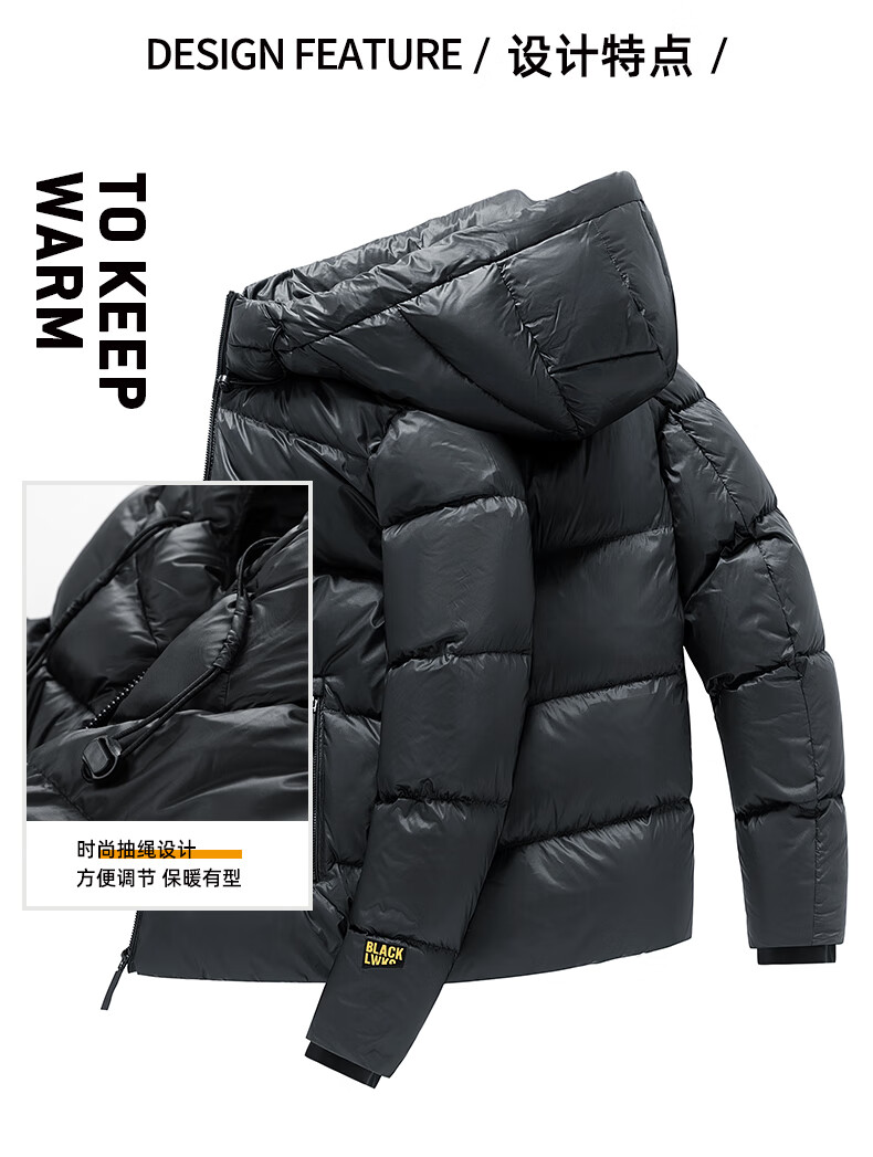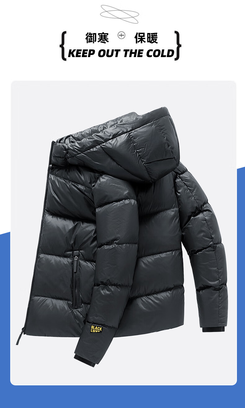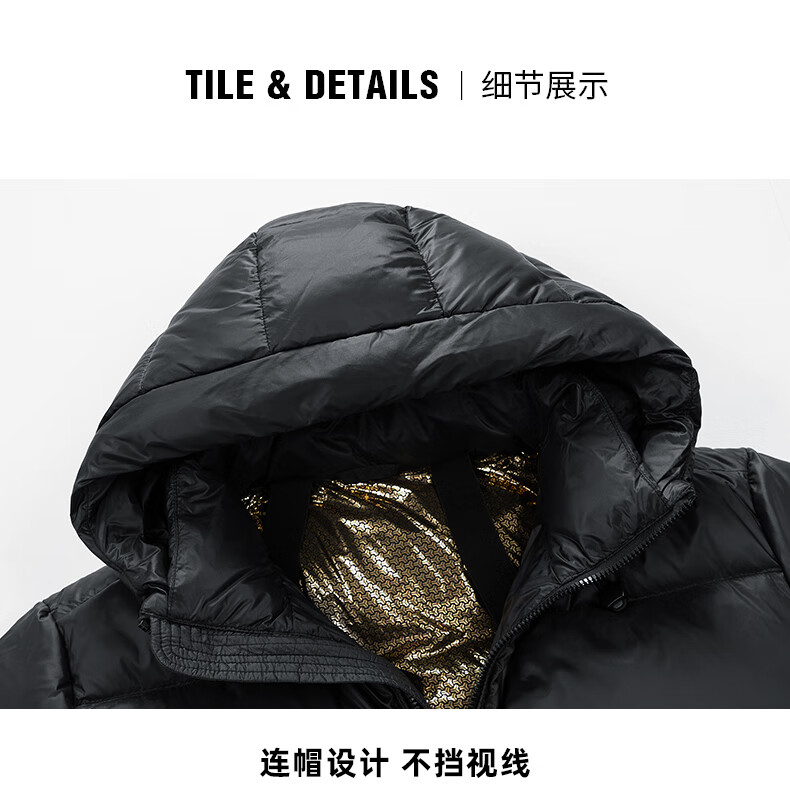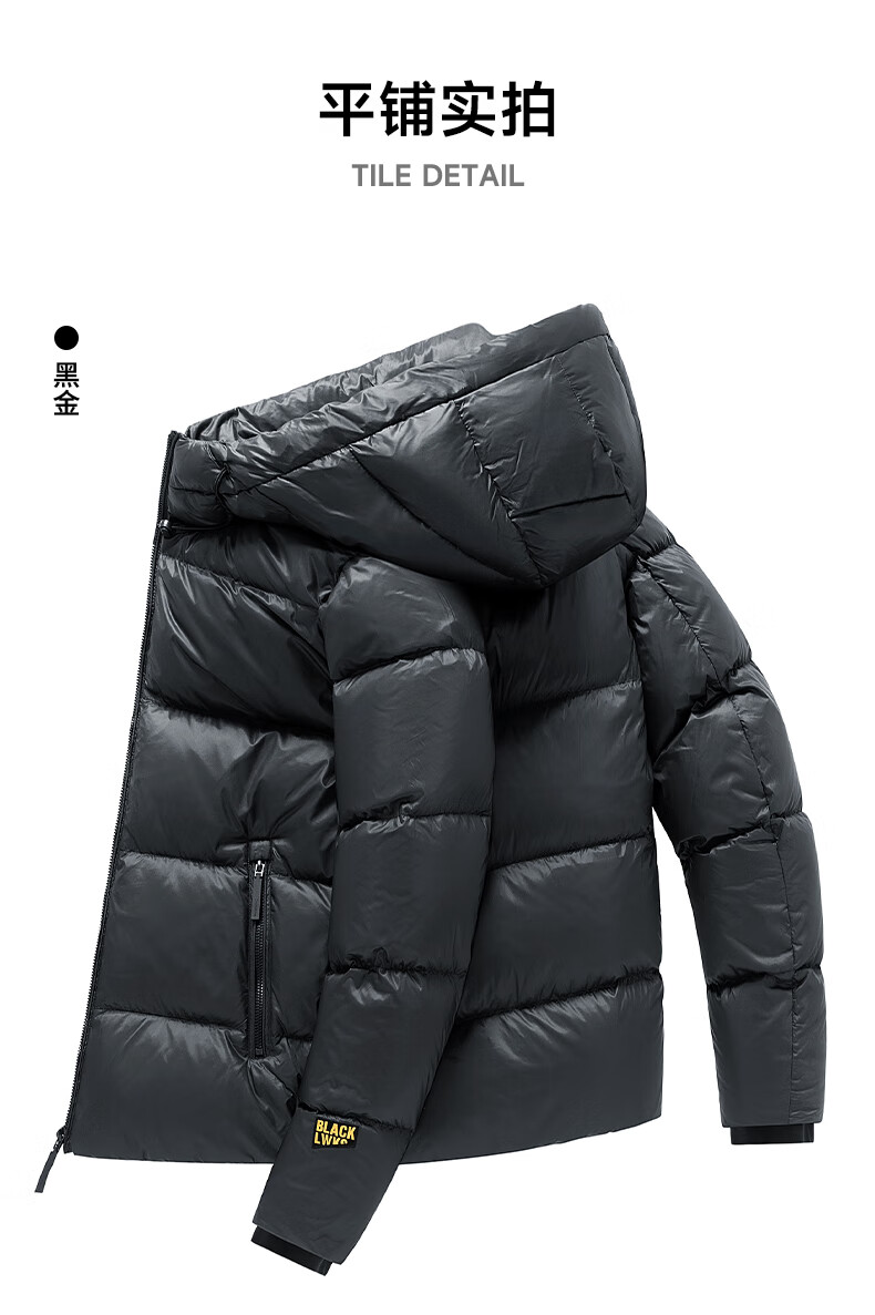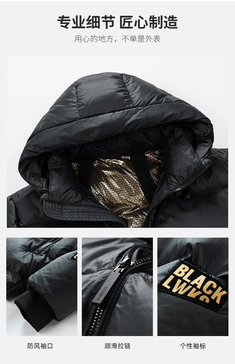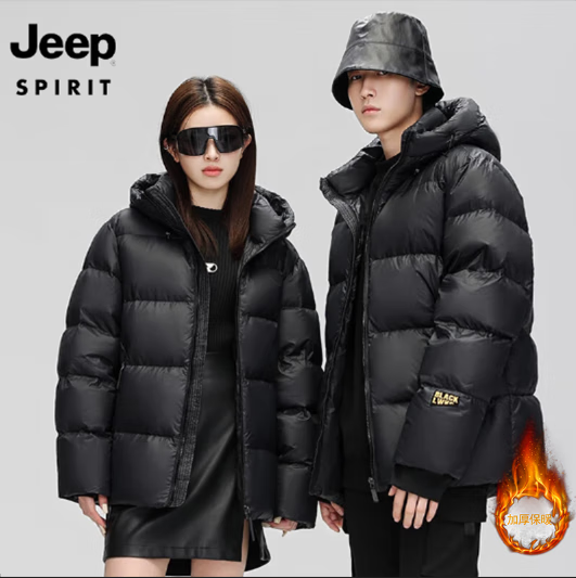 JEEP SPIRIT吉普 外套冬季男女同款白鸭绒简约保暖御寒黑金防寒服外套上衣 黑金 XL