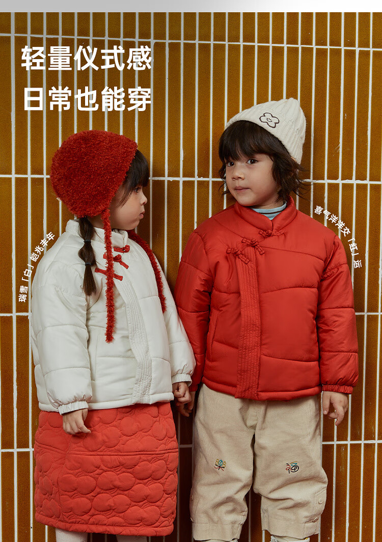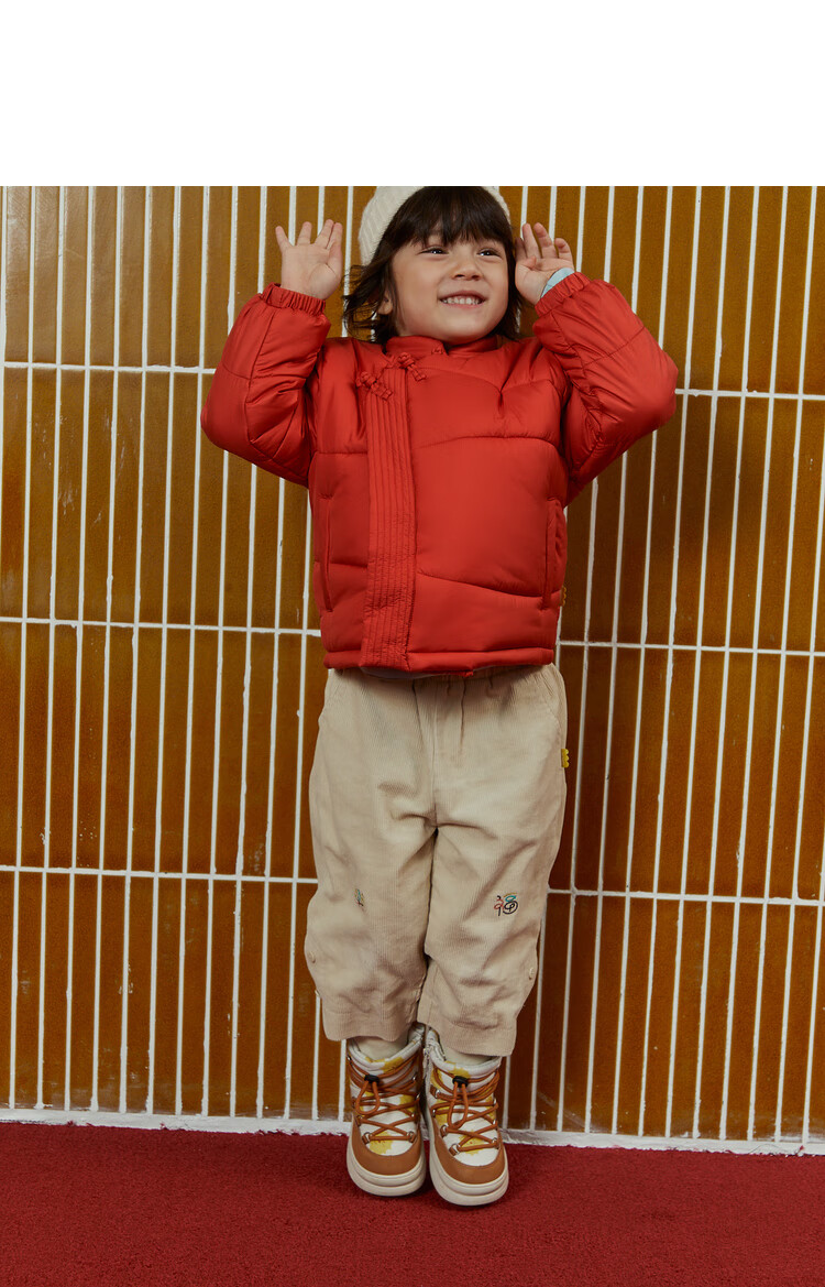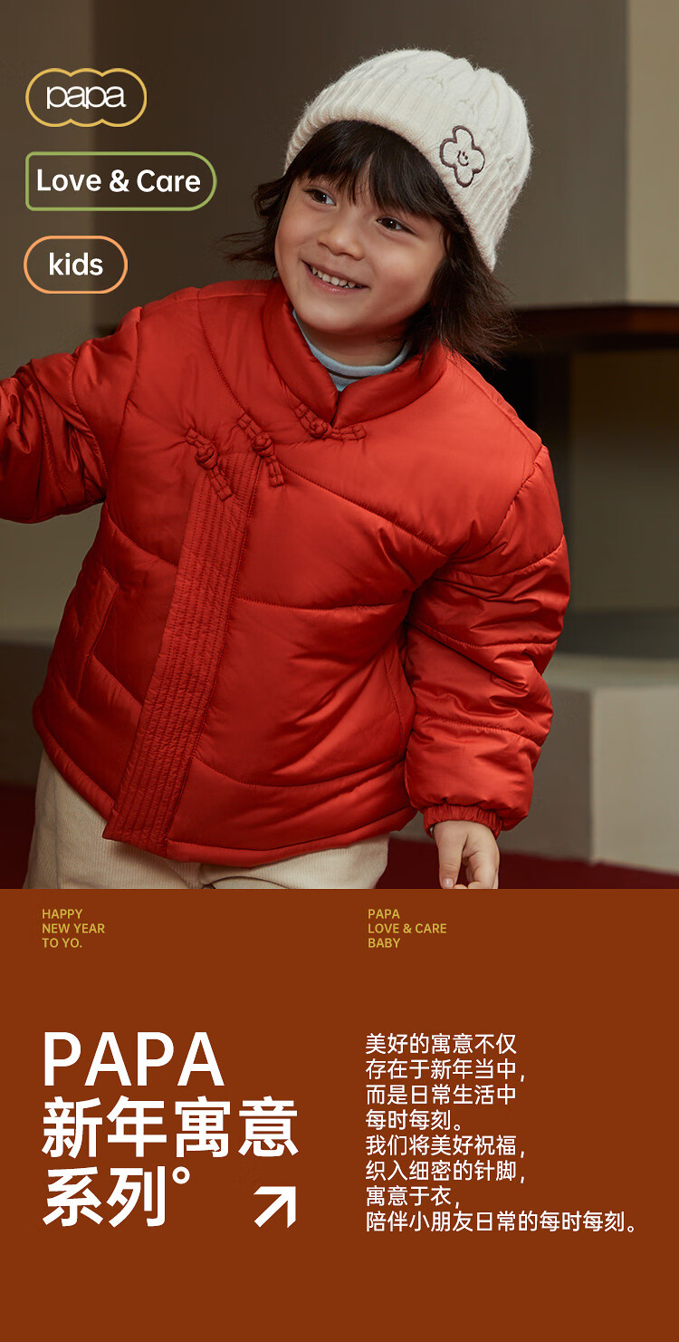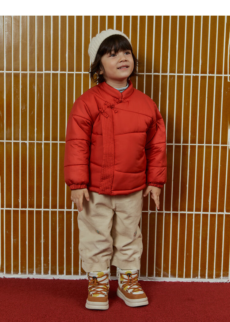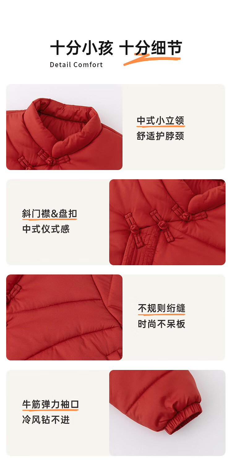 papa爬爬冬季儿童棉服男女童新中式过年上衣喜庆洋气新年宝宝年服 红色 120