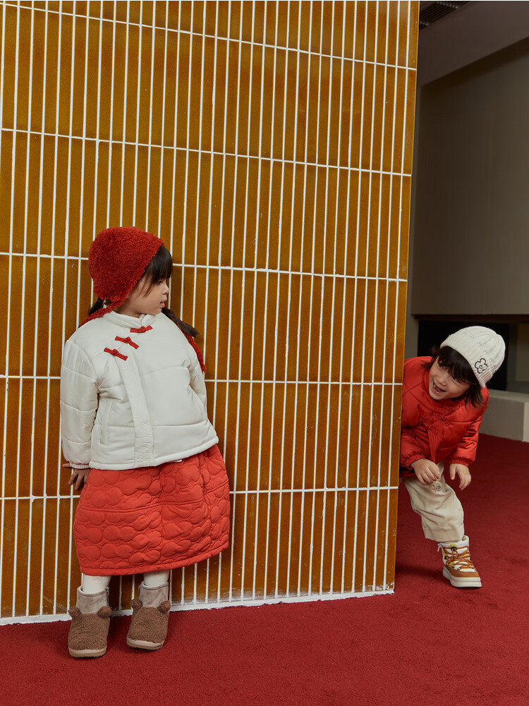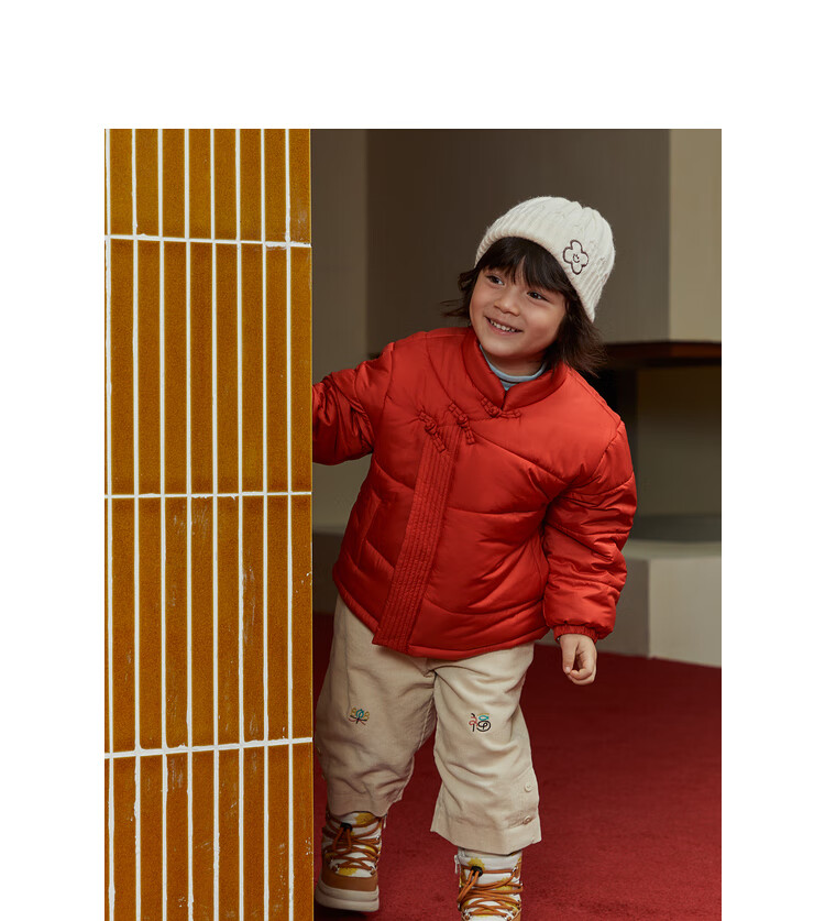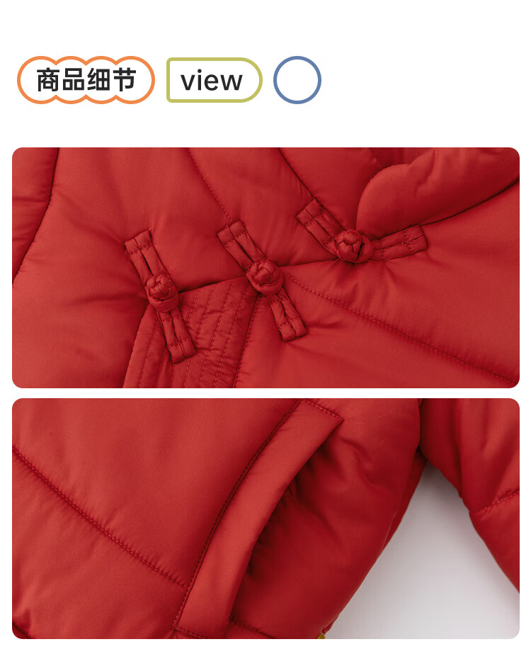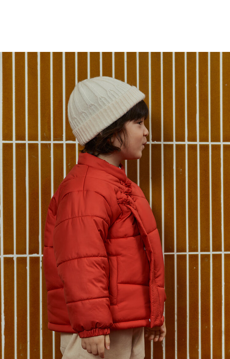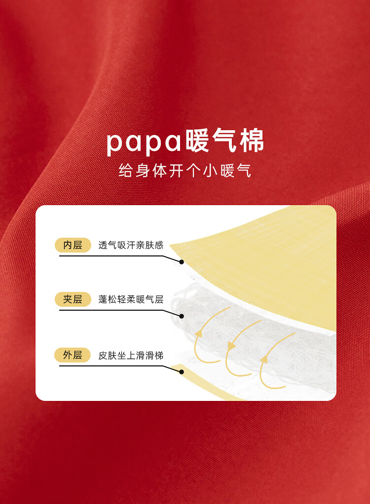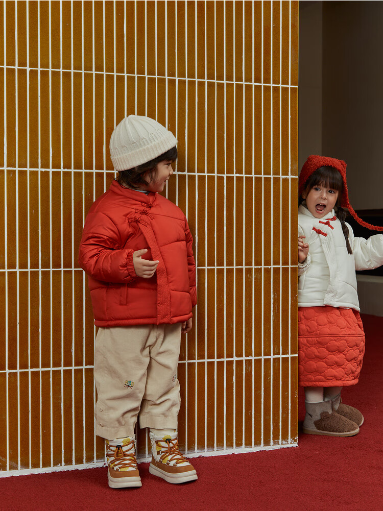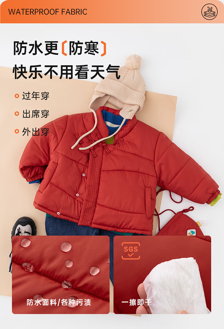 papa爬爬冬季儿童棉服男女童新中式过年上衣喜庆洋气新年宝宝年服 红色 120