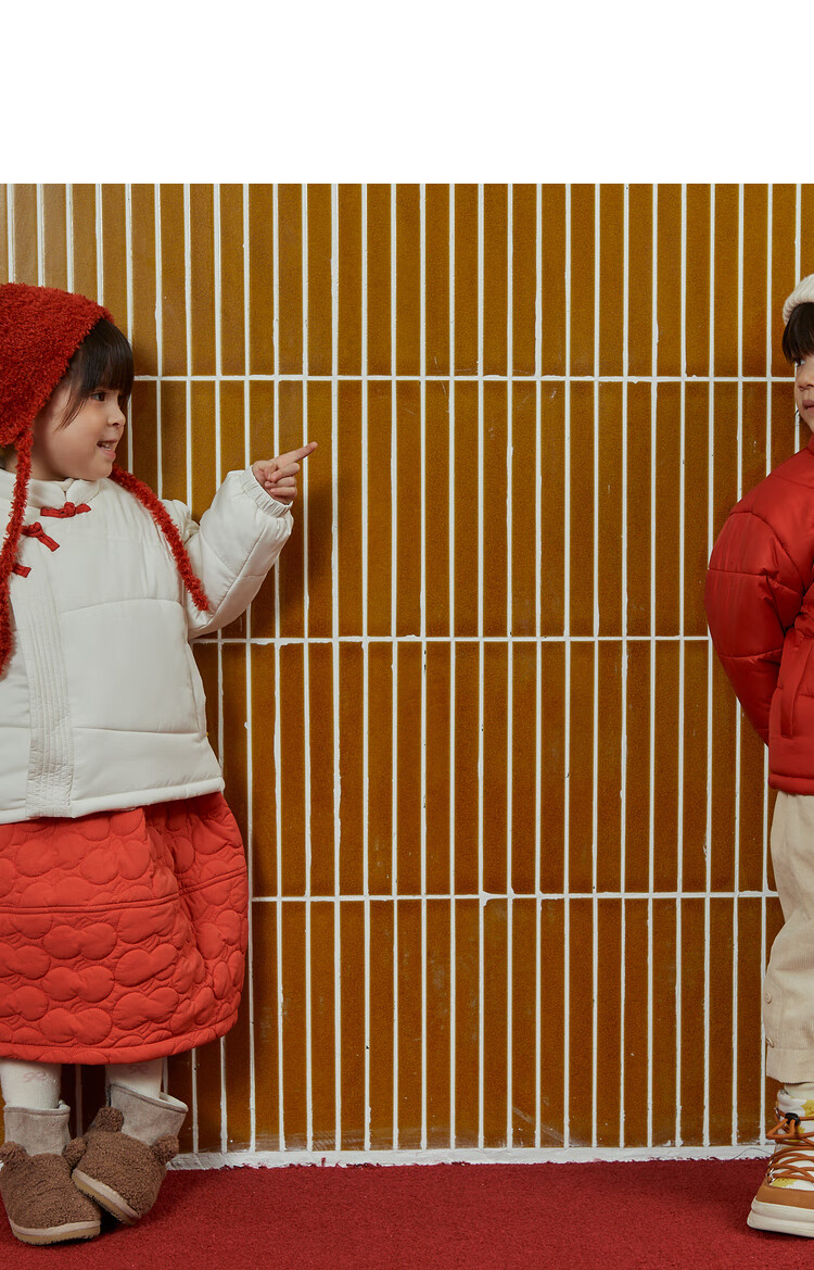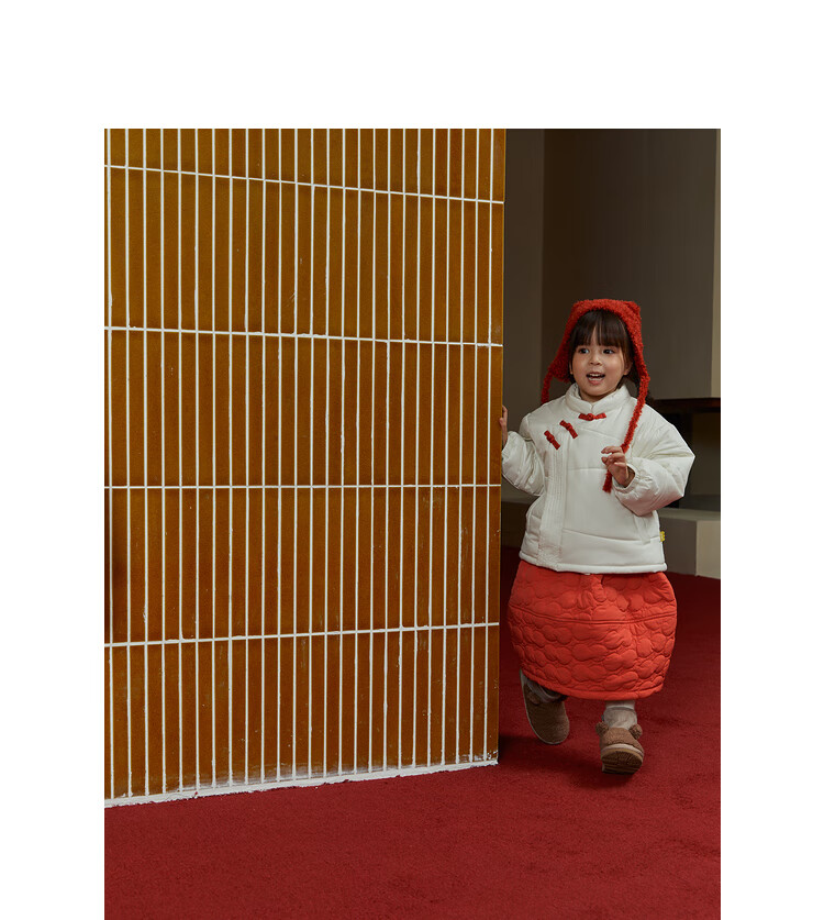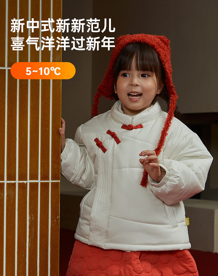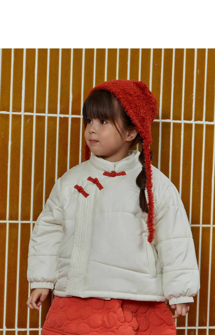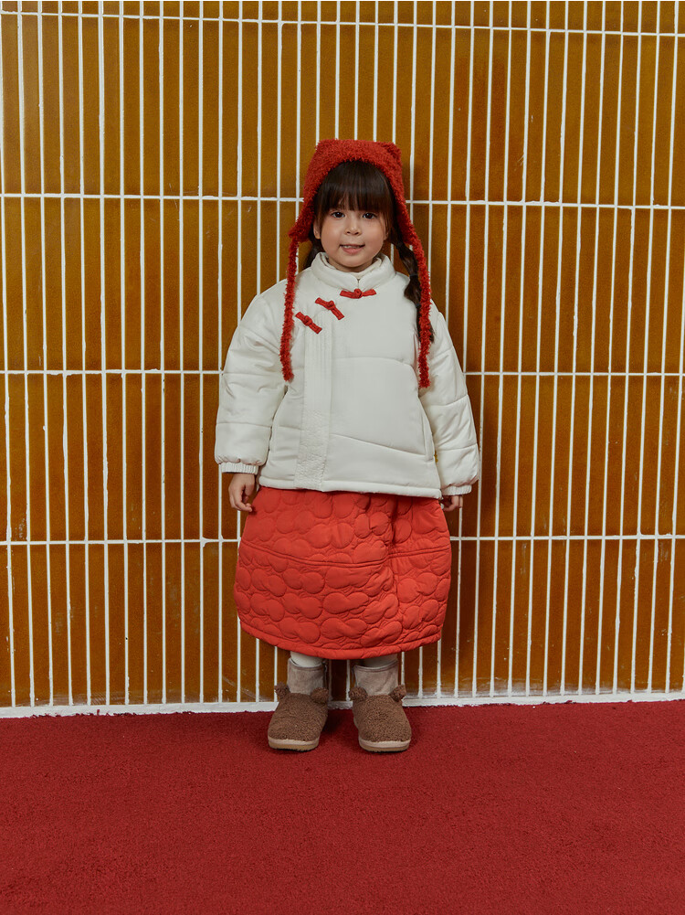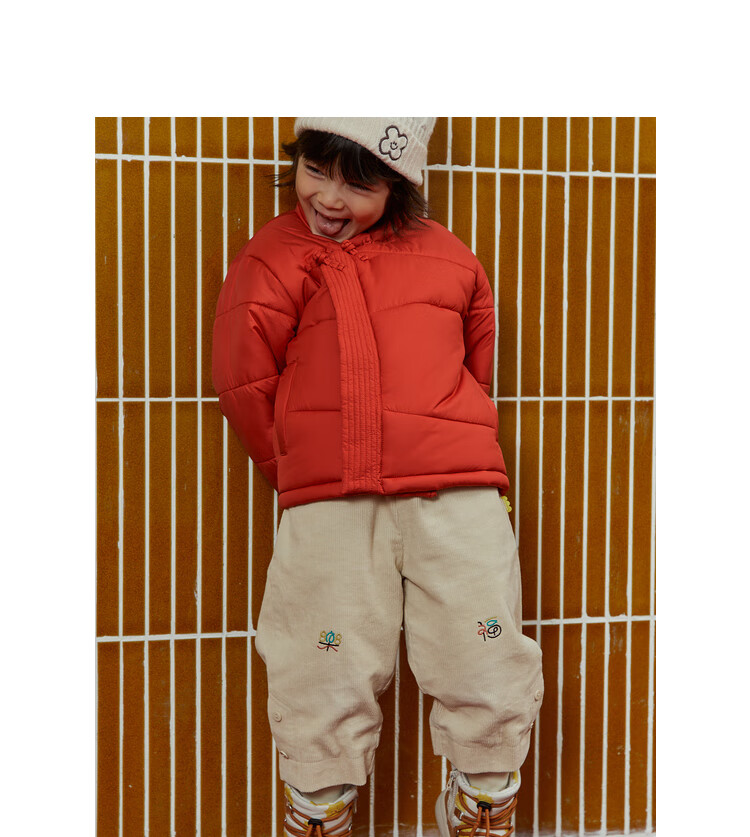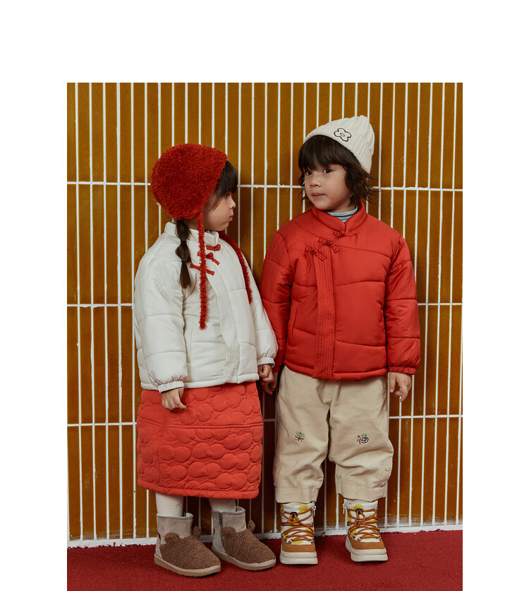 papa爬爬冬季儿童棉服男女童新中式过年上衣喜庆洋气新年宝宝年服 红色 120