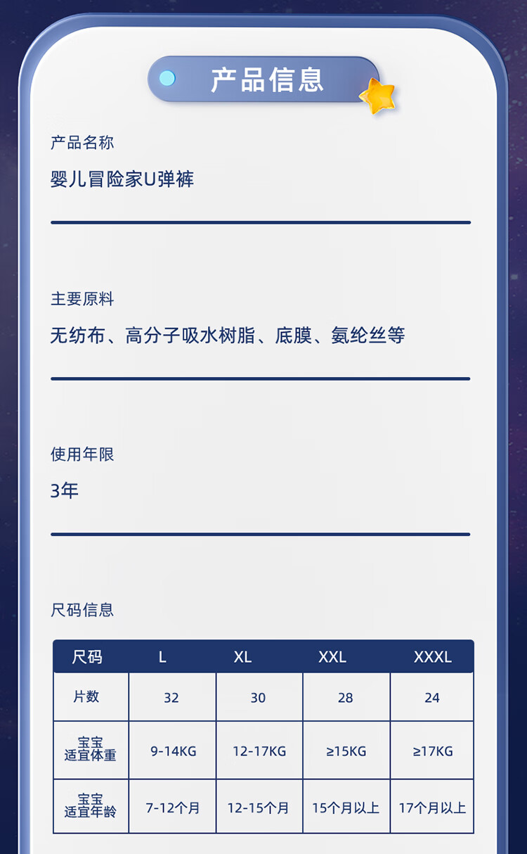 十月结晶小小冒险家拉拉裤超薄干爽大码尿不湿试用装XL6片