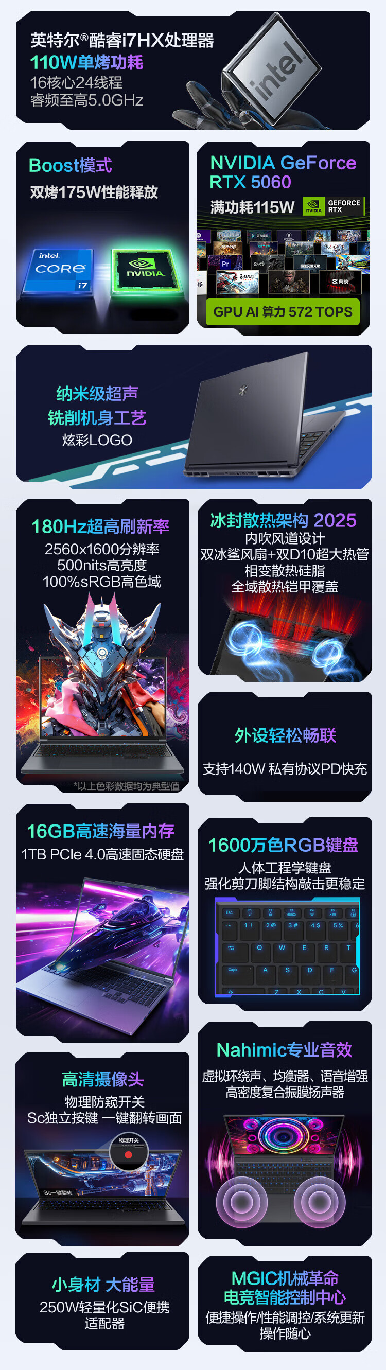 机械革命【国家补贴】极光X 酷睿i7HX 游戏本笔记本电脑(i7-13700HX 16G 1T RTX5060 2.5K屏 180Hz 灰)