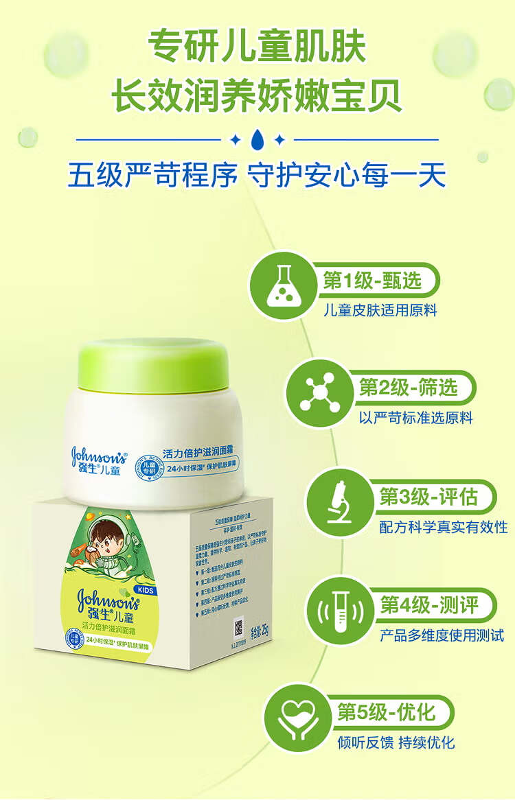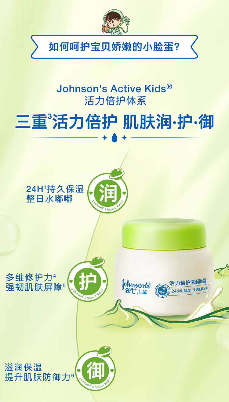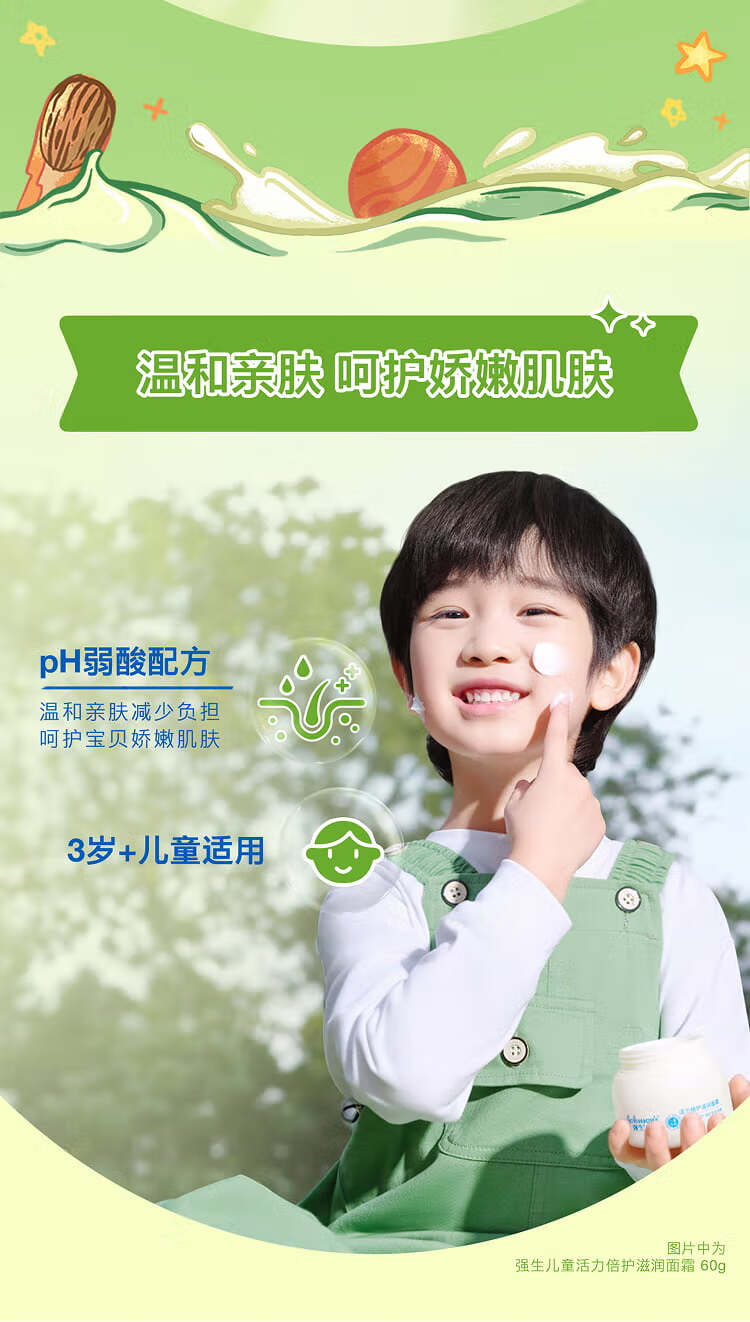 强生(Johnson)儿童牛油果面霜61.8*2 青少年3-6-12岁滋润保湿秋冬补水新年礼物