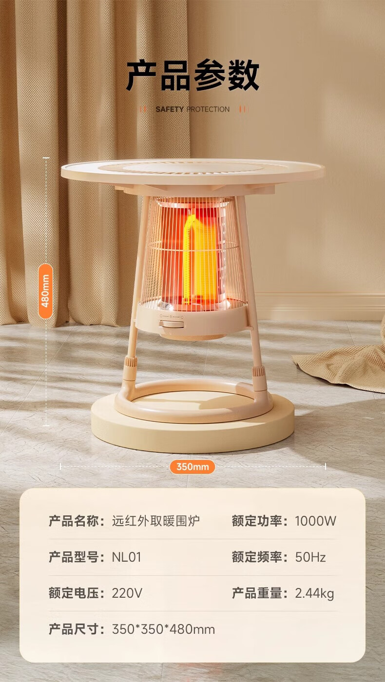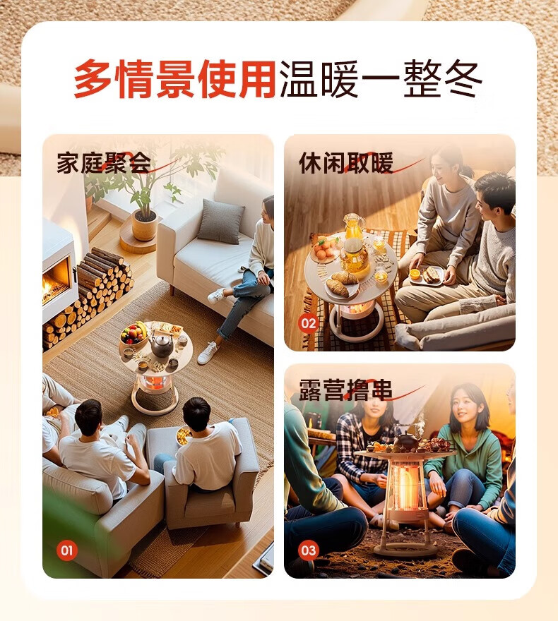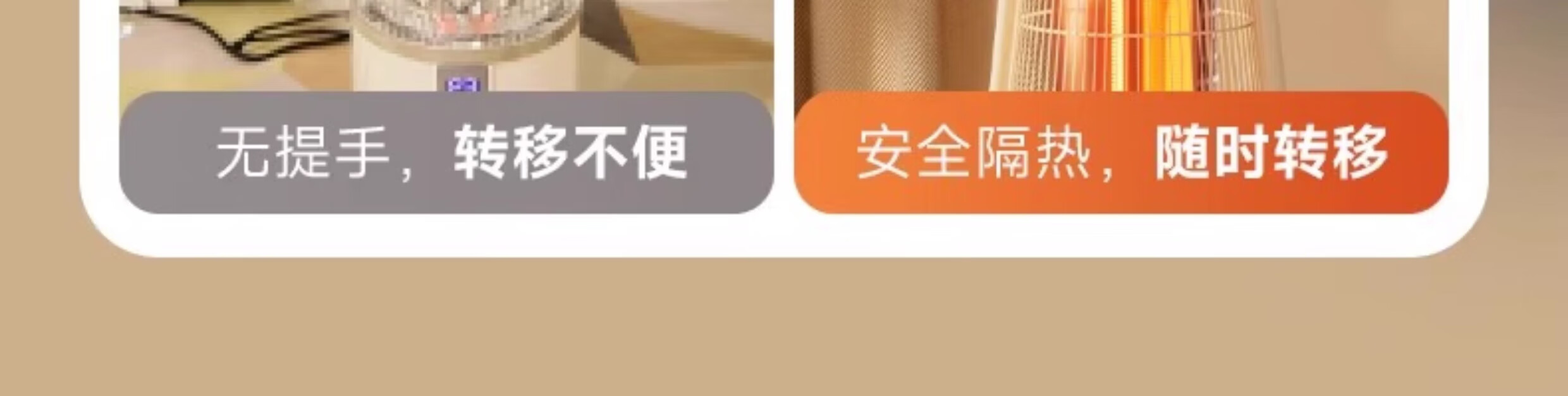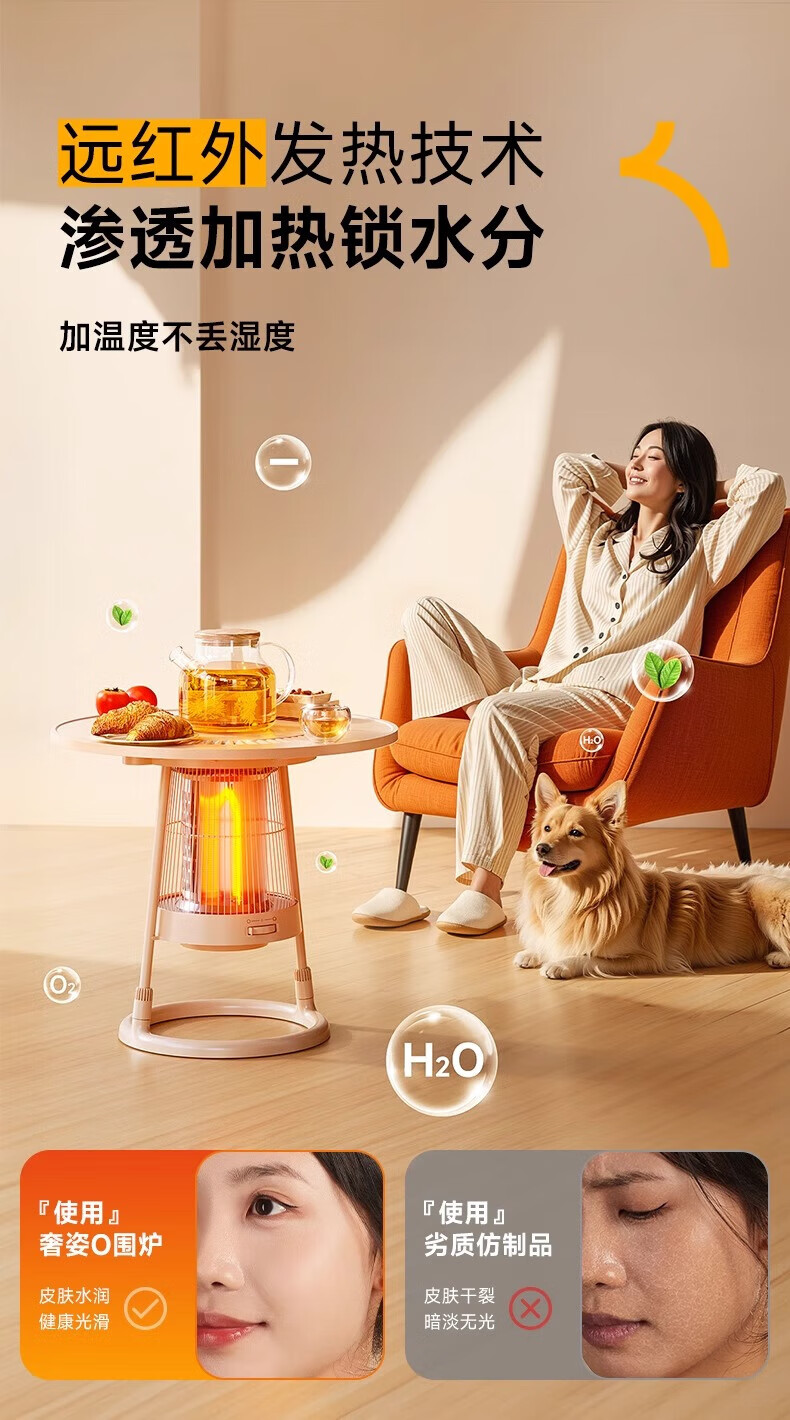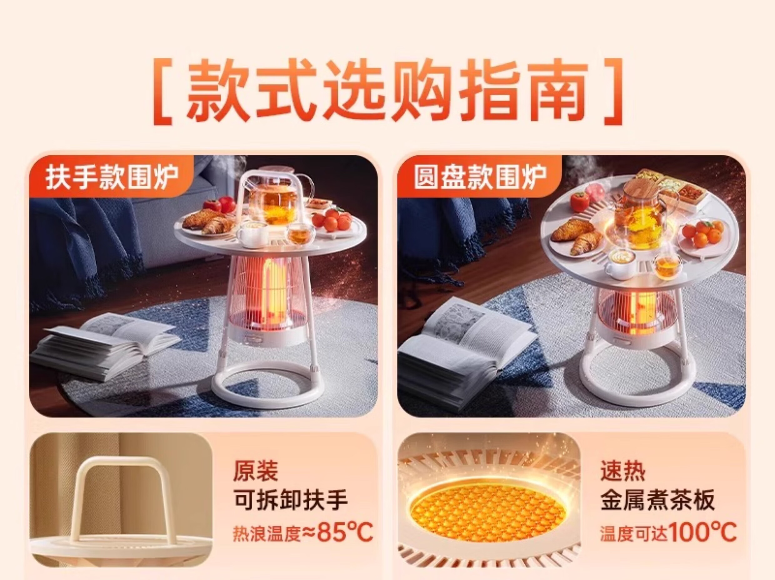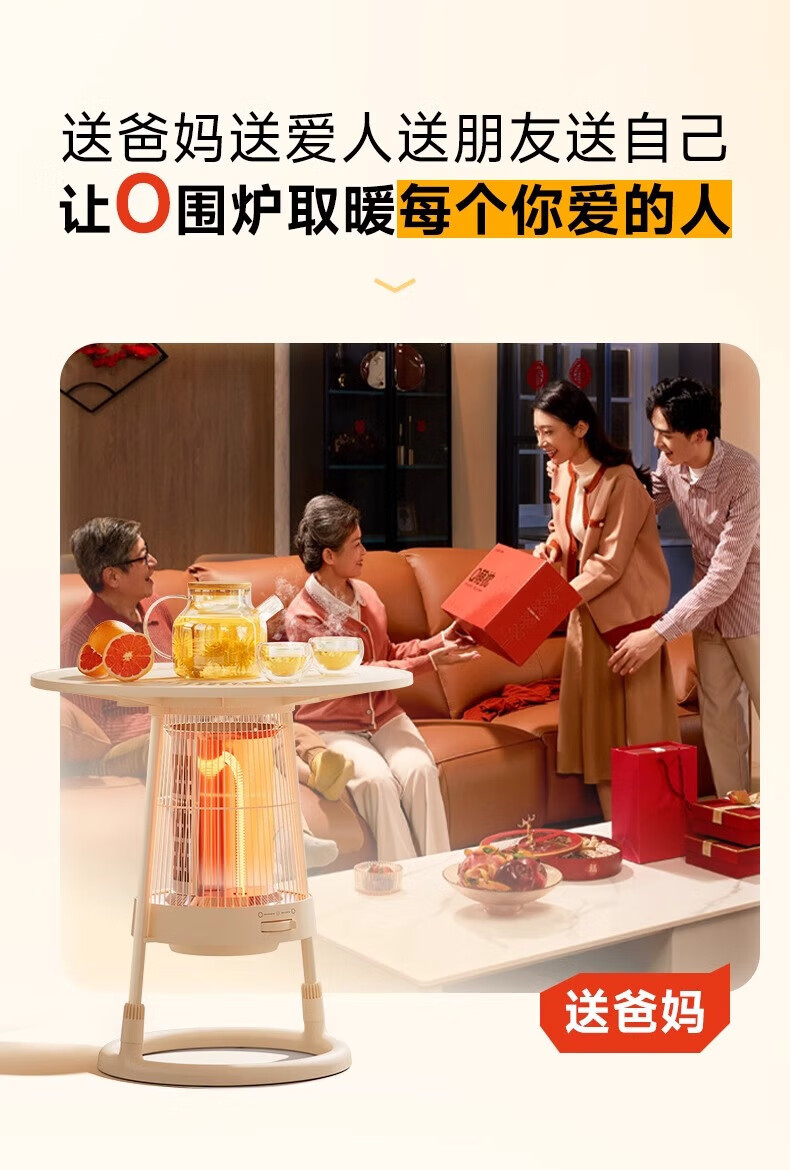 奢姿【50平全屋升温】围炉煮茶电热取暖器大面积电暖取暖神器家用烤火炉客厅小太阳室内电烤茶炉 防烫提手款丨围炉煮茶1000W