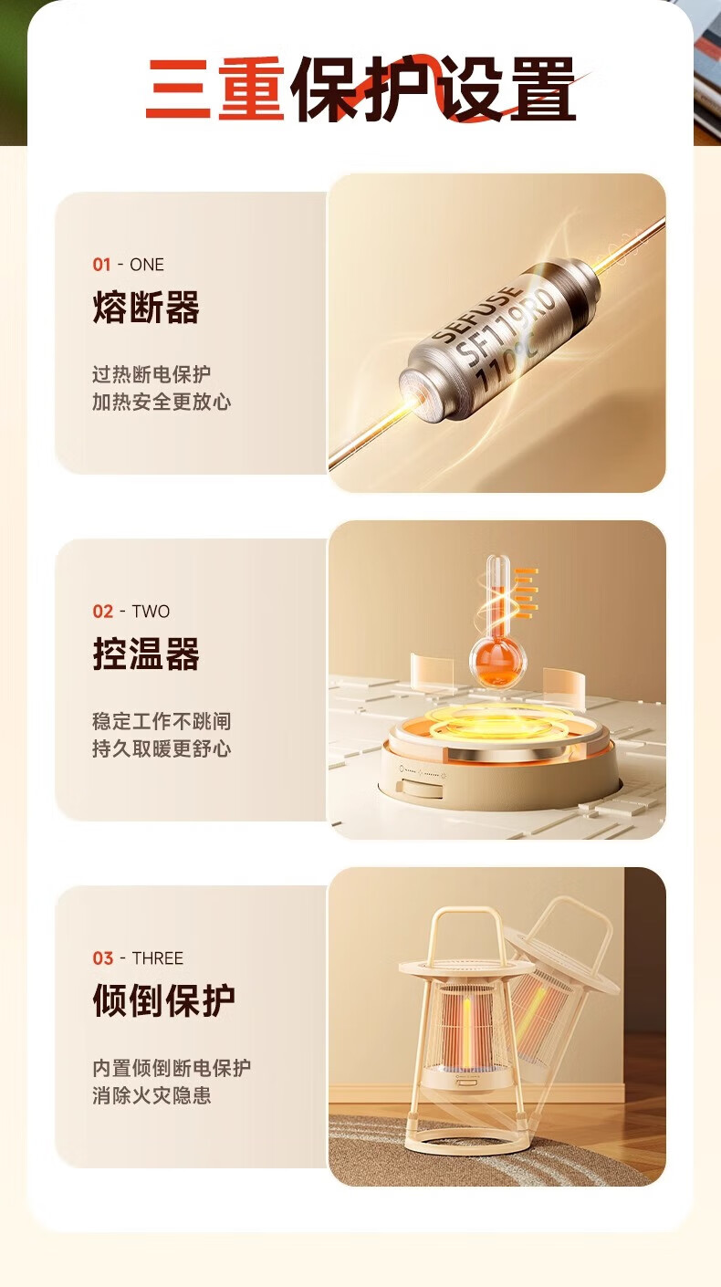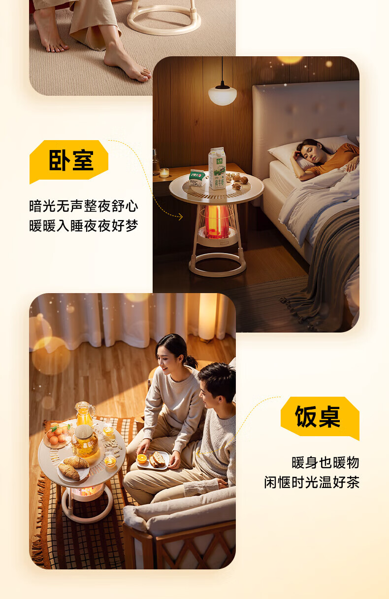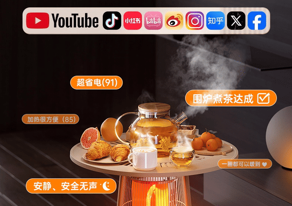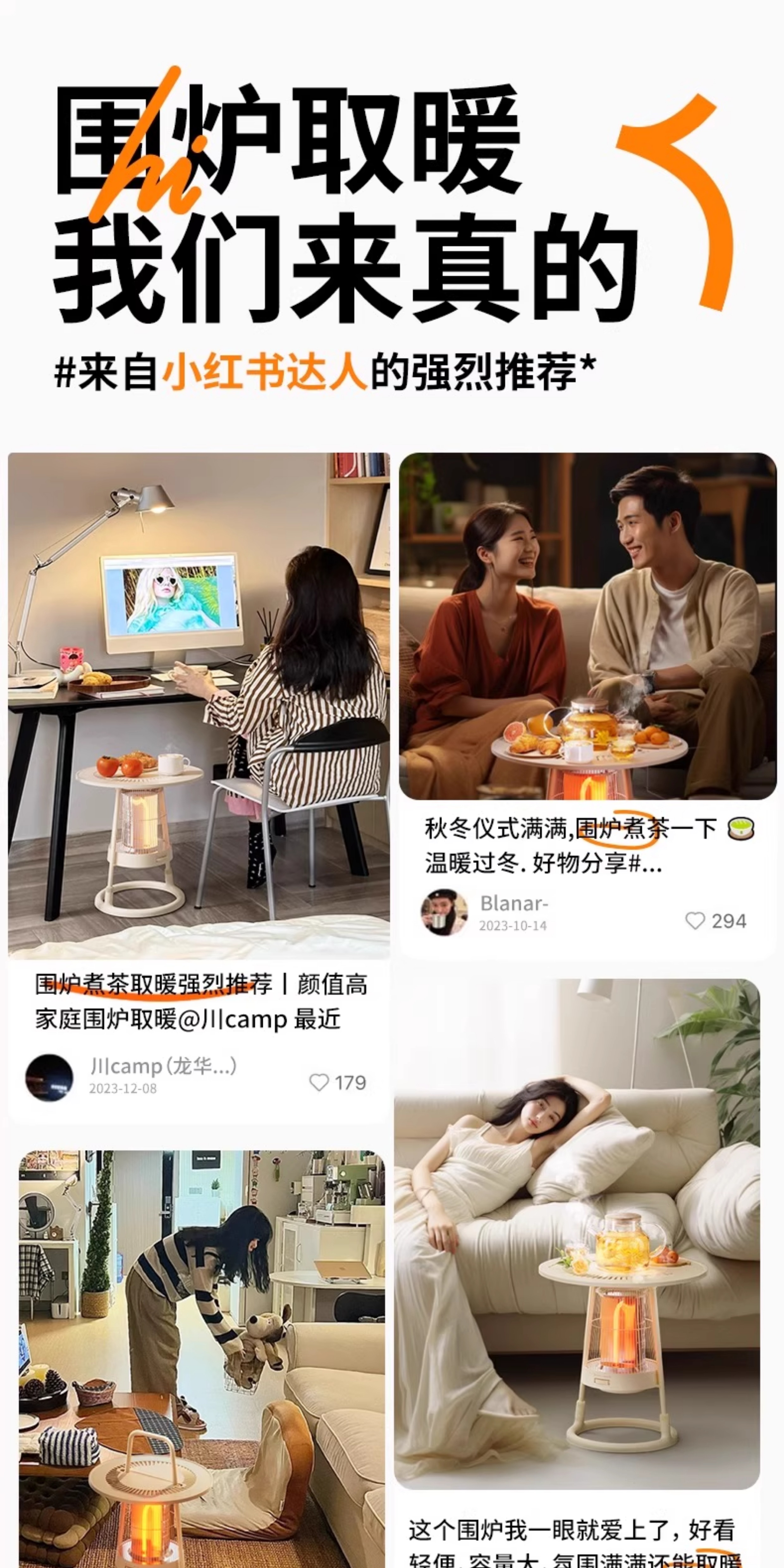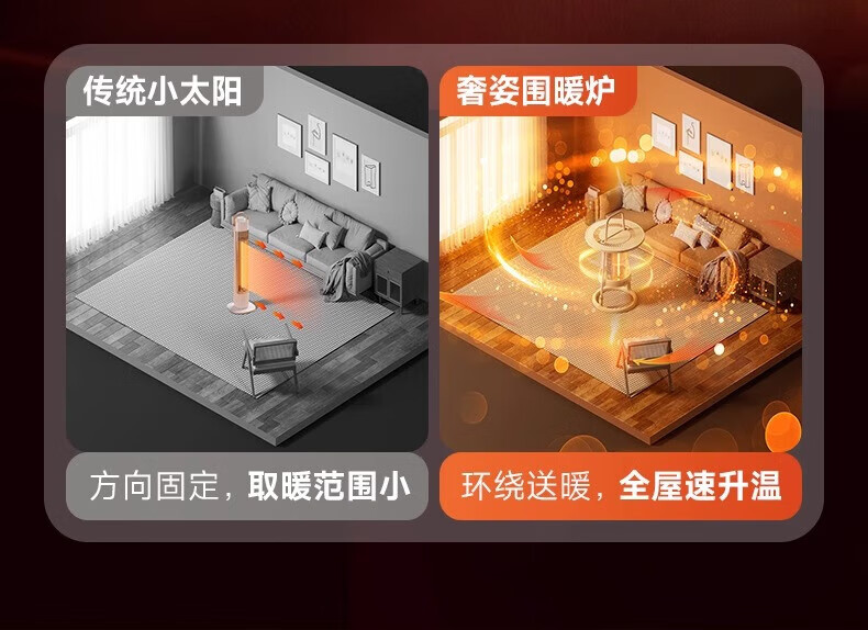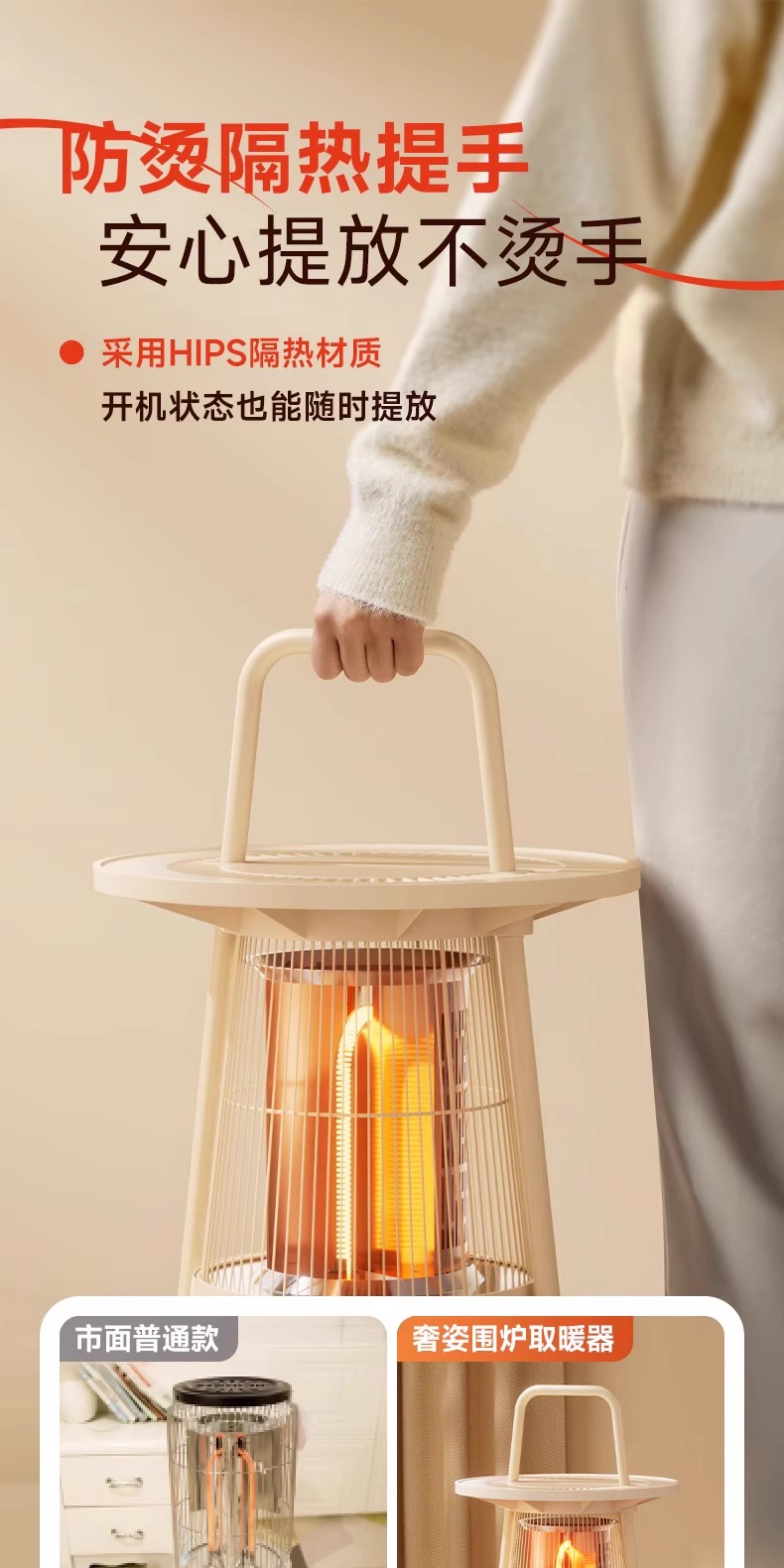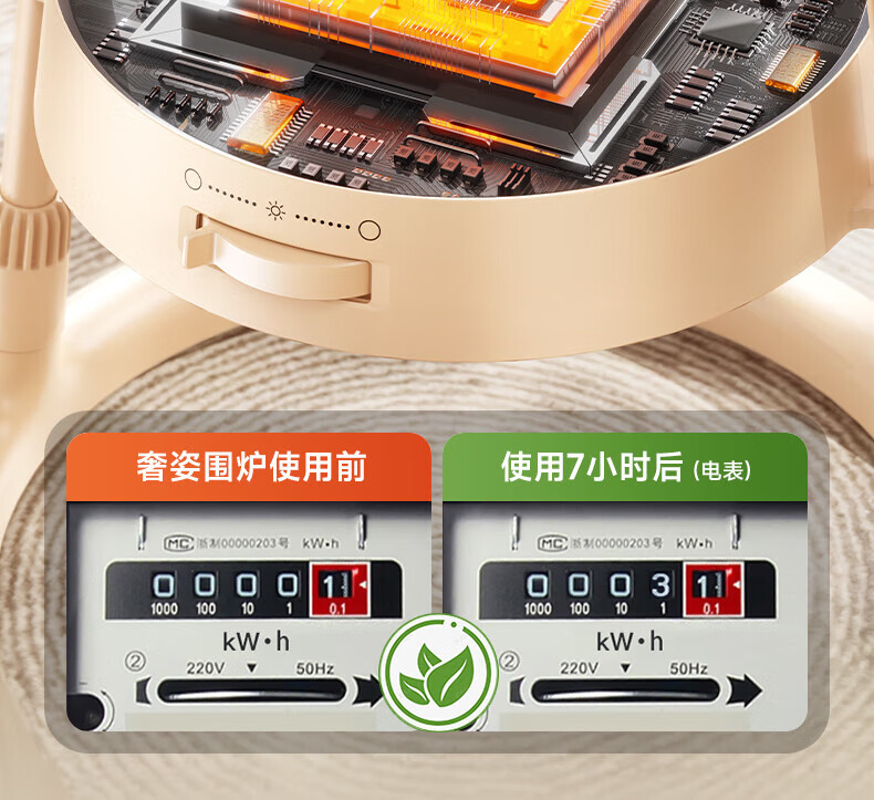 奢姿【50平全屋升温】围炉煮茶电热取暖器大面积电暖取暖神器家用烤火炉客厅小太阳室内电烤茶炉 防烫提手款丨围炉煮茶1000W