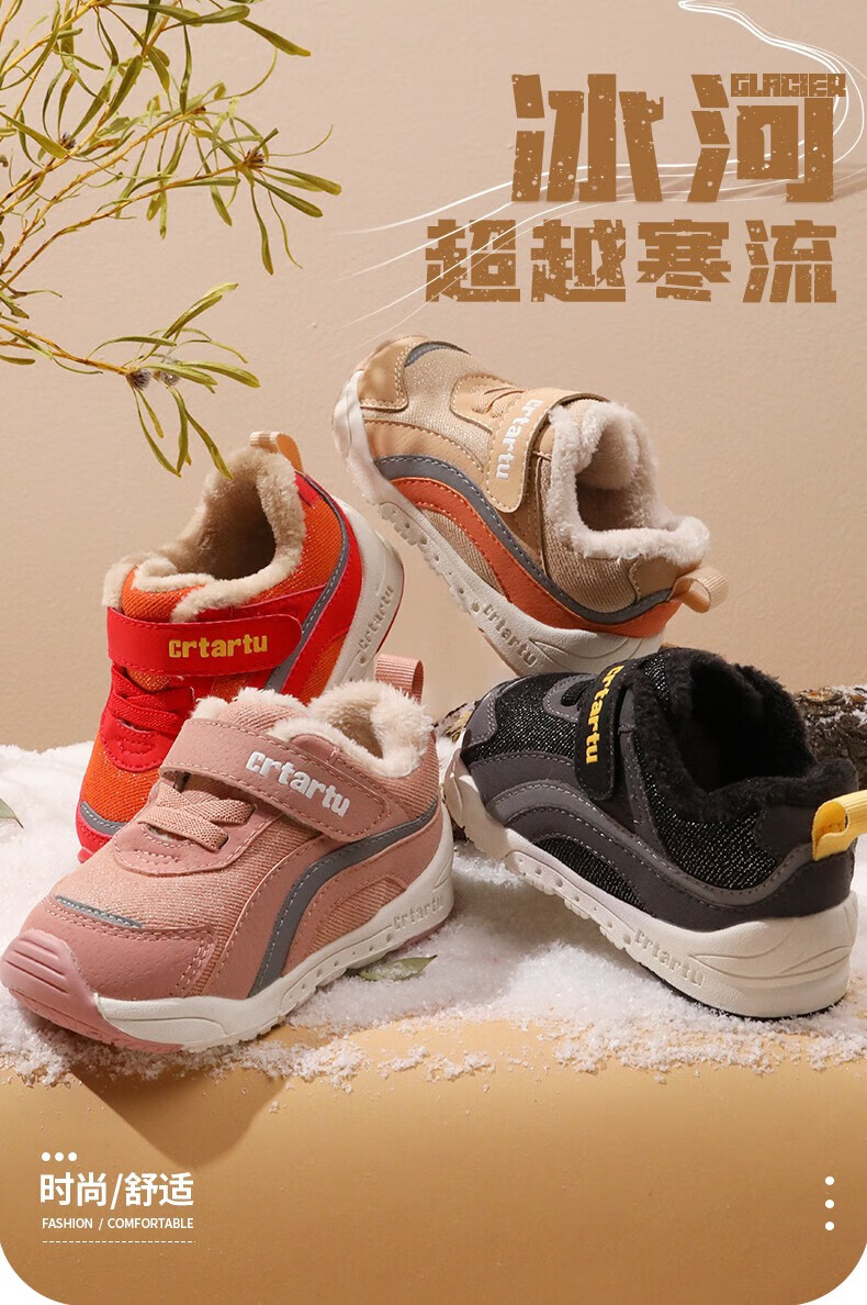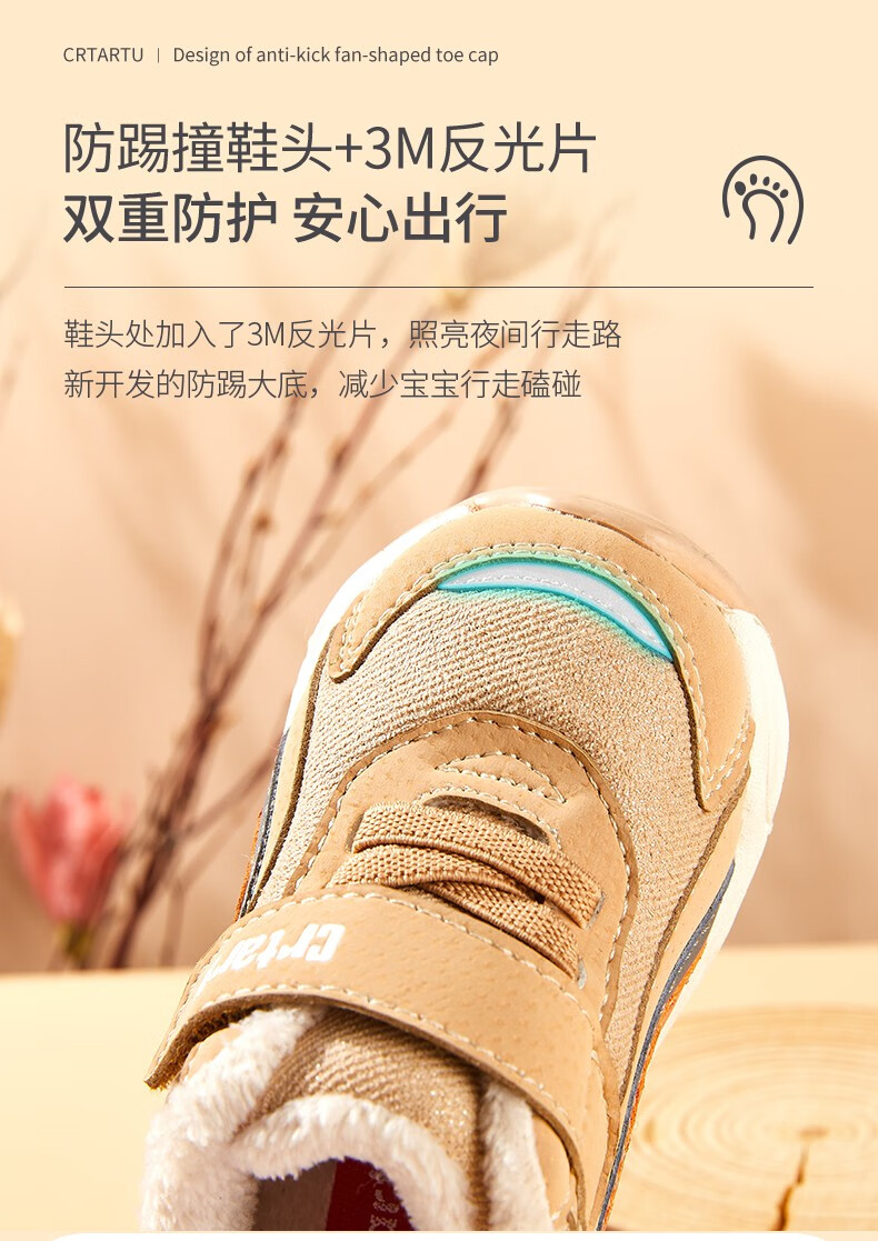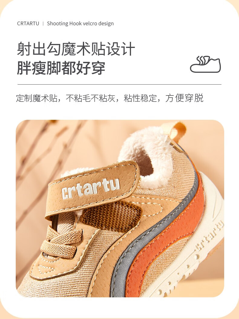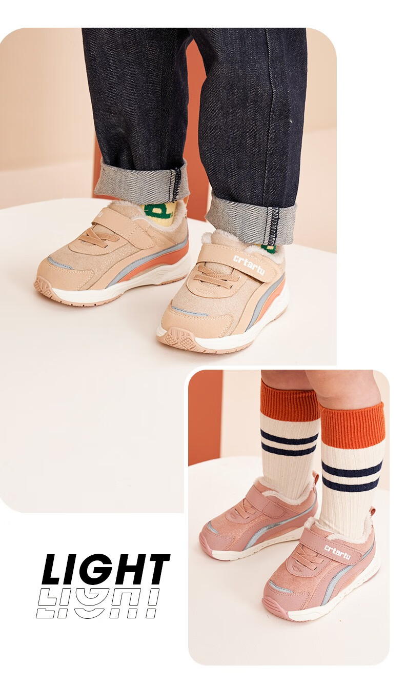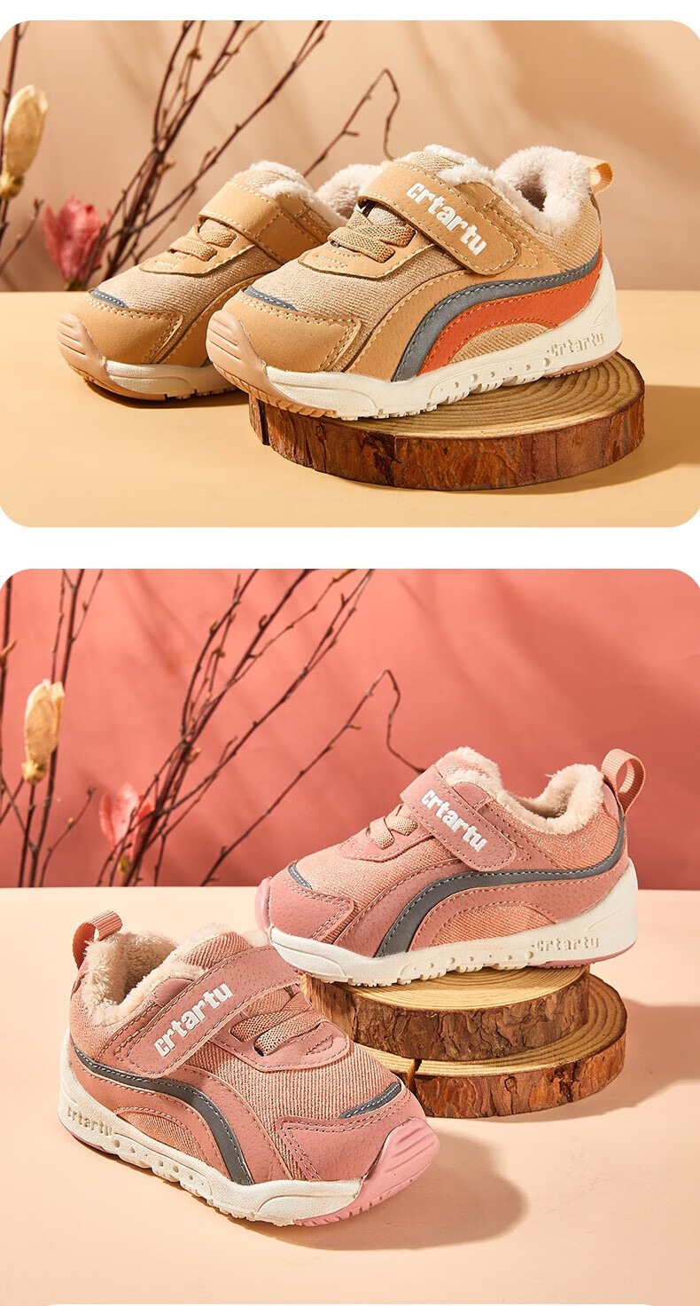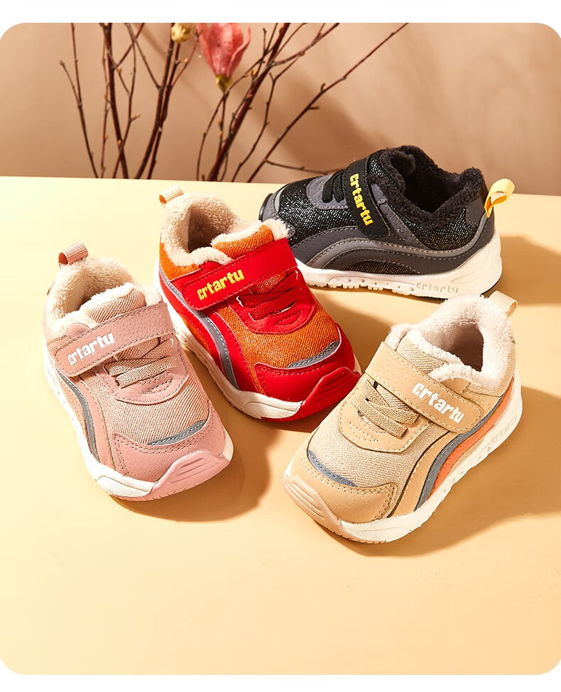 卡特兔童鞋冬季学步鞋女童运动鞋加绒二棉鞋男防滑机能冬鞋宝宝机能鞋子 杏色 24 内长14.5cm 脚长13.6-14.2