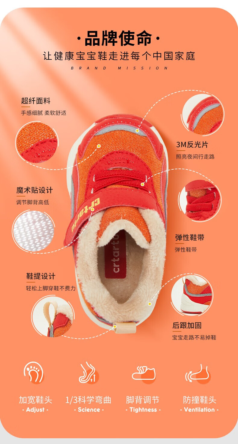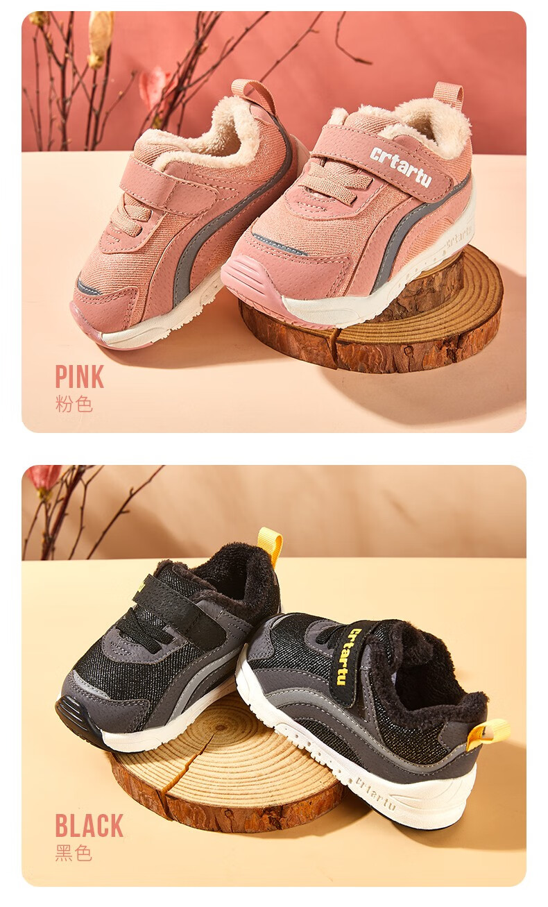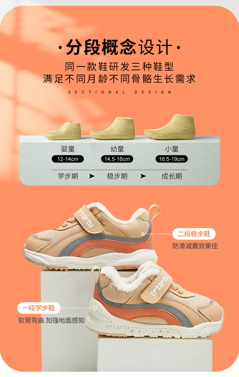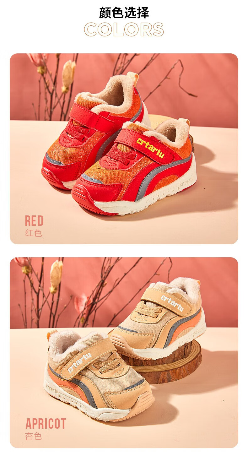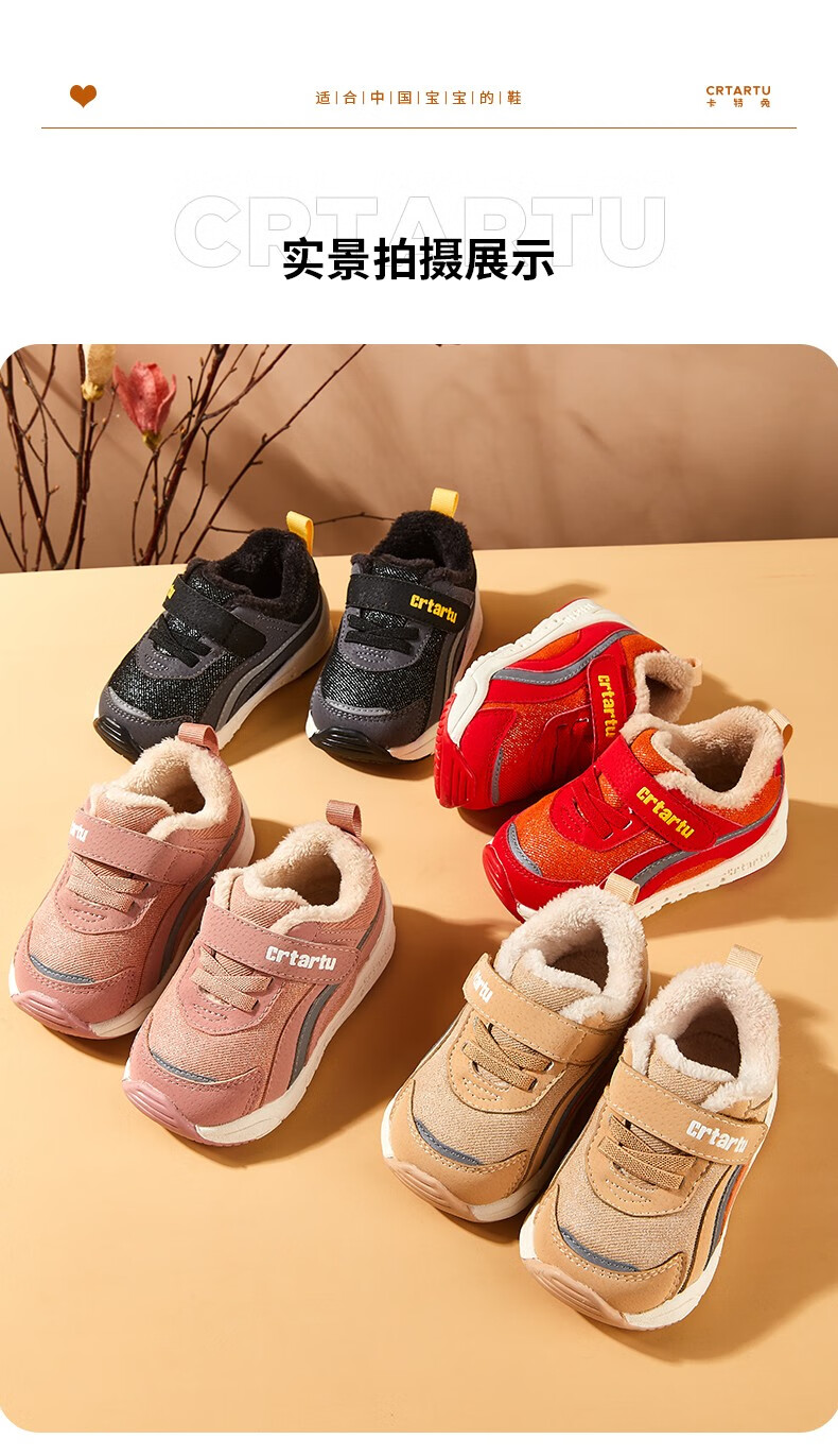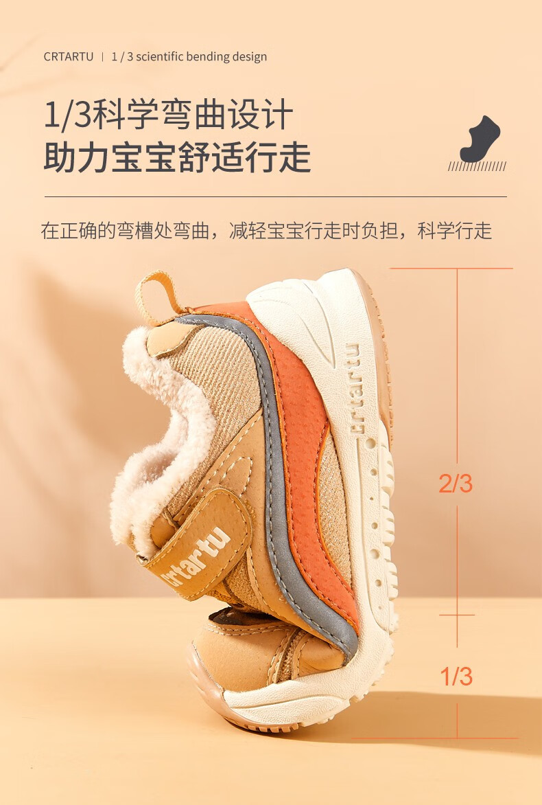 卡特兔童鞋冬季学步鞋女童运动鞋加绒二棉鞋男防滑机能冬鞋宝宝机能鞋子 杏色 24 内长14.5cm 脚长13.6-14.2