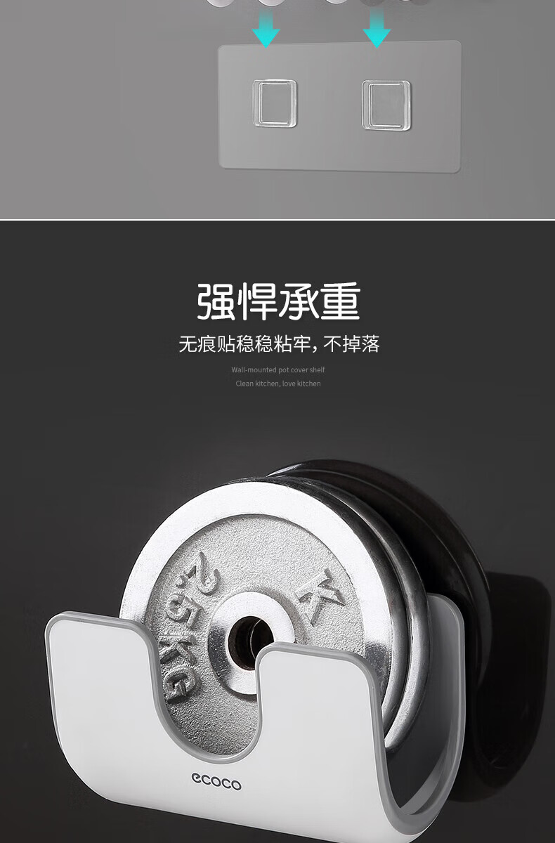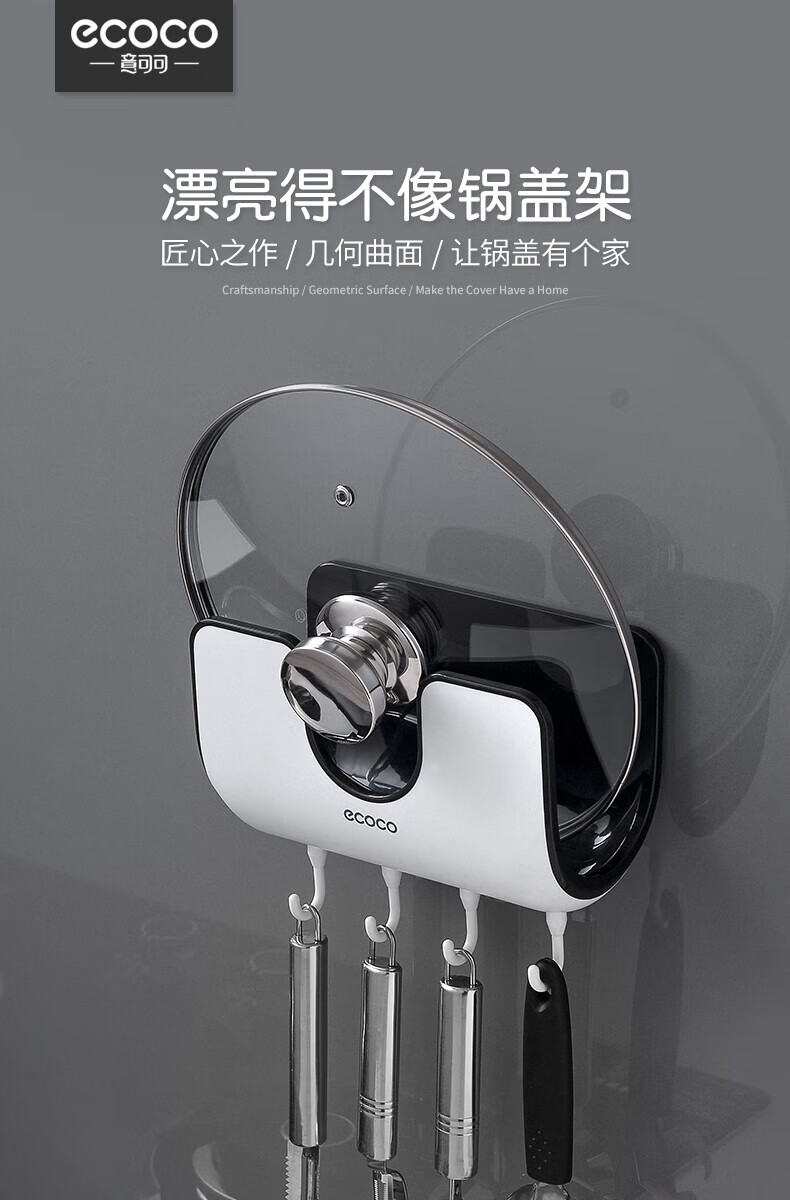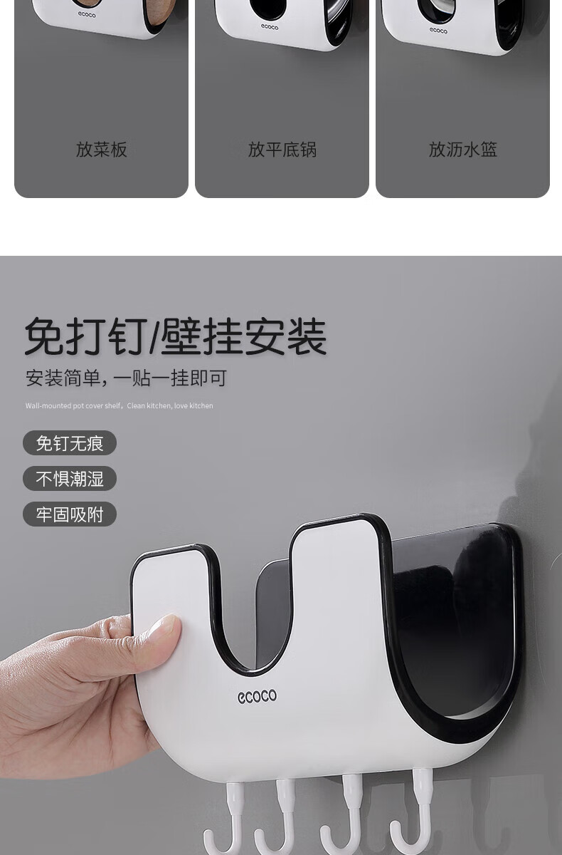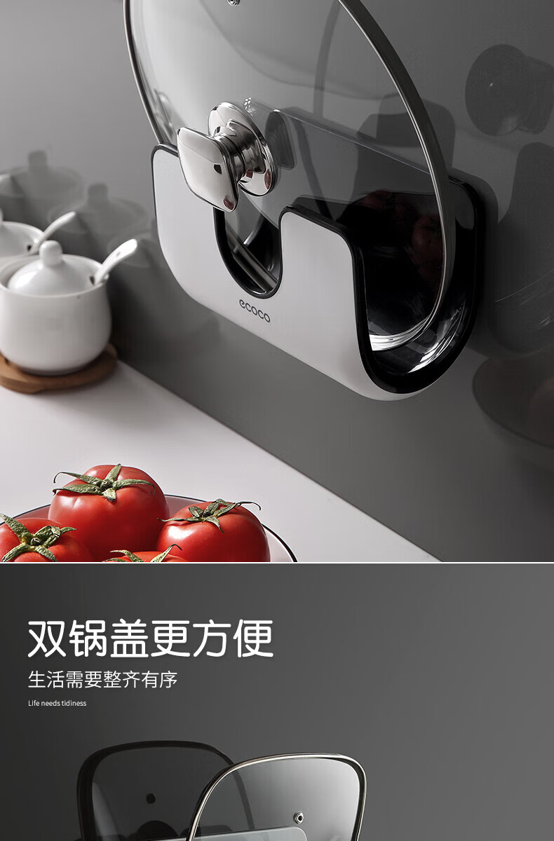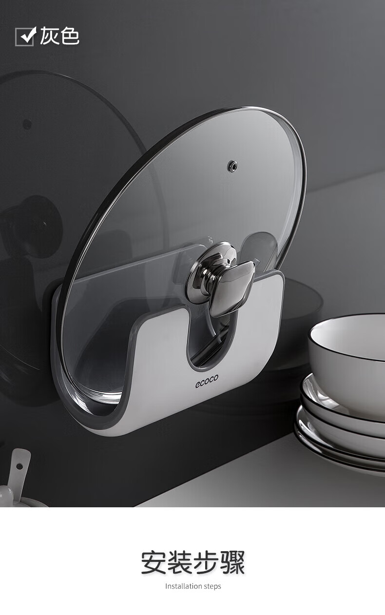 ecoco家用锅盖架壁挂免打孔菜板砧板架放锅盖的架子坐式厨房收纳置物架 灰白色-锅盖菜板通用含4个挂钩